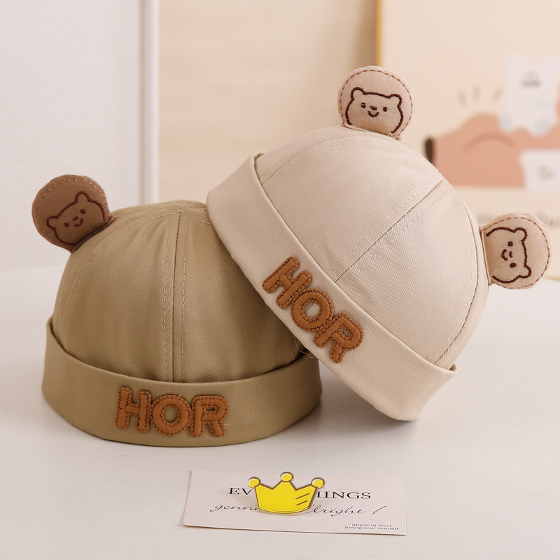 Bonito sombrero de bebé oso primavera y otoño delgado sombrero de piel de melón protector solar para hombres y mujeres, niños y niñas, mes pequeño, sombrero principal