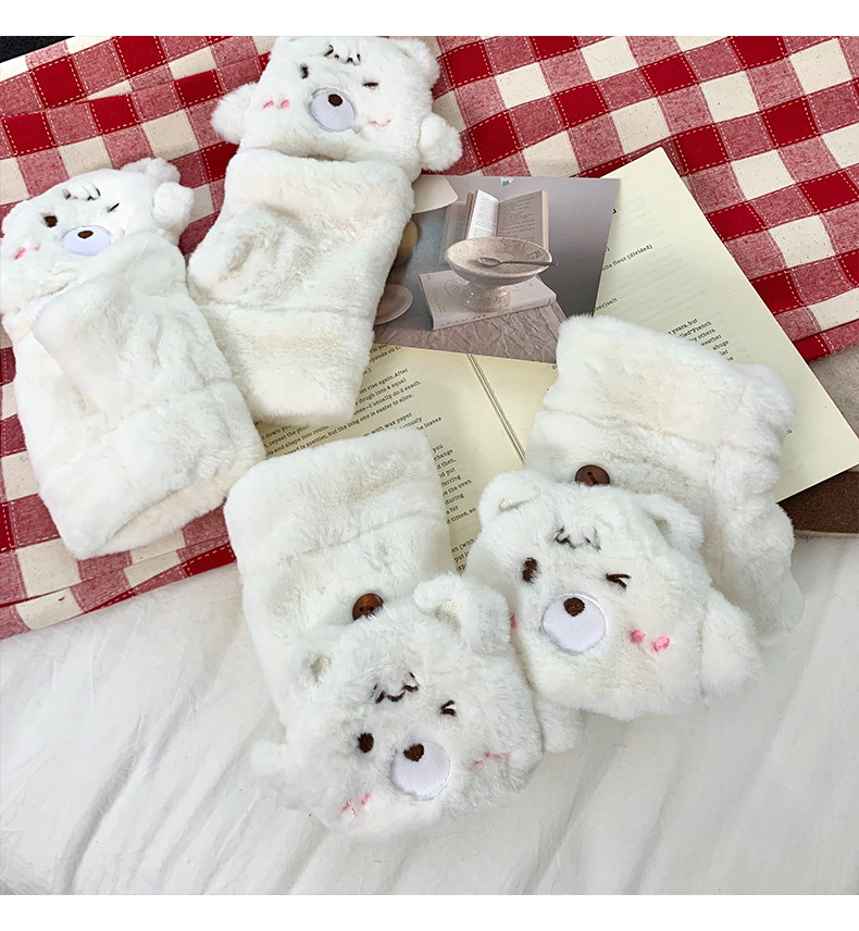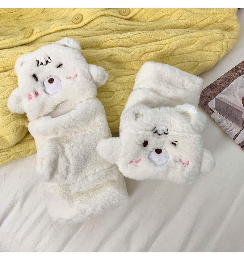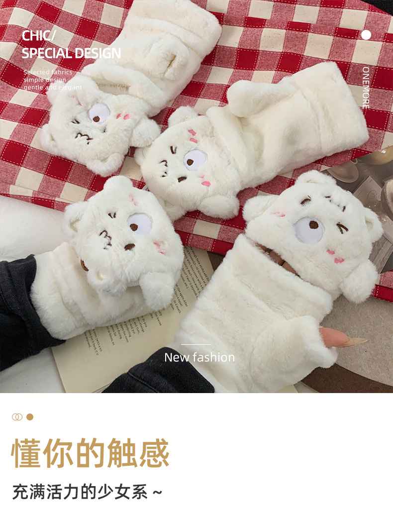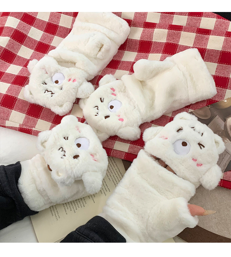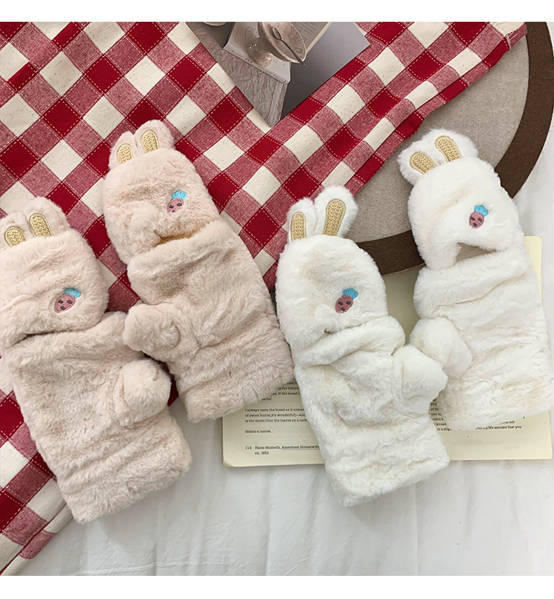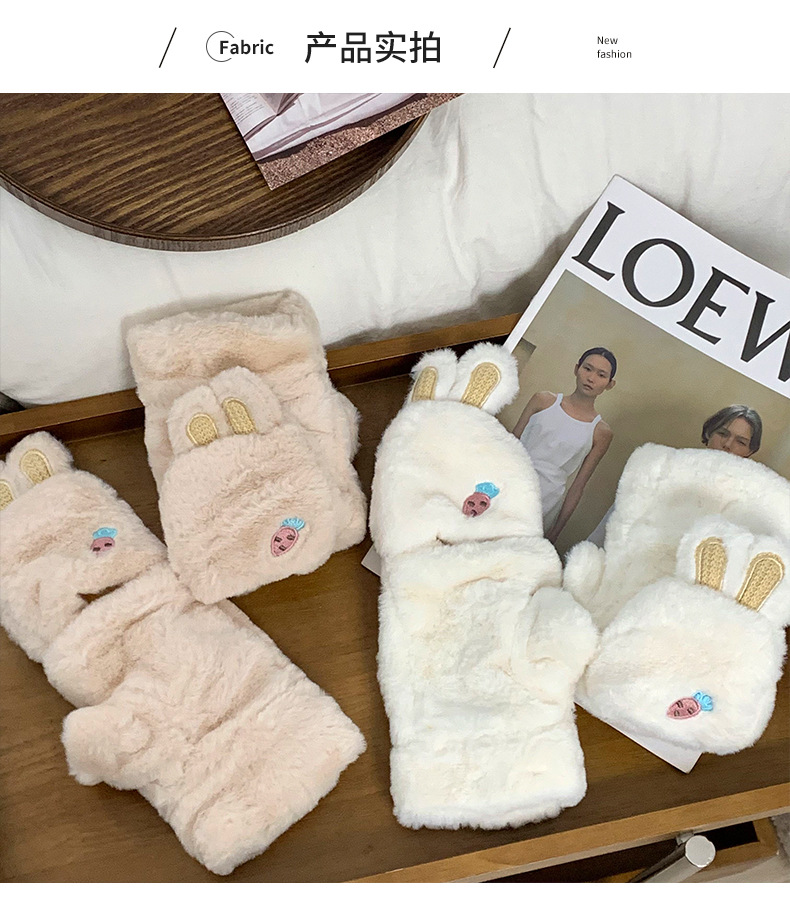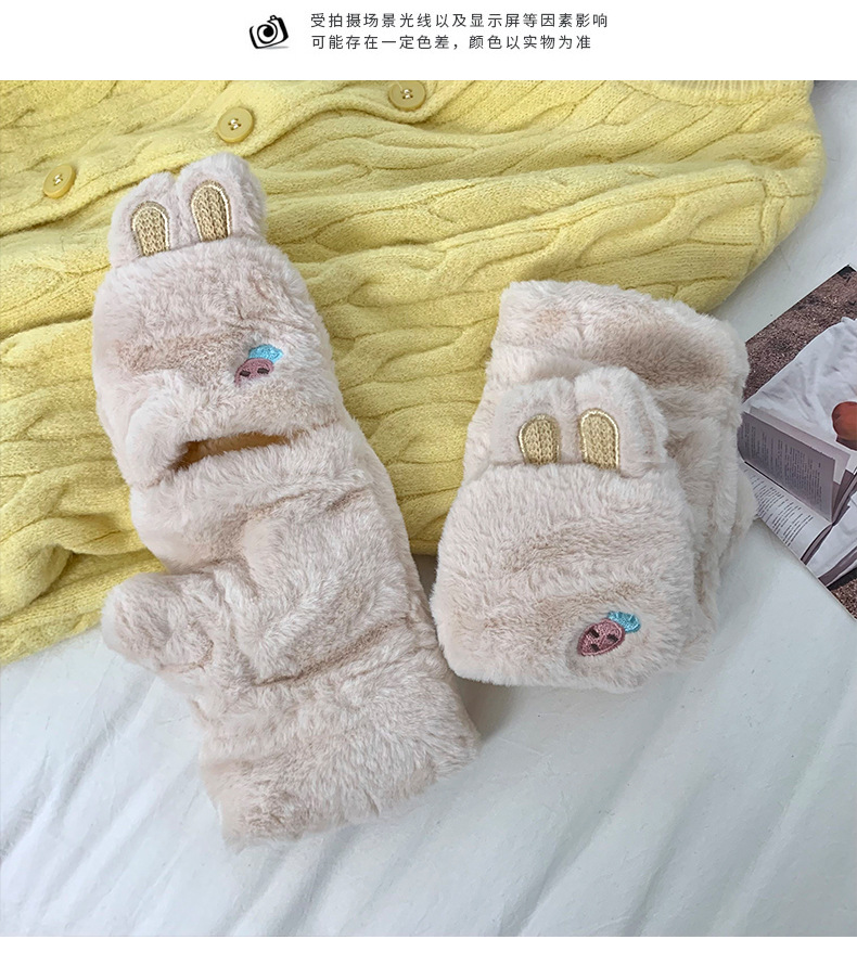 Guantes de peluche para mujeres otoño y invierno nuevo engrosado peludo flap cartón espinado guantes de dedo de caballo de caballo de caballo de orejas de conejo