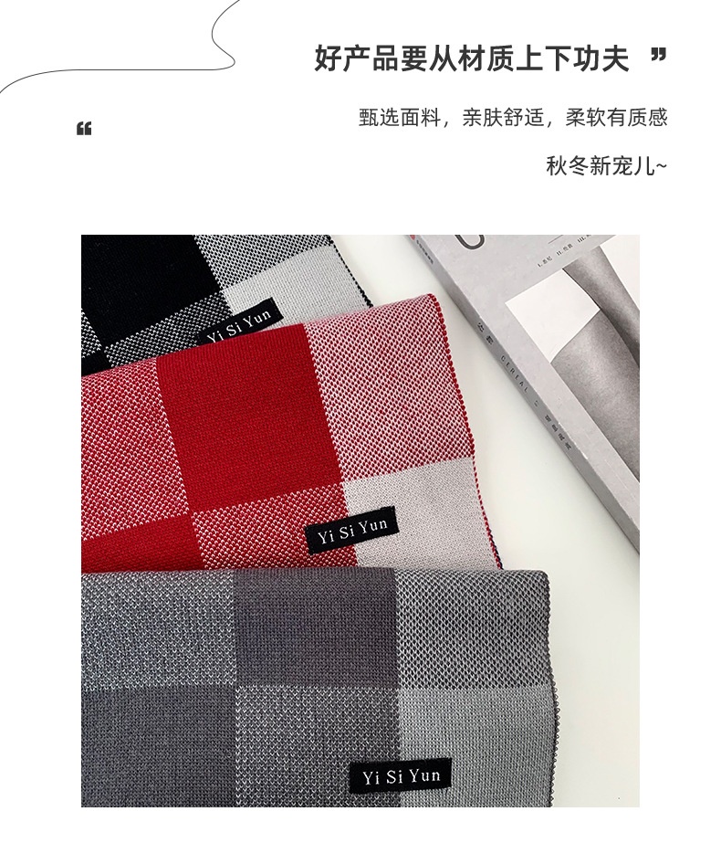 Buñuelo a cuadros para hombres otoño y invierno nuevo estilo coreano de alto nivel sensación chal de punto universal engrosado imitación de cachemira calentamiento buñuelo