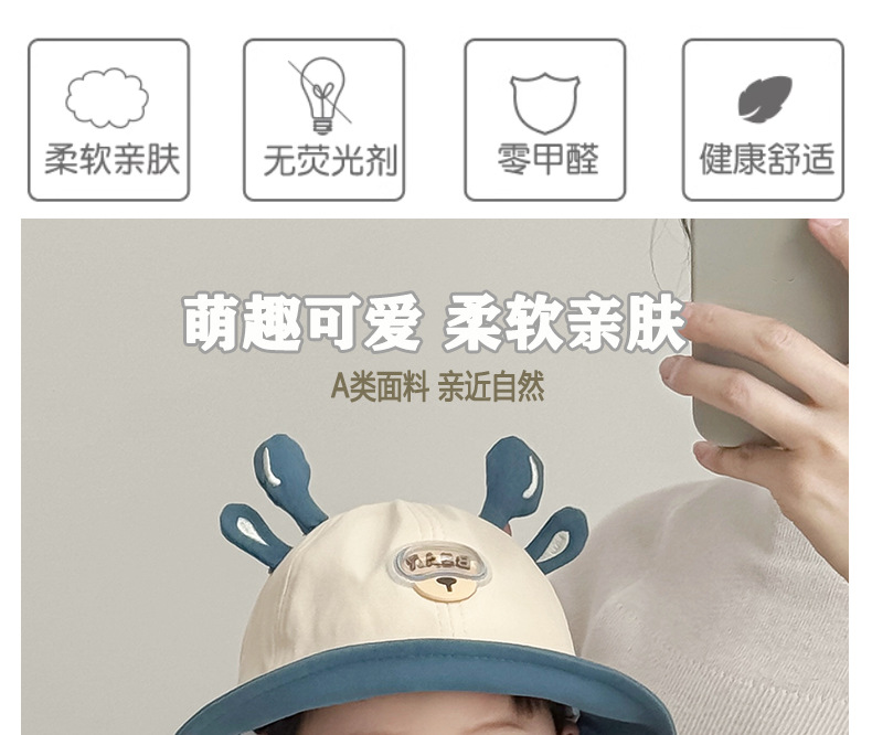 Sombrero para bebés primavera y otoño estilo coreano super lindo corno de ciervo niño sombrero primavera delgado sombrero de pescador para niños