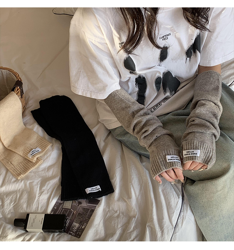 Mujeres guantes de medio dedo de otoño y invierno lindo estilo coreano medio dedos de escritura guantes calientes mangas de lana de punto