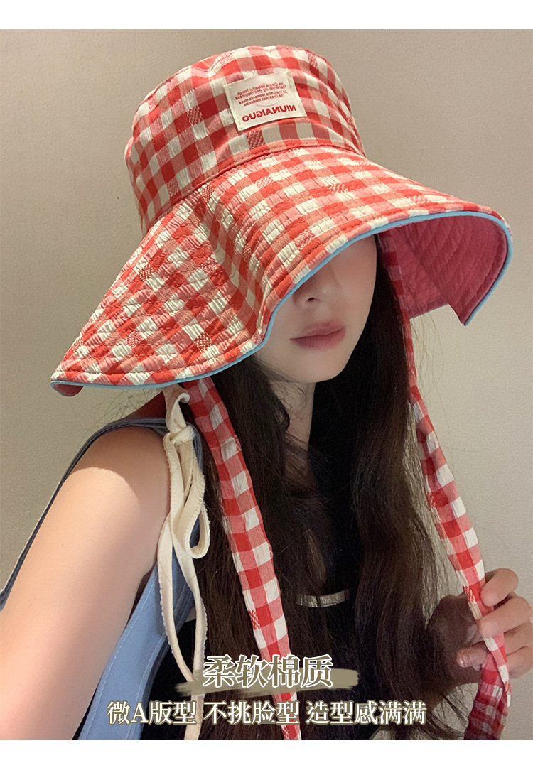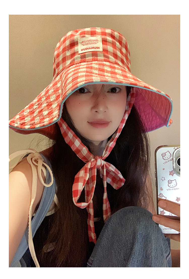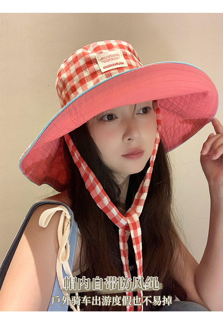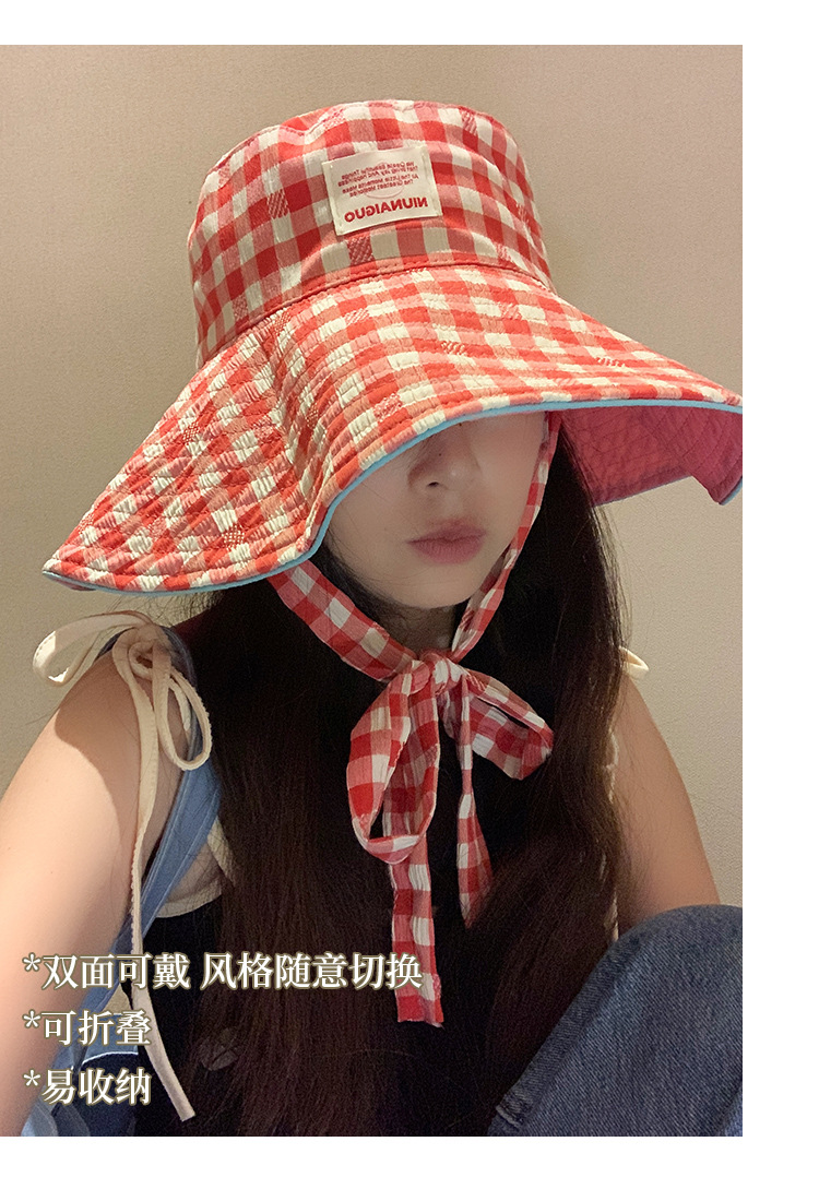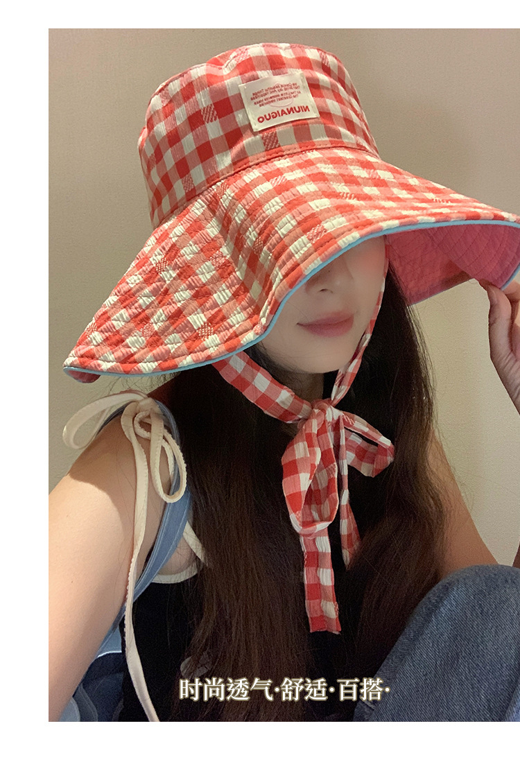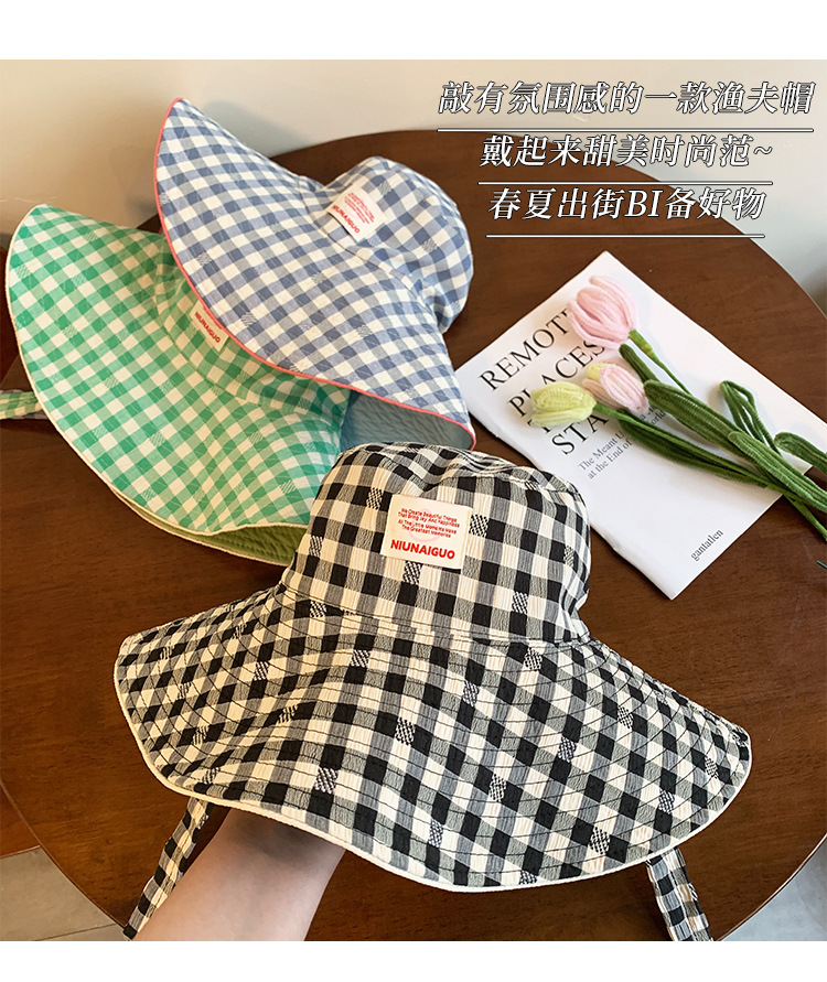 Sombrero de pescador con bordes anchos a cuadrillas coreanas, sombrero de verano, sombrero de bisel grande, sombrero de sombrero solar pequeño, sombrero de copa