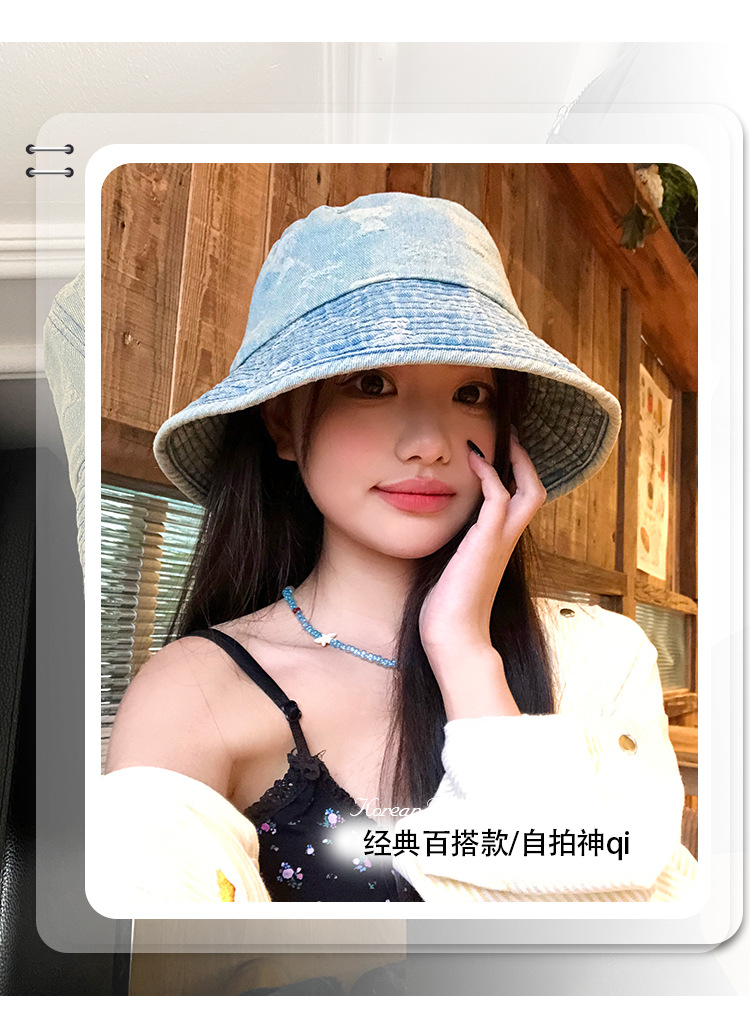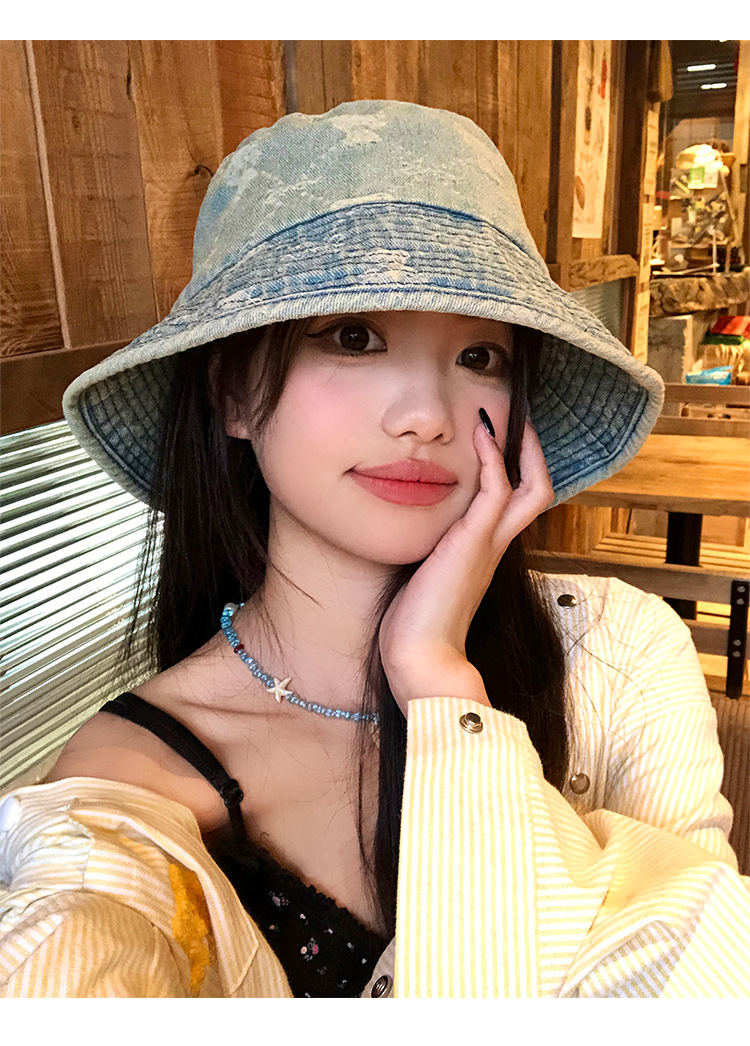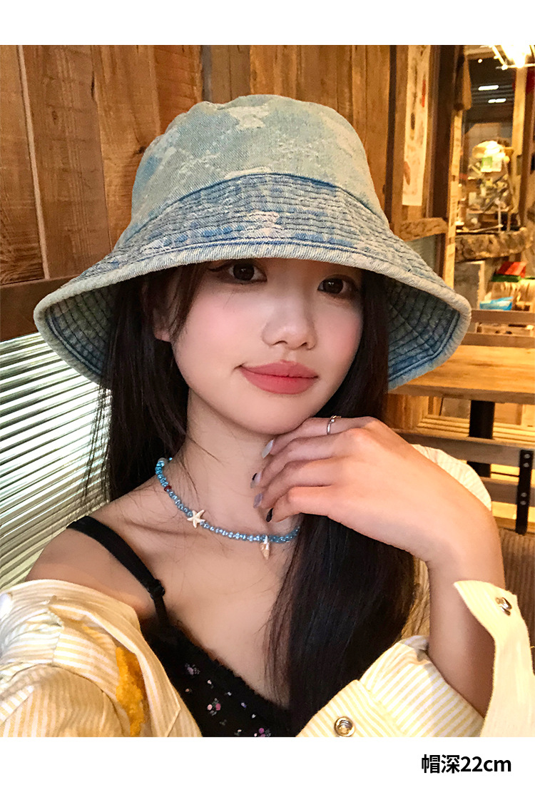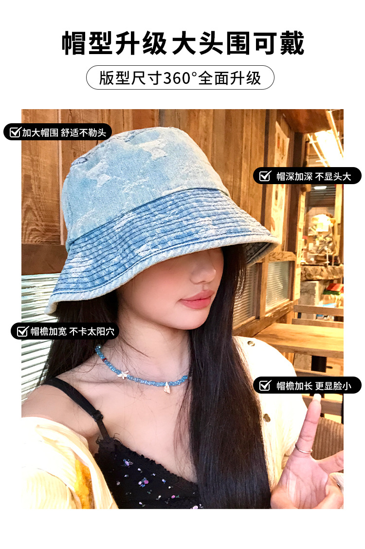 Retro vaquero lavado sombrero pescador primavera y verano mujer cabeza grande versátil mostrando la cara pequeña sombrero de cuenca japonés sombrero de cubo de agua