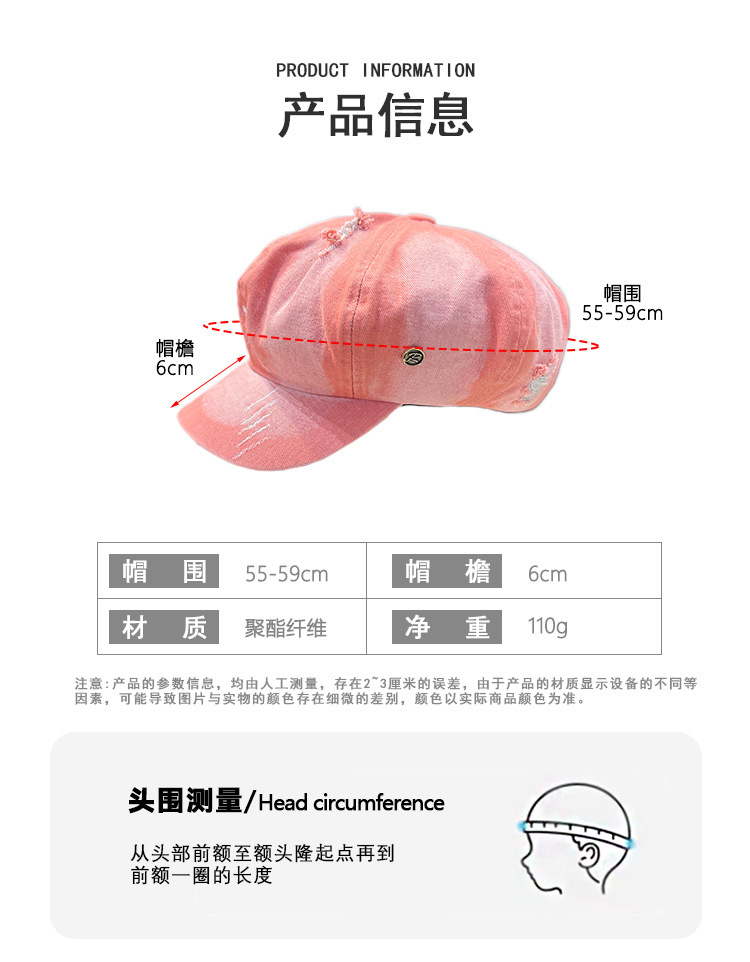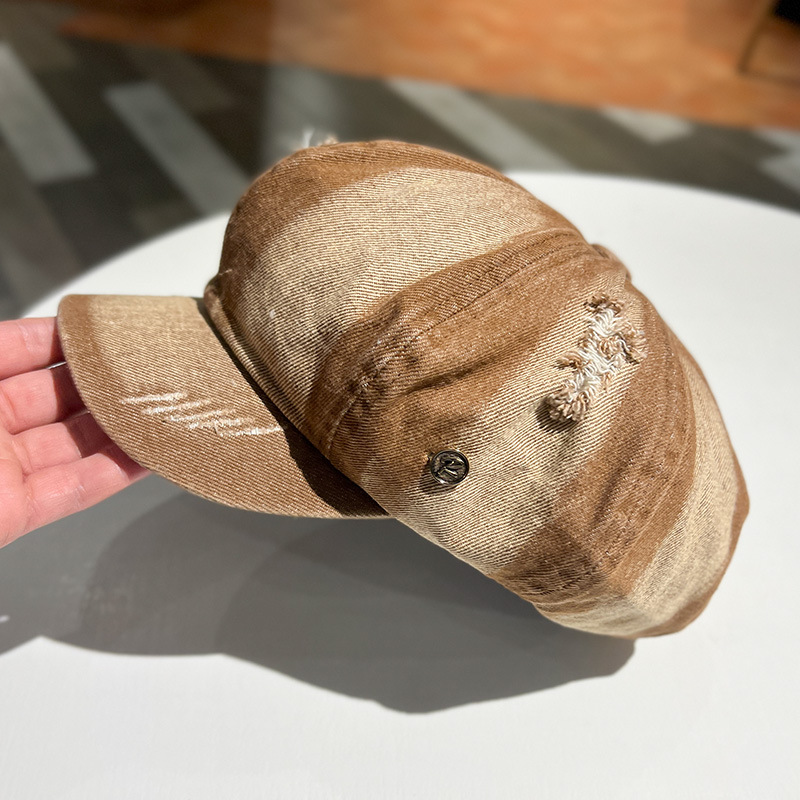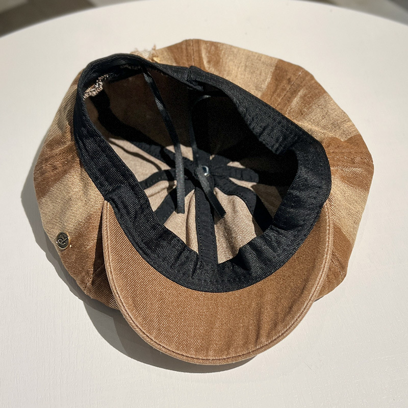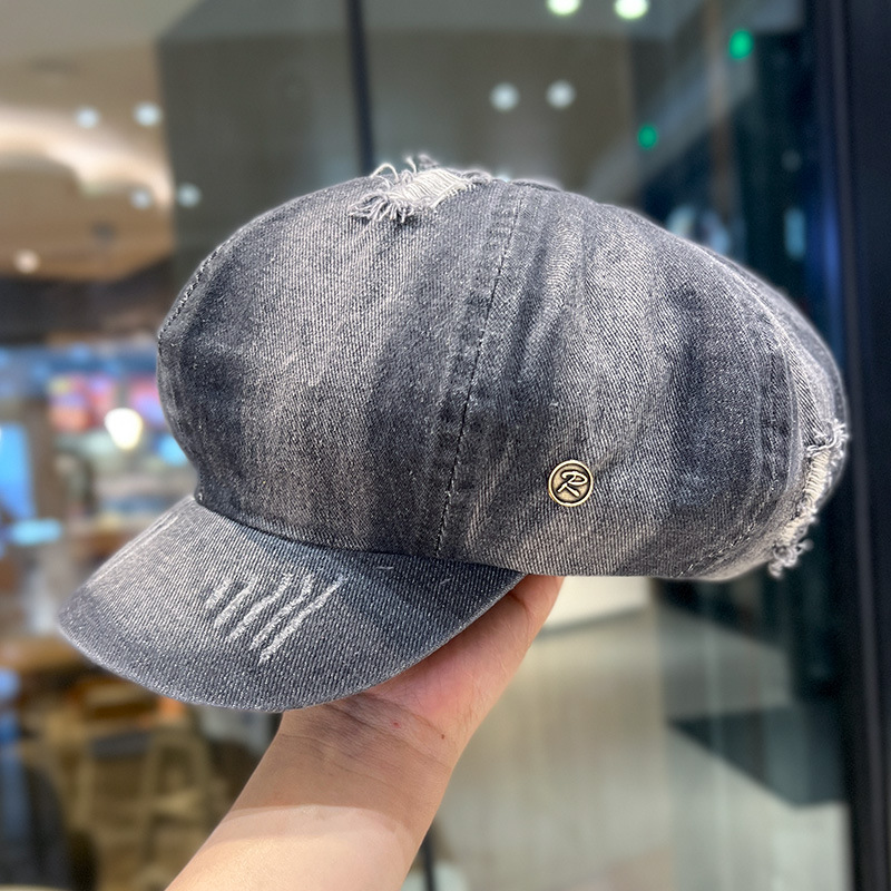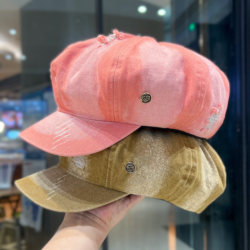 Retro lavado con agua vaquero sombrero de ocho ángulos para mujeres, boina de nube, agujero de moda, sombrero de lengua de pato