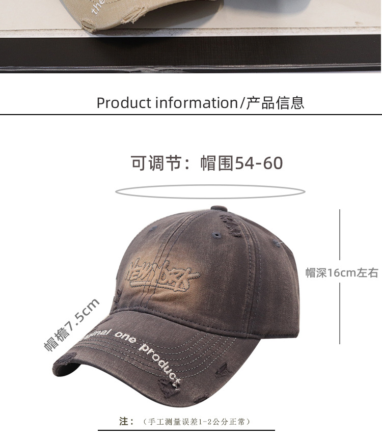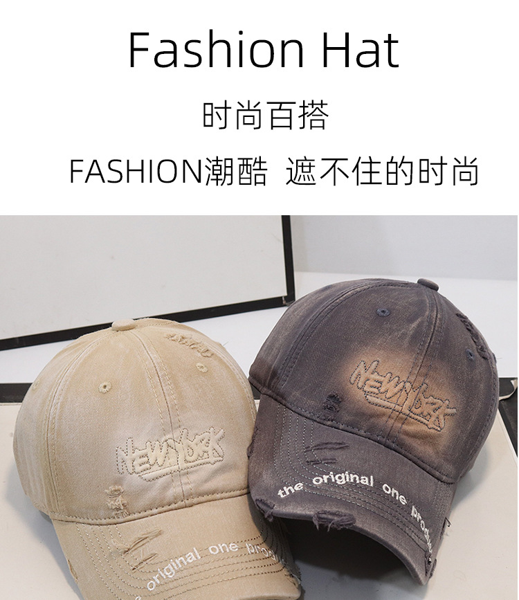 Nuevo agujero viejo bordado letras vaqueros sombrero de béisbol superior suave para hombres y mujeres primavera y verano casual gorra de la lengua sombrero
