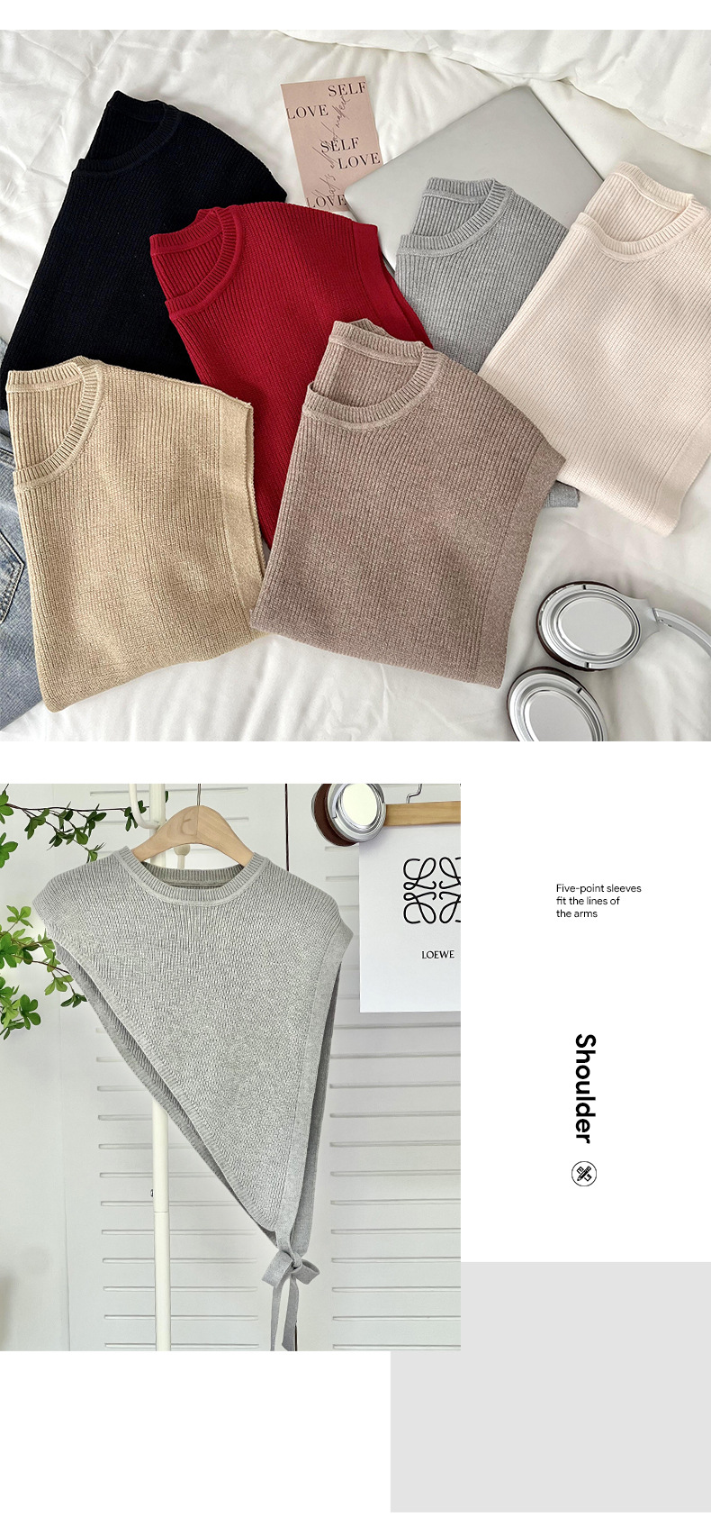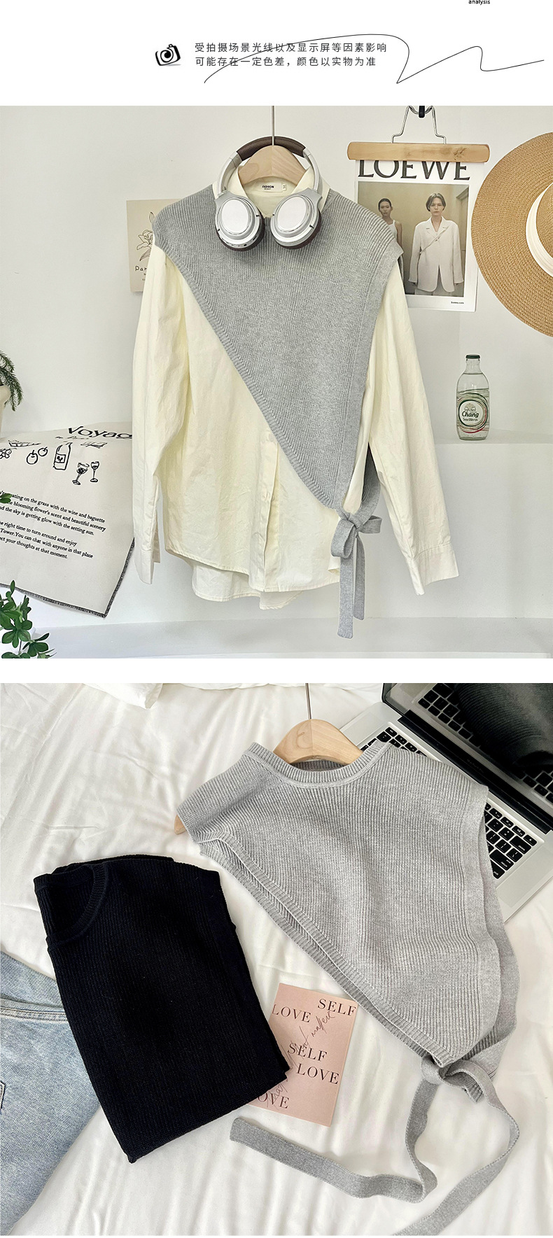Chaleco de tejido con chaleco triángulo biselado estilo de color superpuesto se puede personalizar abrigo corto de invierno de alta calidad clips de caballo