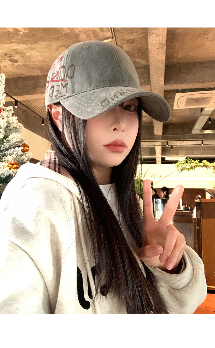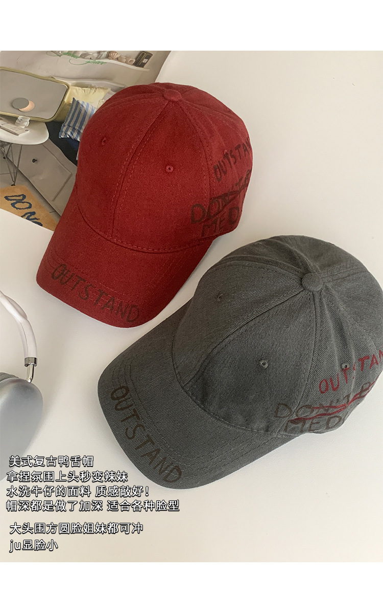 Retro americano lavado con agua para hacer viejas letras sombrero de béisbol para mujeres 2025 sombrero de boca de pato de nicho de calle