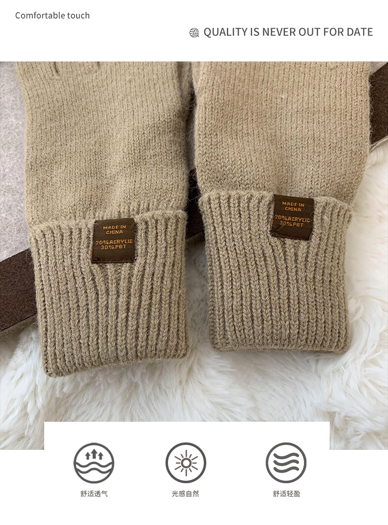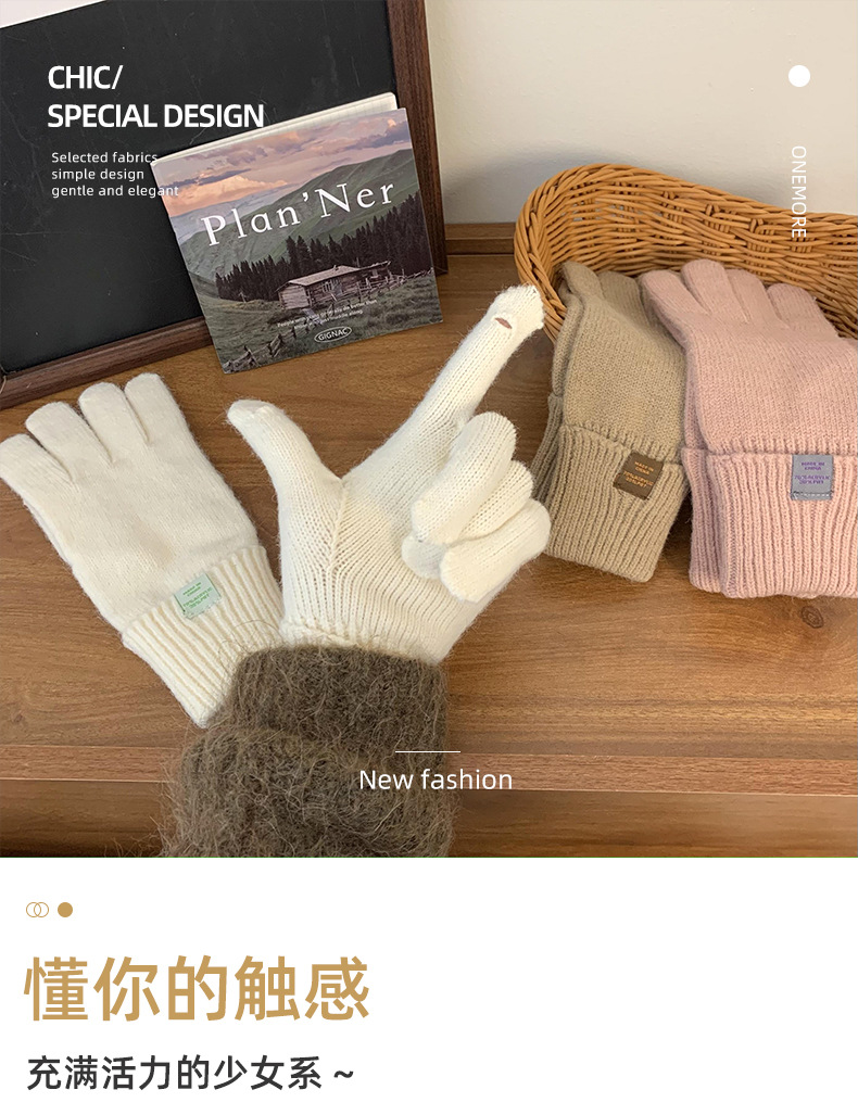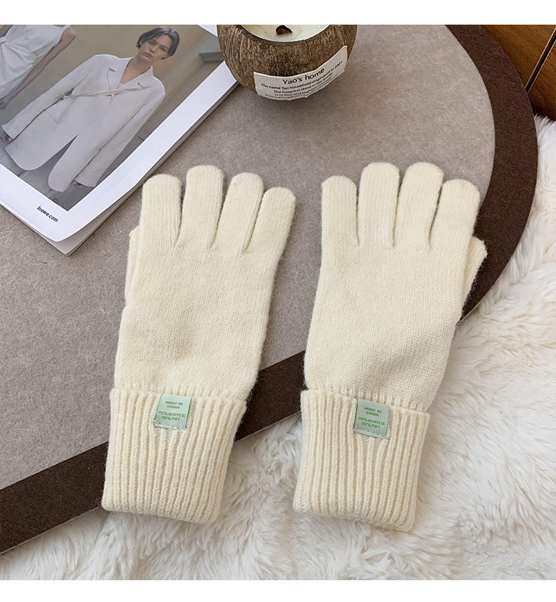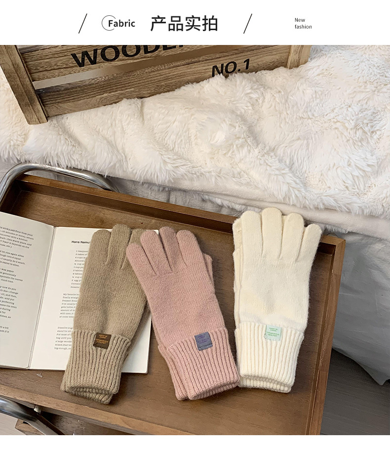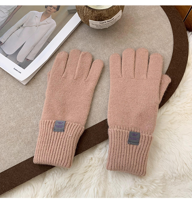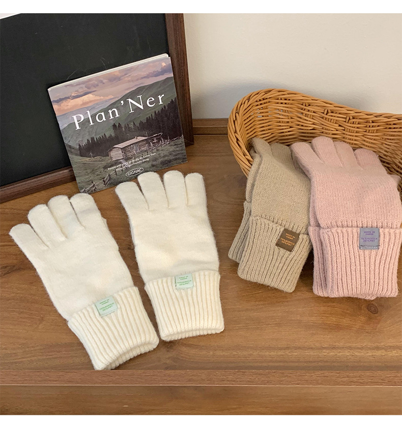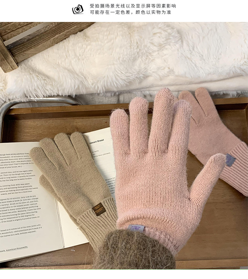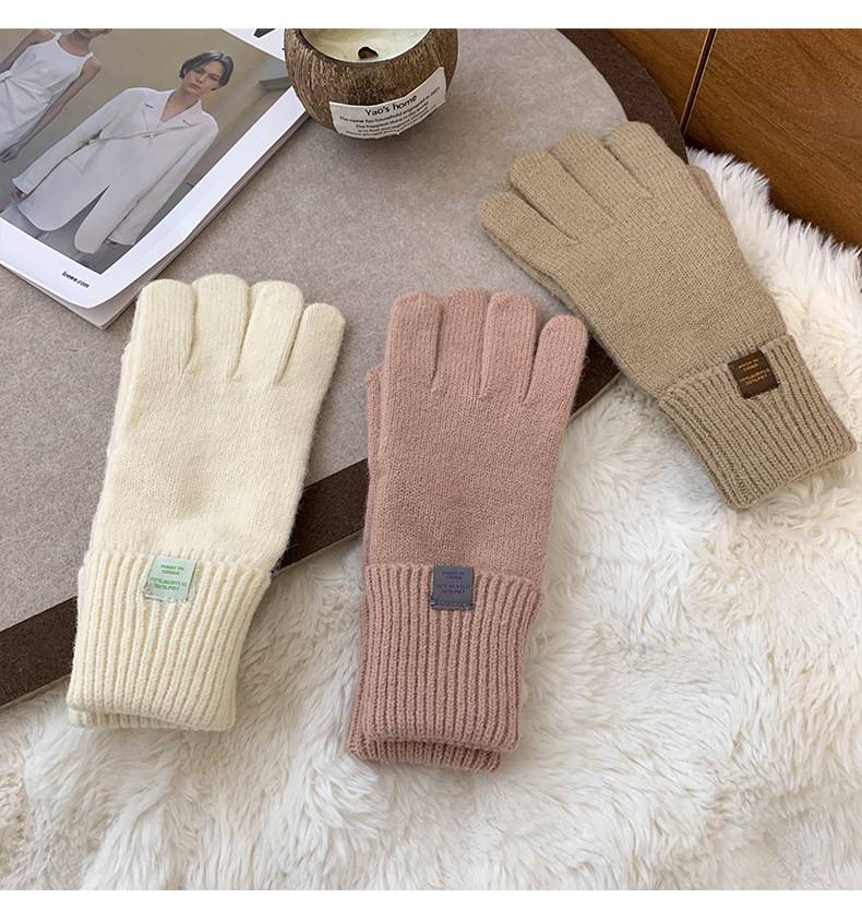 Nuevos guantes de punto para mujeres de otoño y invierno estilo coreano versátil al aire libre para montar caliente a prueba de frío guantes de dedo para estudiantes con pantalla táctil