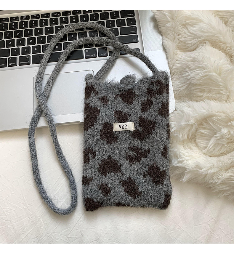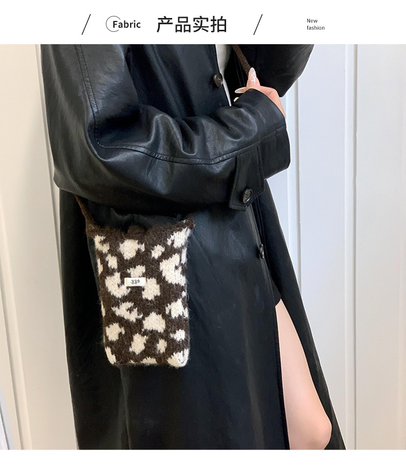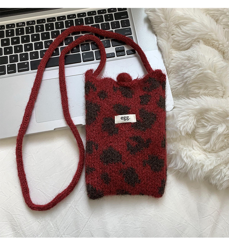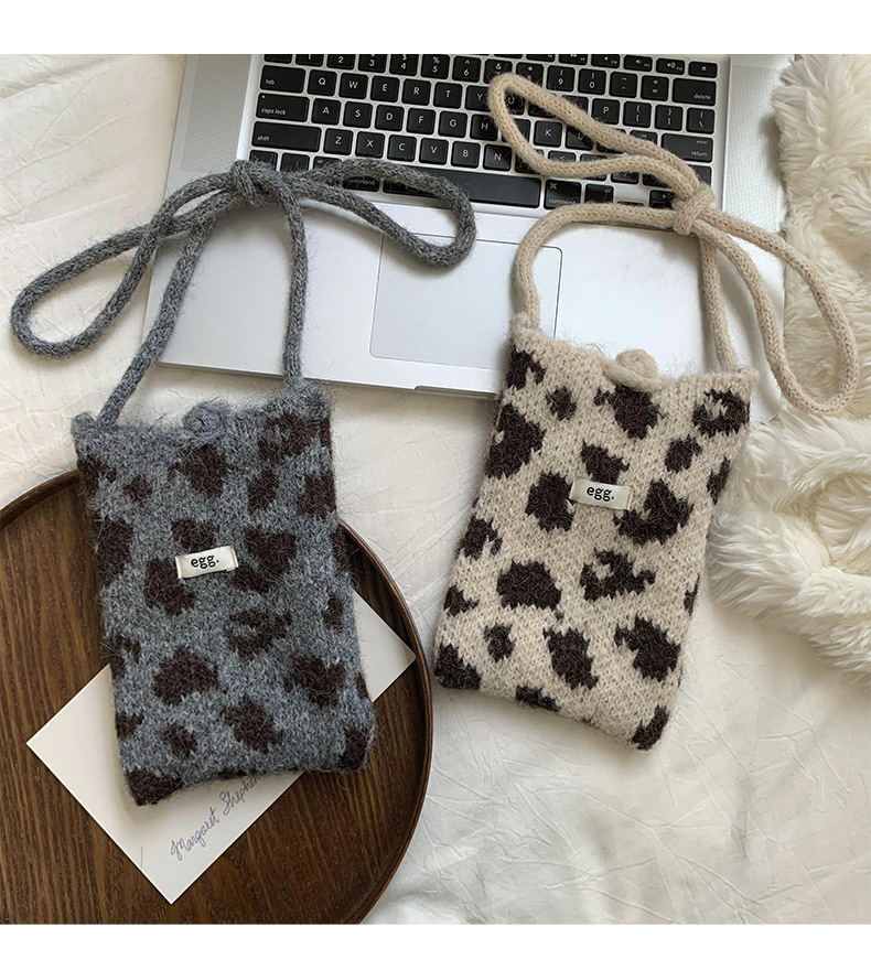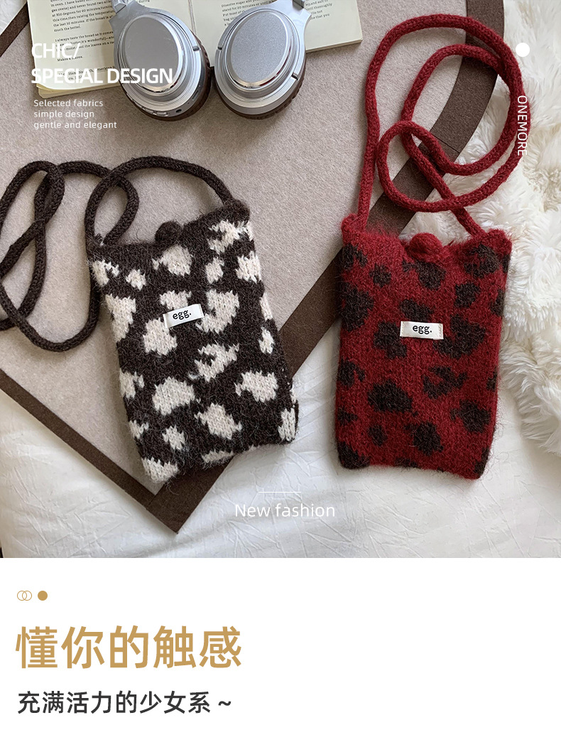 Bolso de teléfono móvil de punto otoño y invierno nuevo estilo versátil coreano Dongdaimen retro estampado de leopardo moda bolso de lana cambio bolso de llaves