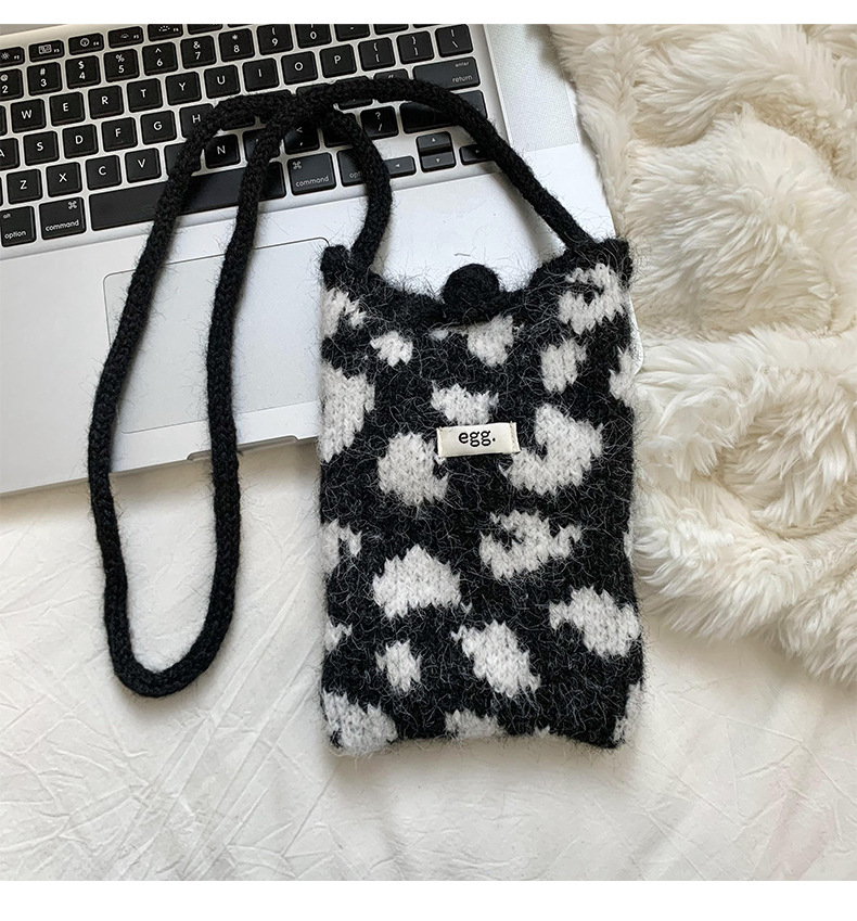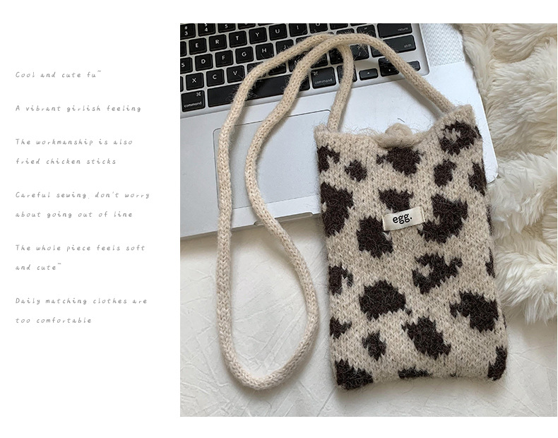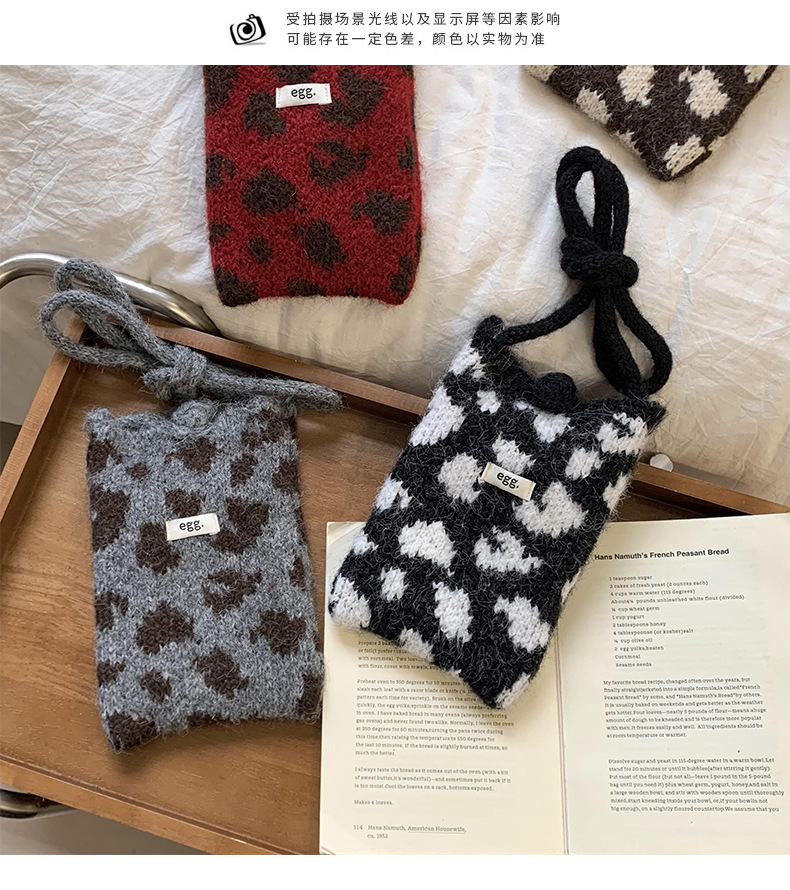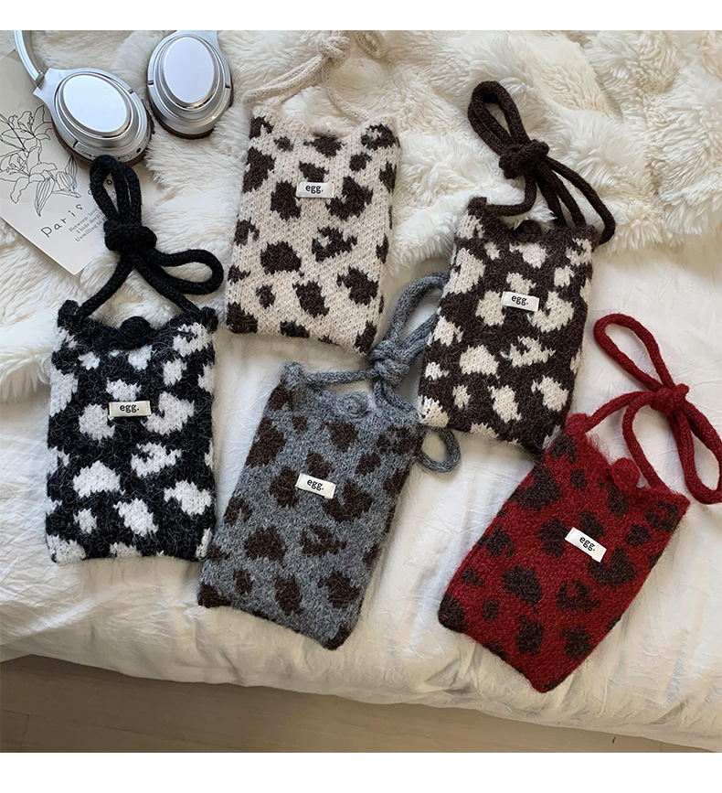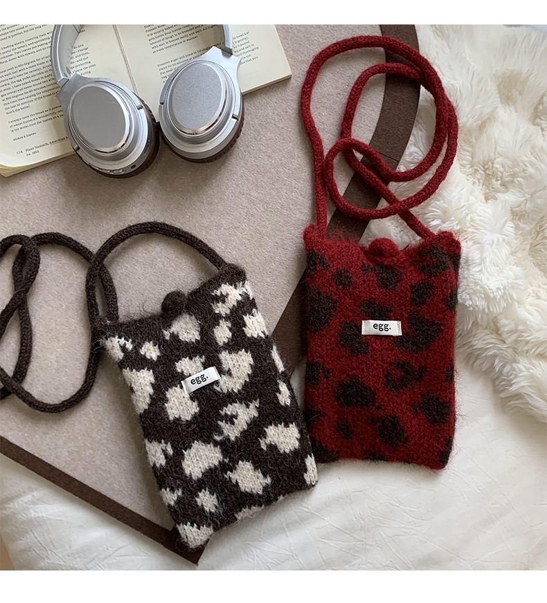 Bolso de teléfono móvil de punto otoño y invierno nuevo estilo versátil coreano Dongdaimen retro estampado de leopardo moda bolso de lana cambio bolso de llaves