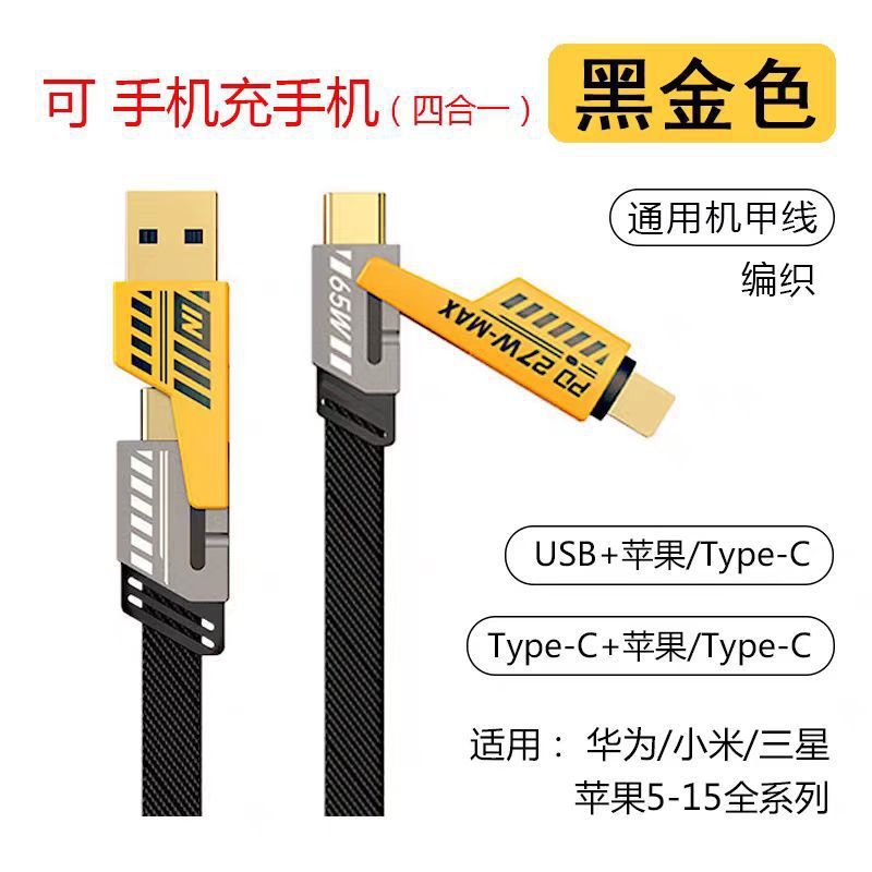 120W extremadamente duro mecha carga rápida para Apple Android Huawei doble puerto USB cargador de cable de datos cuatro en uno