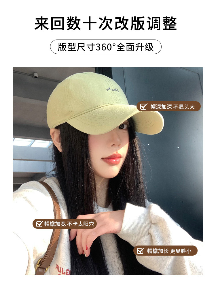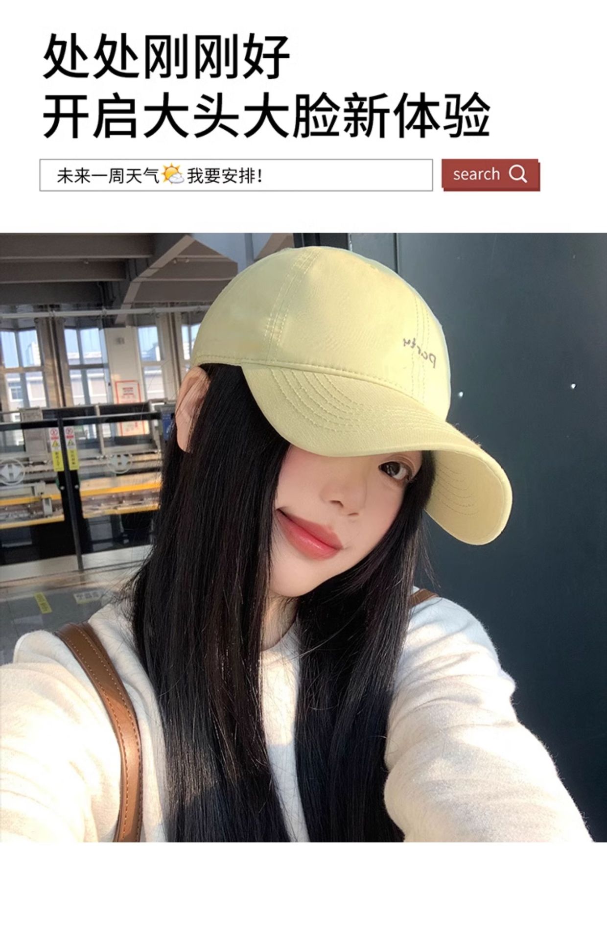 Sombrero de béisbol bordado amarillo para mujeres, sombrero de brillo amplio, sombrero de boca de pato, sombrero coreano, sombrero de cabeza grande