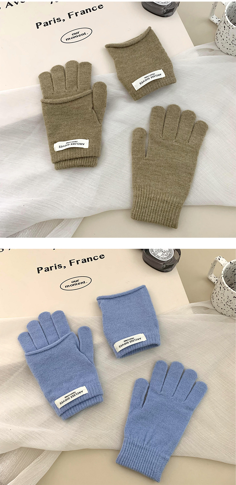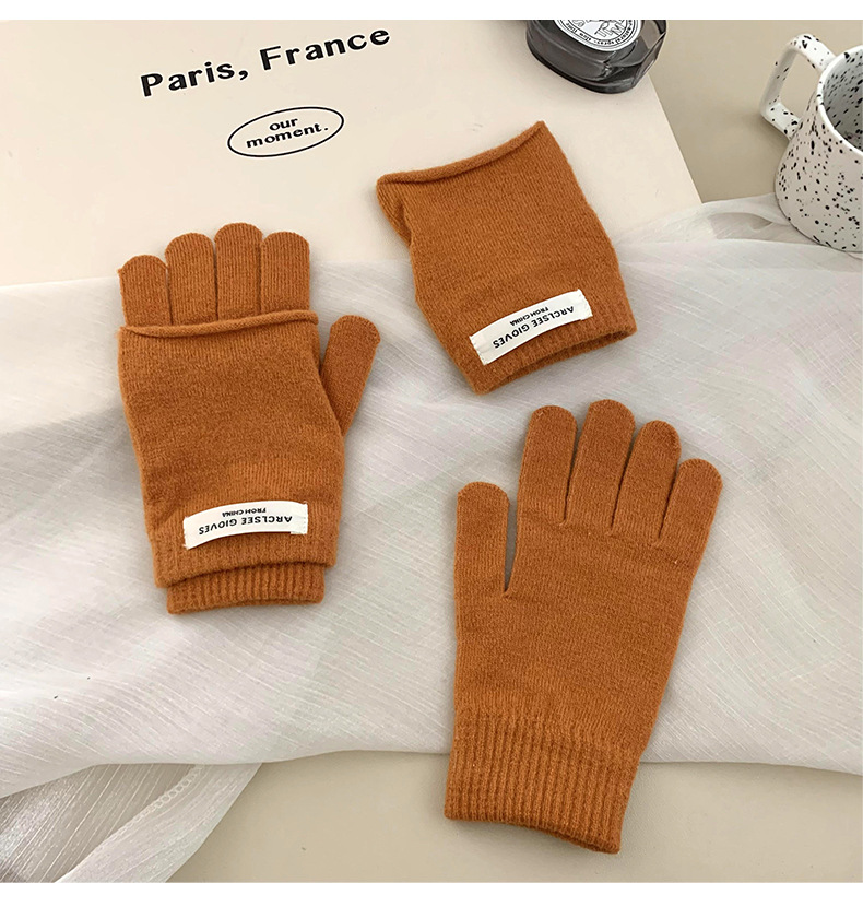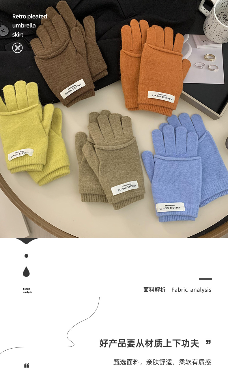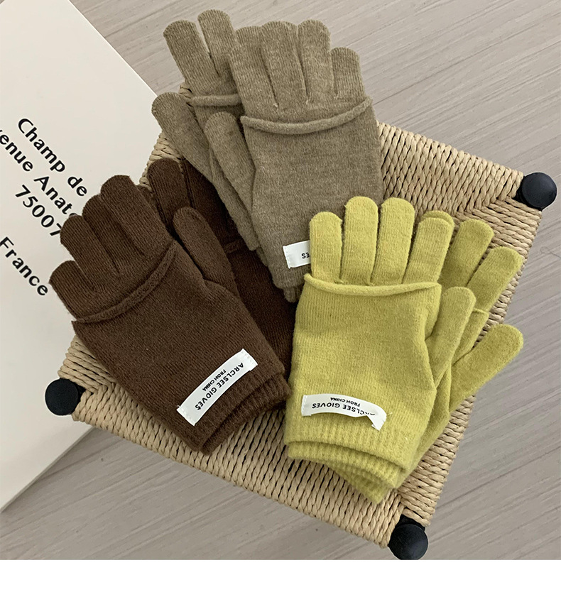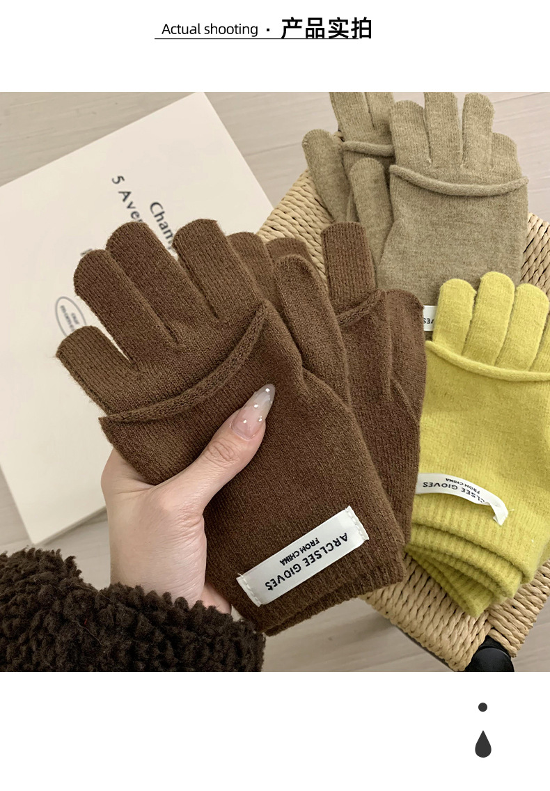Guantes de ciclismo calientes de invierno coreano con pantalla táctil ins guantes de punto de color caramelo dos piezas de guantes de dedo para mujeres