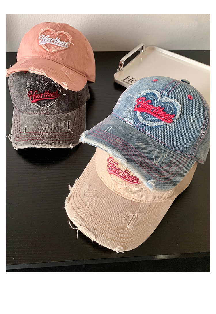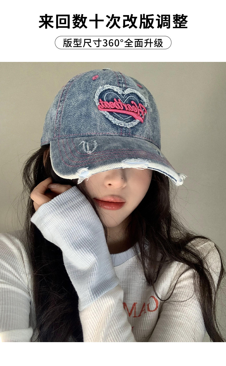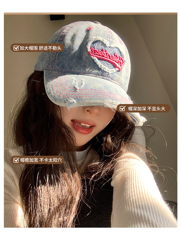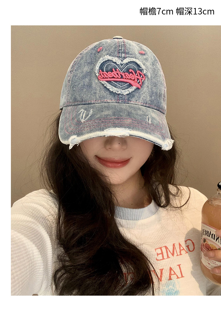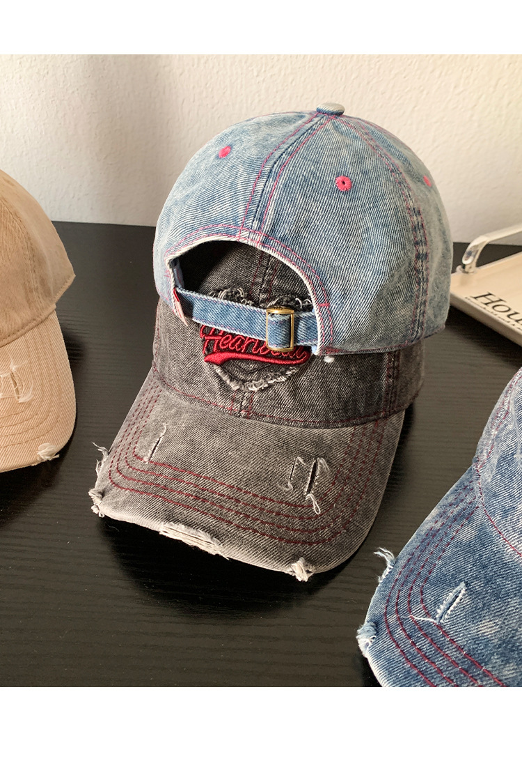 Amor lavado con agua gorra de béisbol de vaqueros mujer retro agujero viejo gorro ancho gorro gorra gor