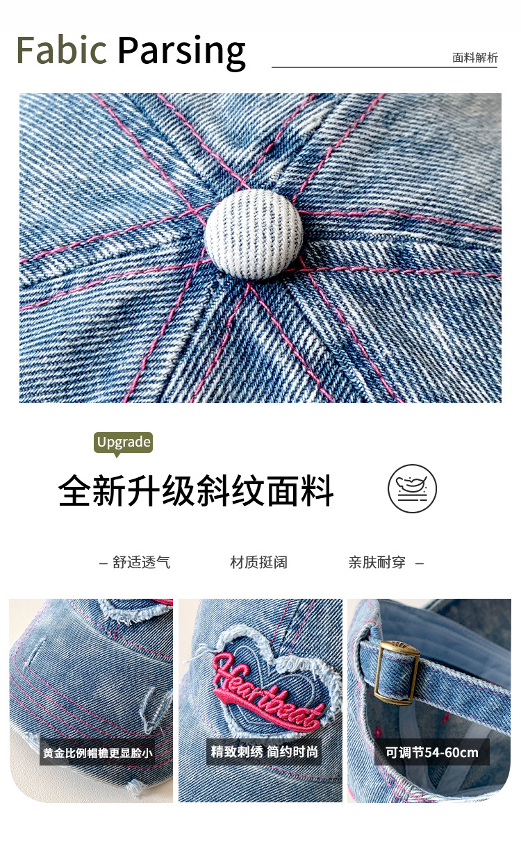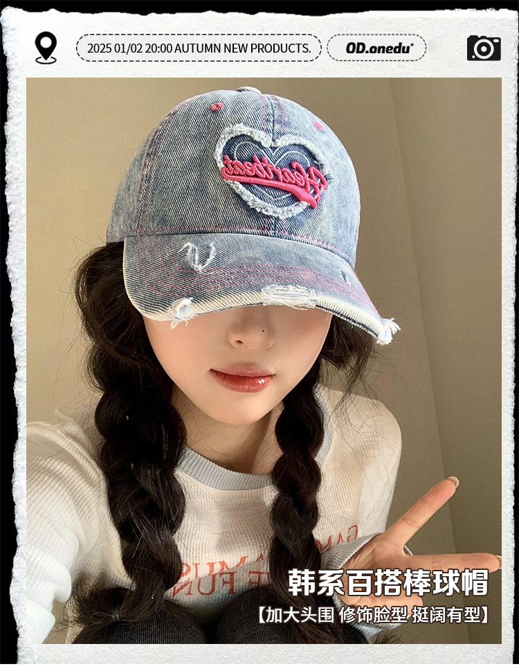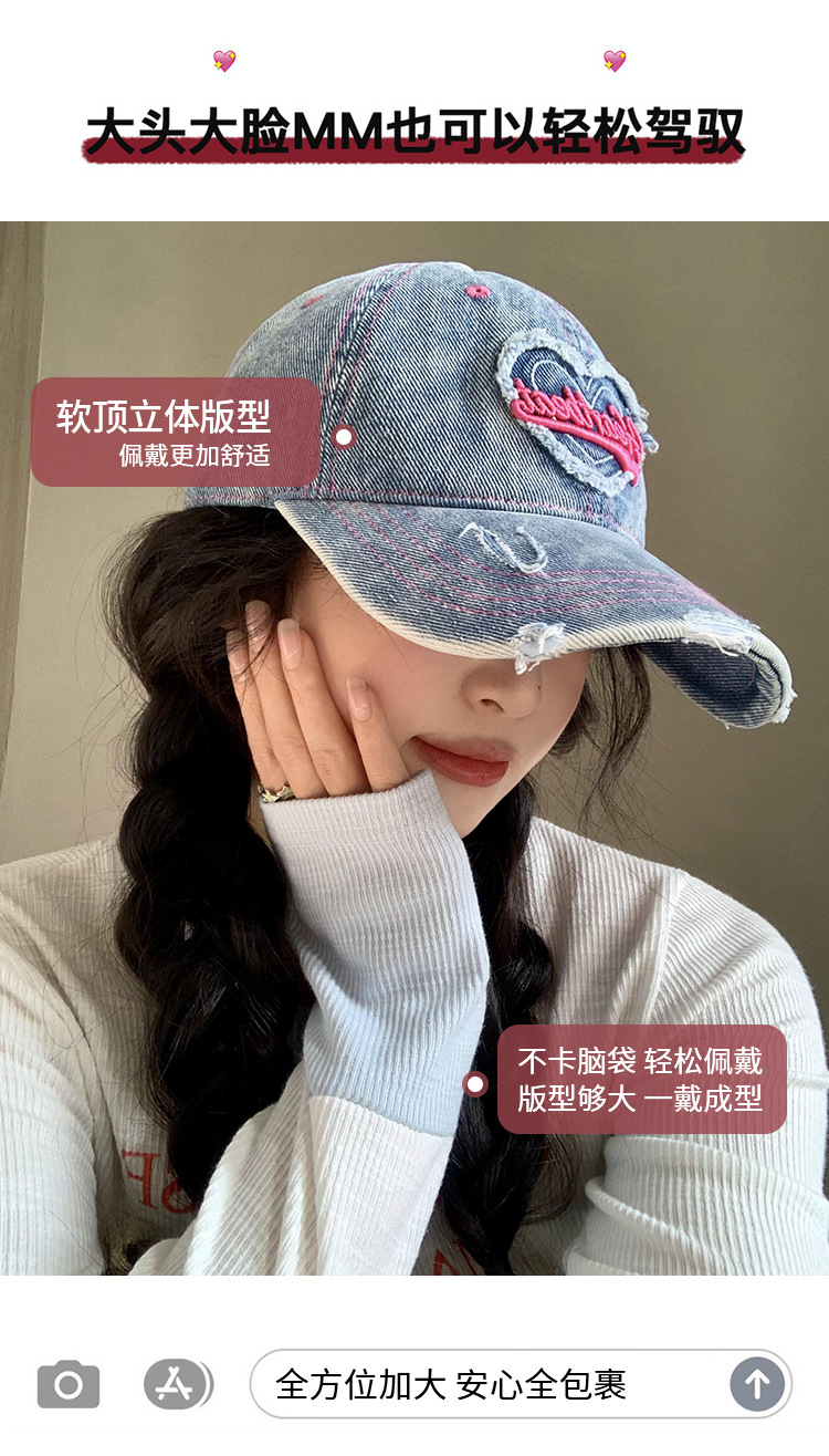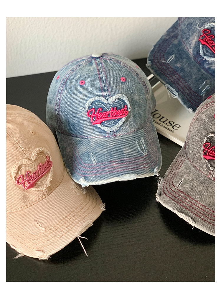 Amor lavado con agua gorra de béisbol de vaqueros mujer retro agujero viejo gorro ancho gorro gorra gor