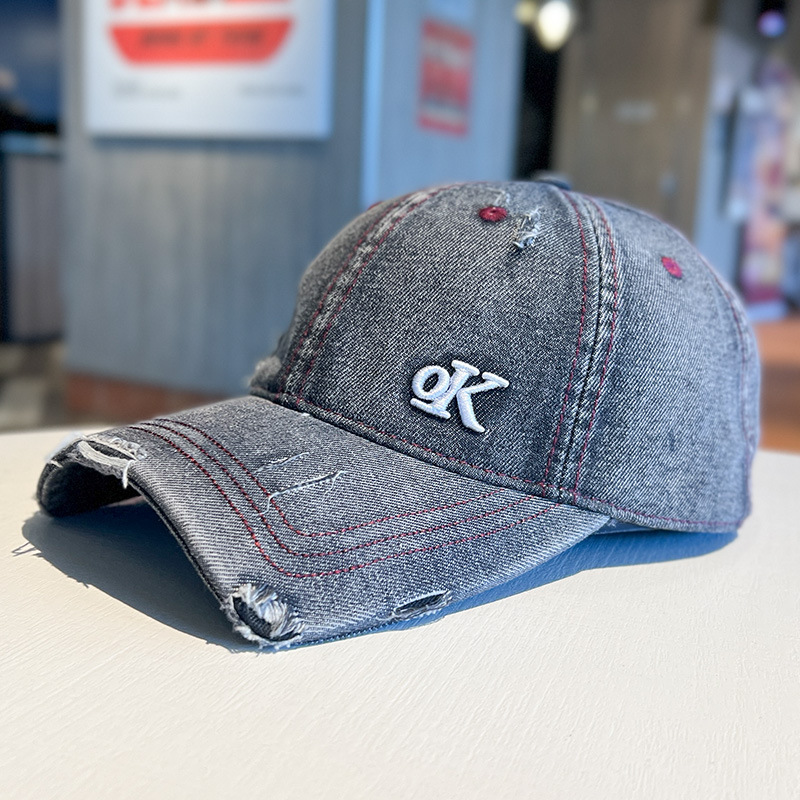 Sombreras de béisbol bordadas con letras personales moda para hombres y mujeres agujeros rotos gorra de boca de pato de pareja gorra de vaquero