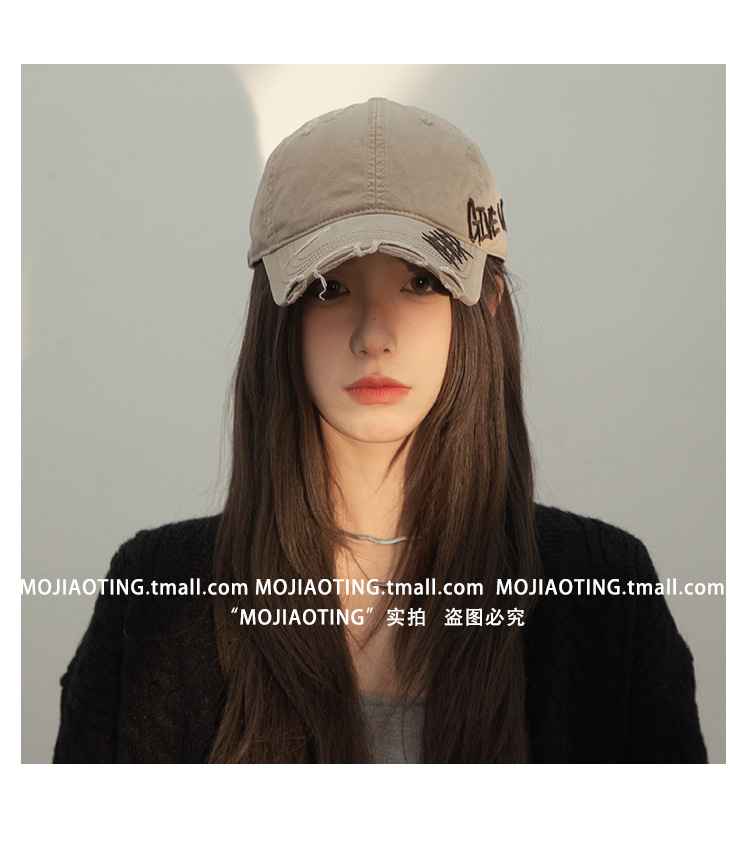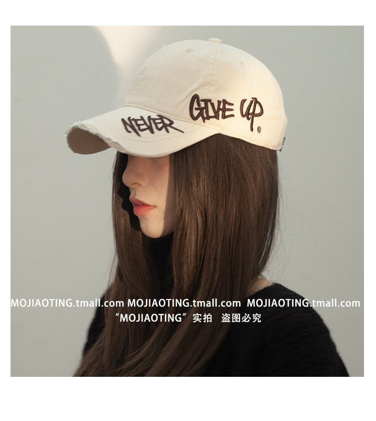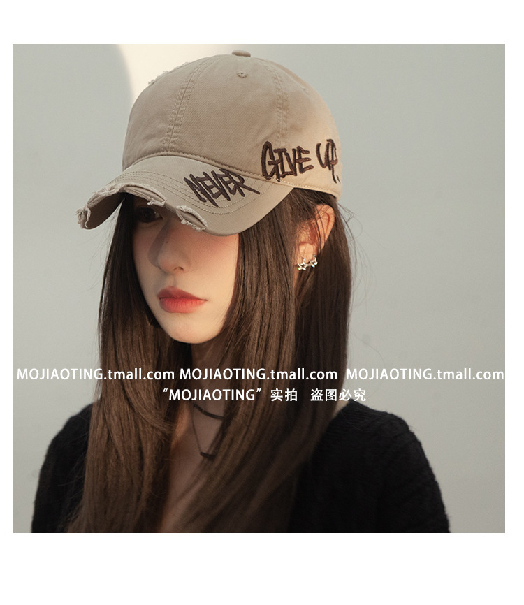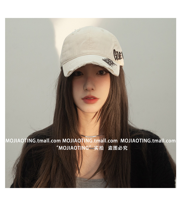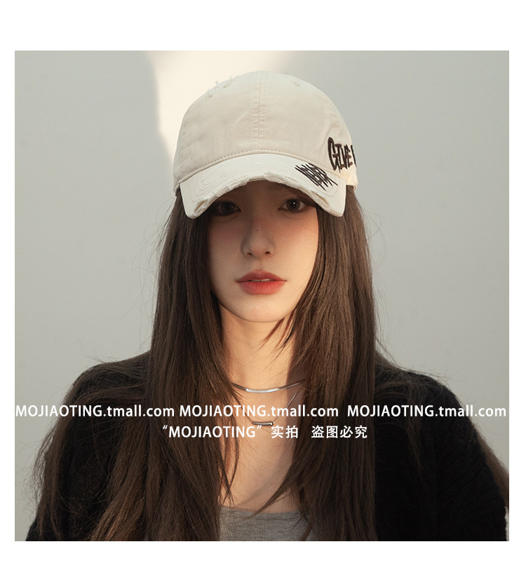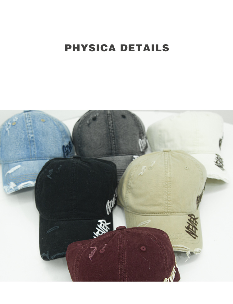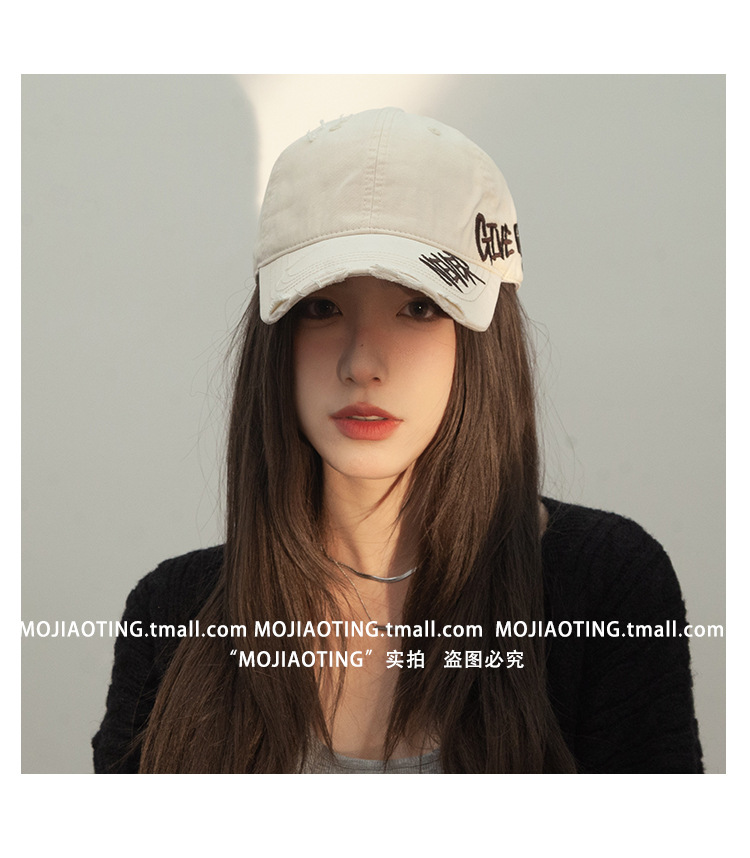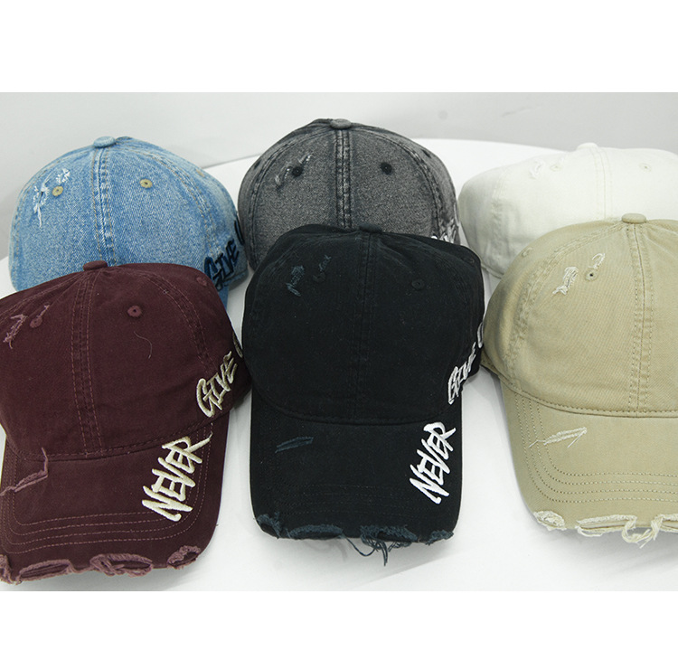 Retro americano lavado con agua para hacer viejos agujeros gorras de béisbol de verano mujeres letras de sombrero bordadas versátiles muestran cara gorras de lengua de pato