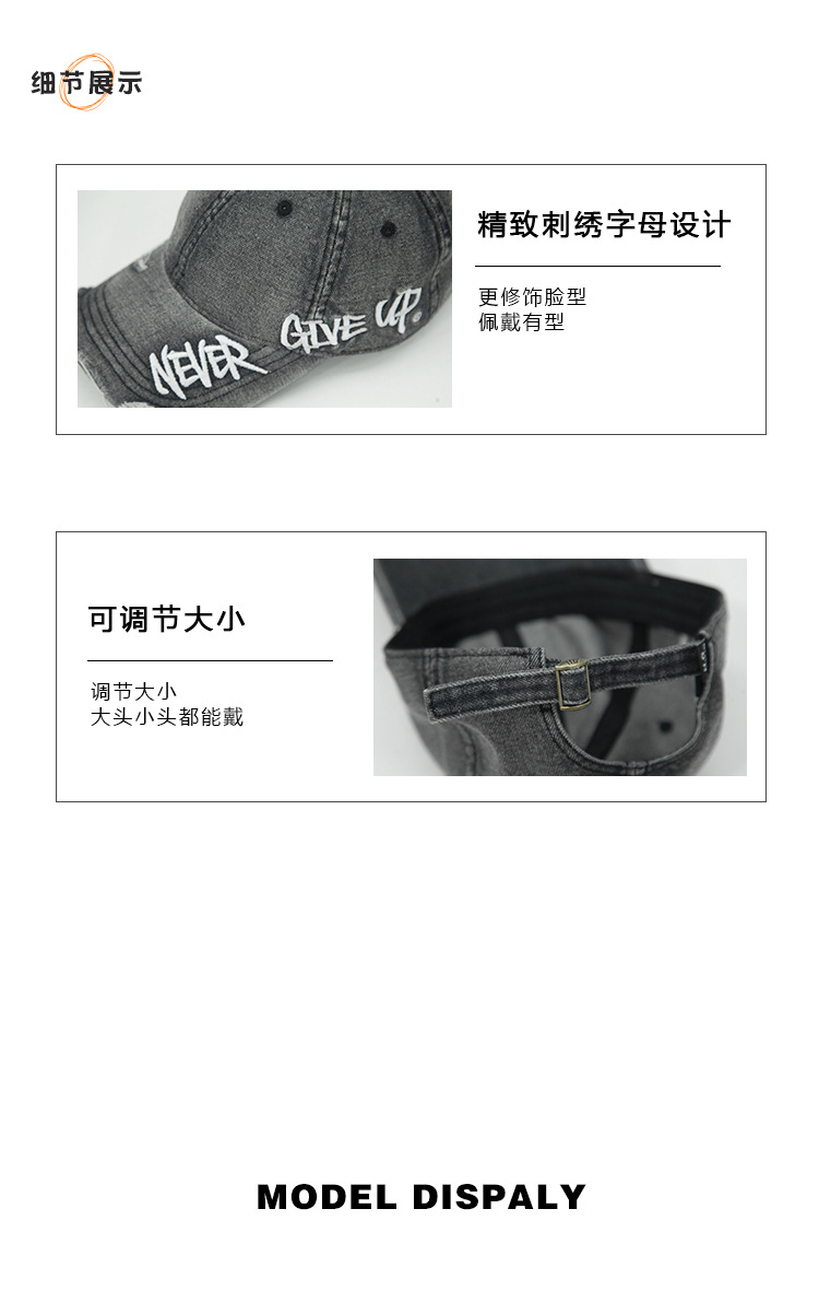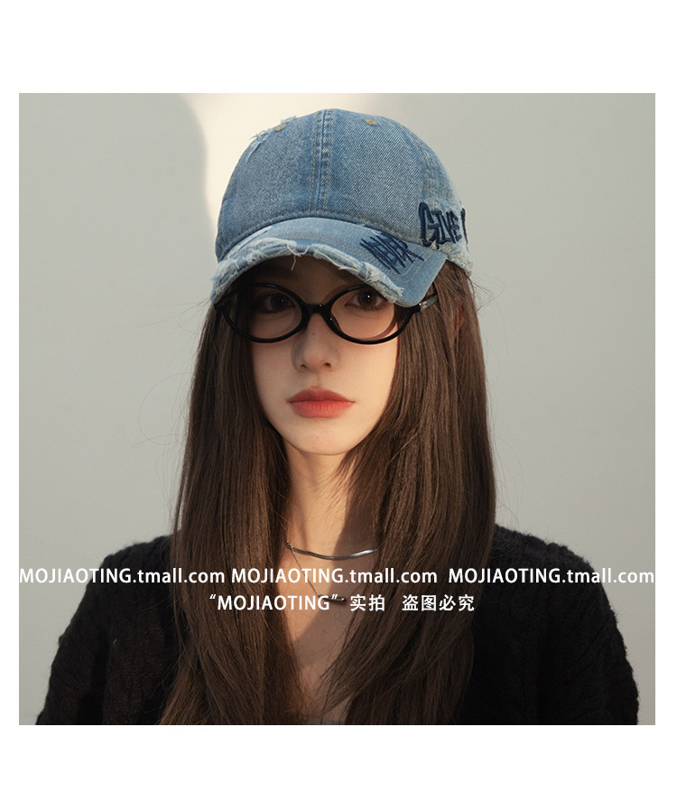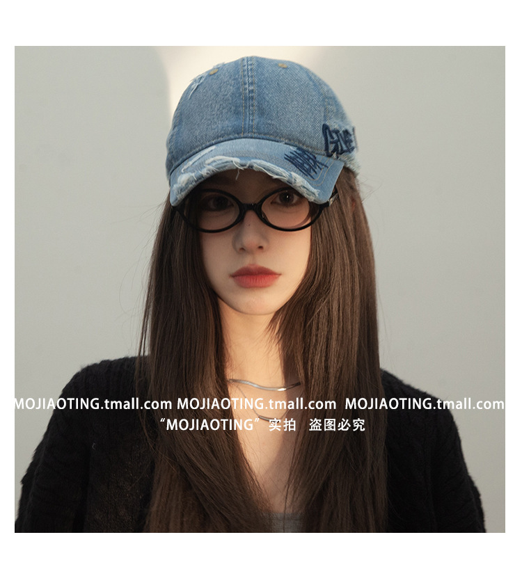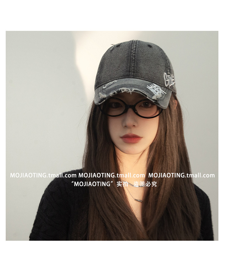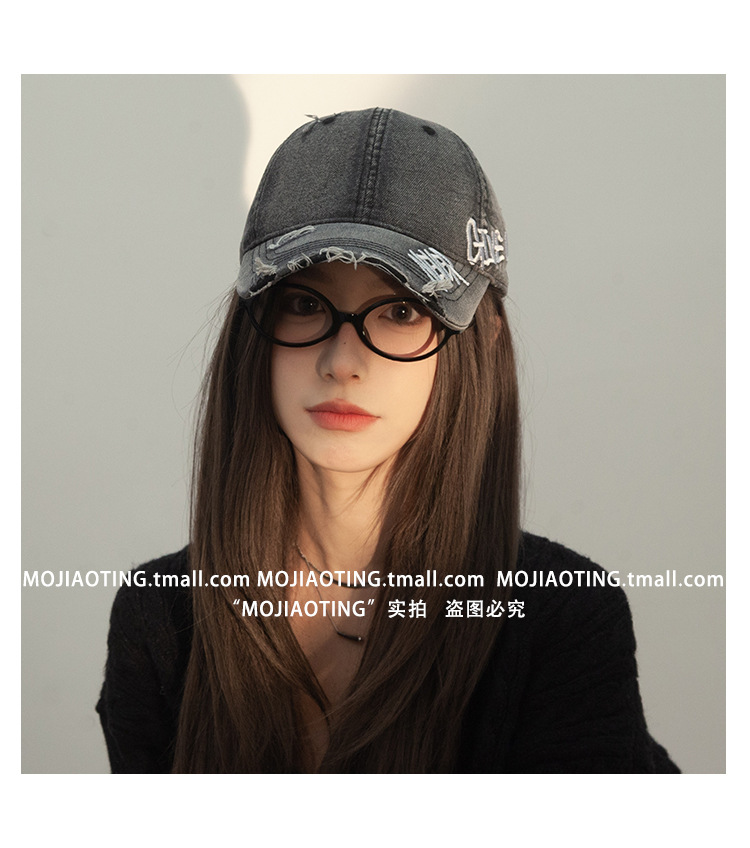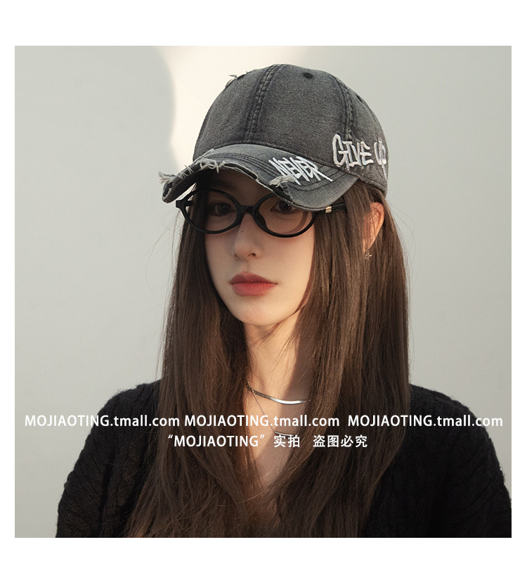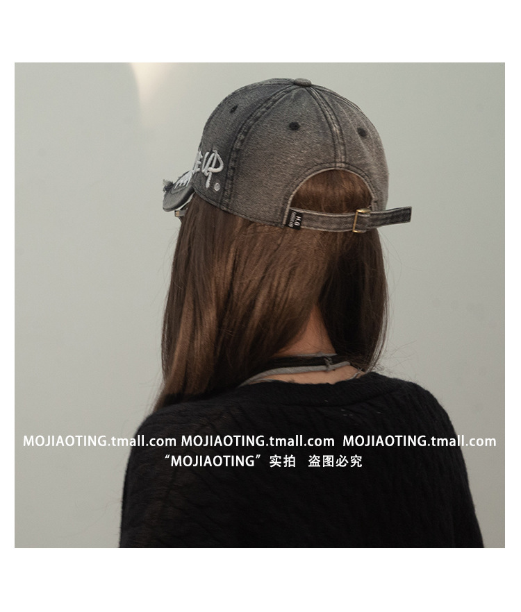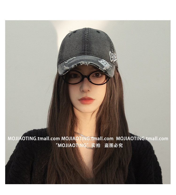 Retro americano lavado con agua para hacer viejos agujeros gorras de béisbol de verano mujeres letras de sombrero bordadas versátiles muestran cara gorras de lengua de pato
