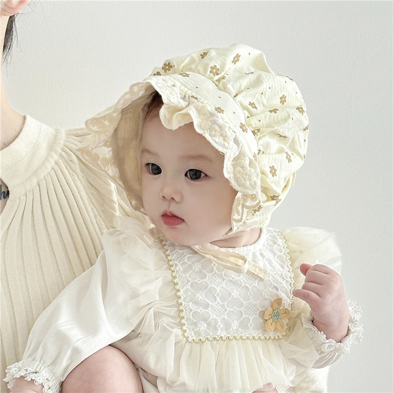 3-12 Sombrero de bebé recién nacido de primavera y otoño delgado bebé pequeño mes de edad bebé princesa sombrero de encaje flores