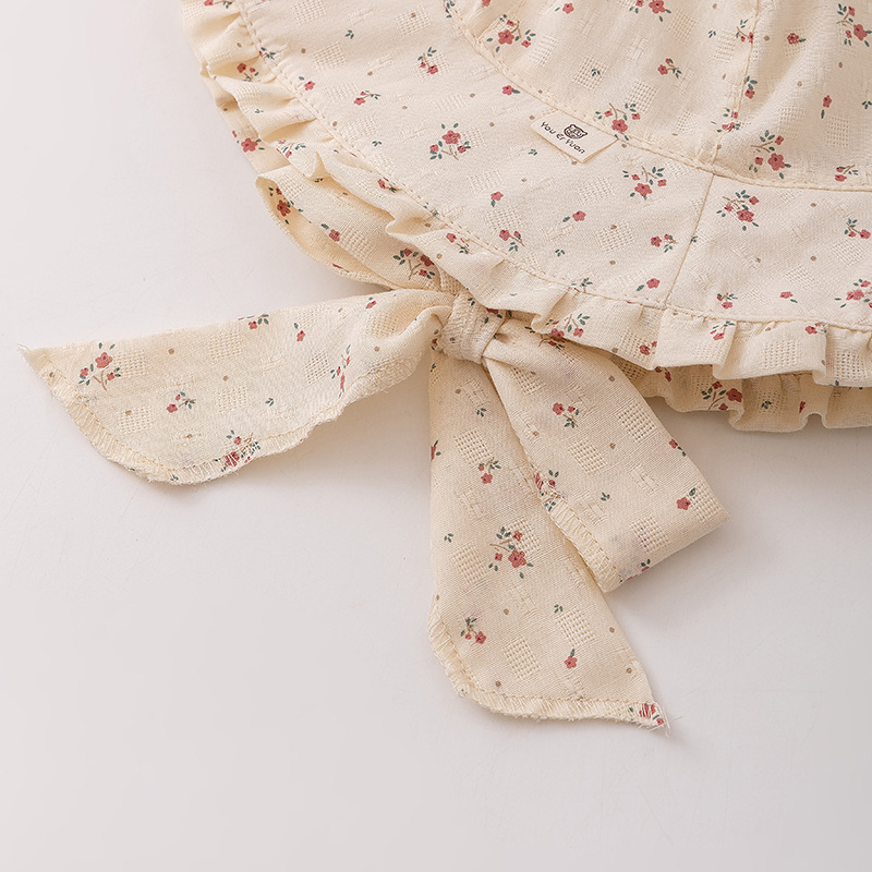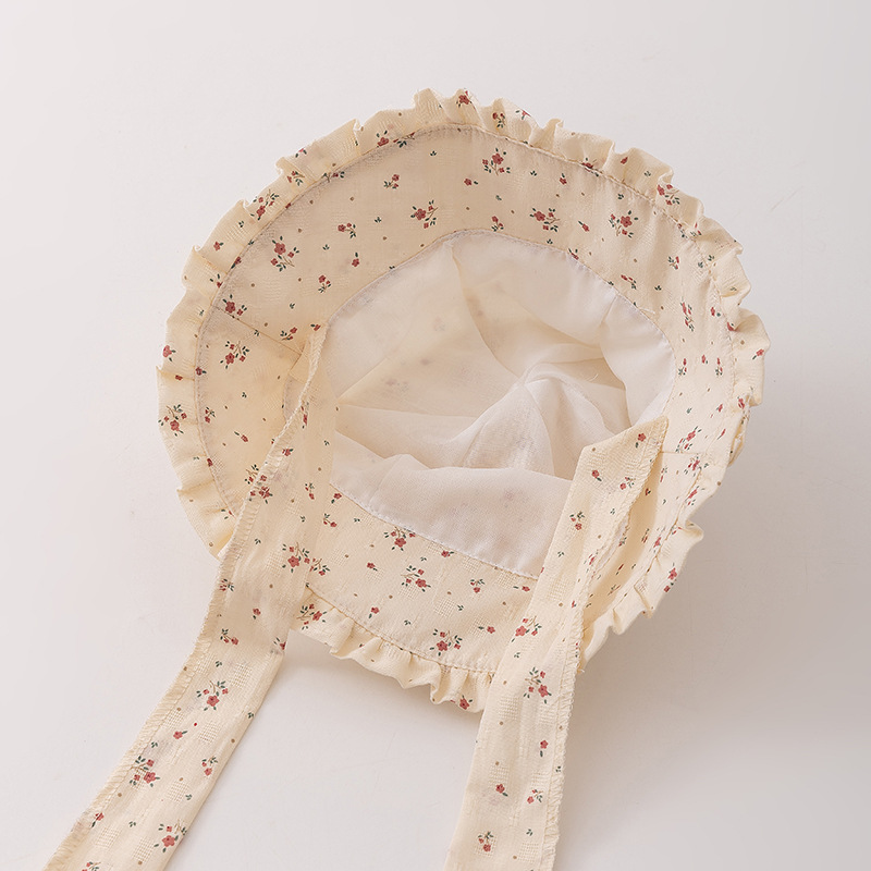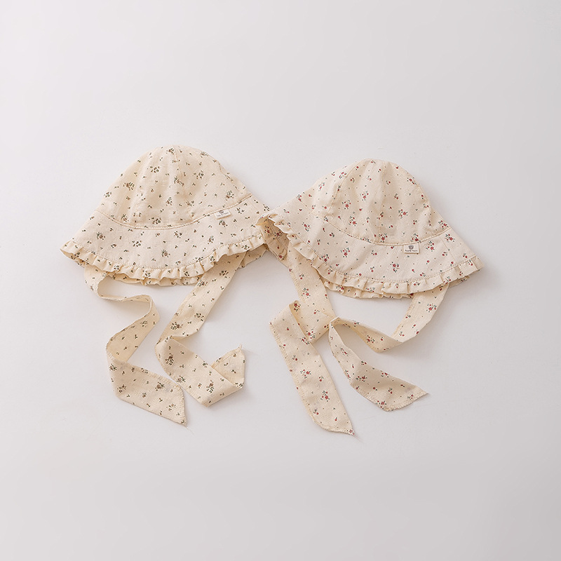 1-2 Sombrero infantil primavera y otoño delgado sombrero de pescador para bebés de estilo francés flor triturada sombrero de protección solar gran gorro