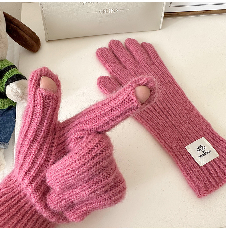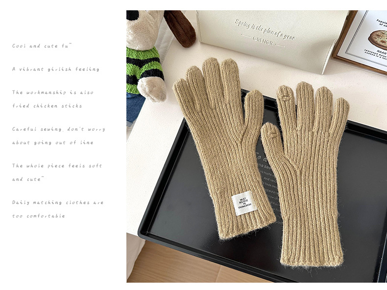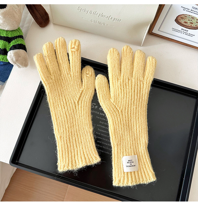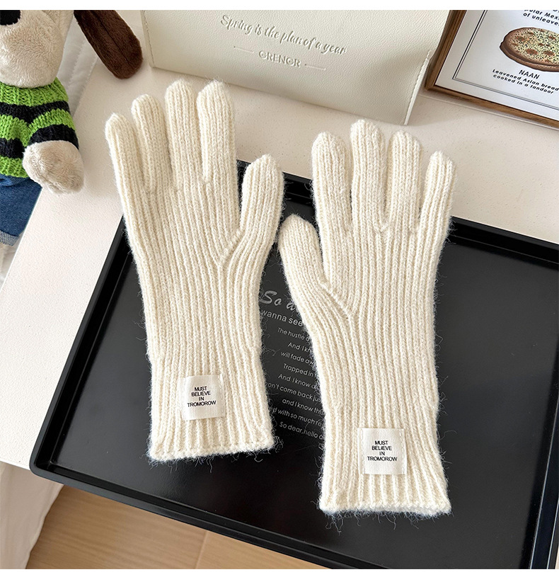 Guantes de mujer etiqueta de color caliente material opcional etiquetado guantes de punto de lana personalizados fábrica de fuente