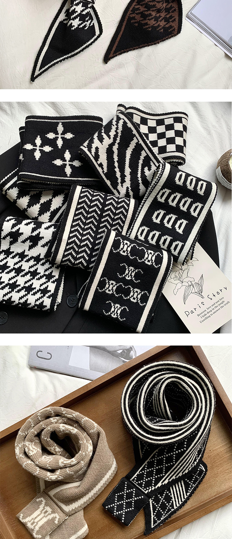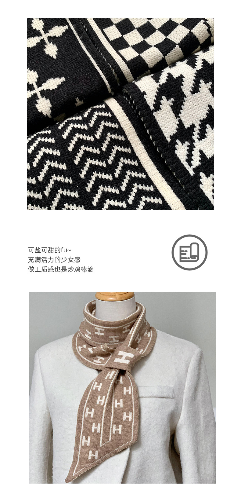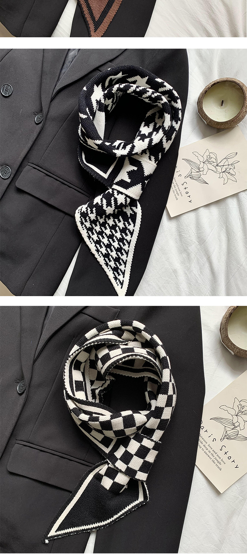Bufandas de punto de alta sensación de nuevo estilo coreano otoño invierno versátil tablero de ajedrez perforación toallas de orejas perezosas cruzada guillera