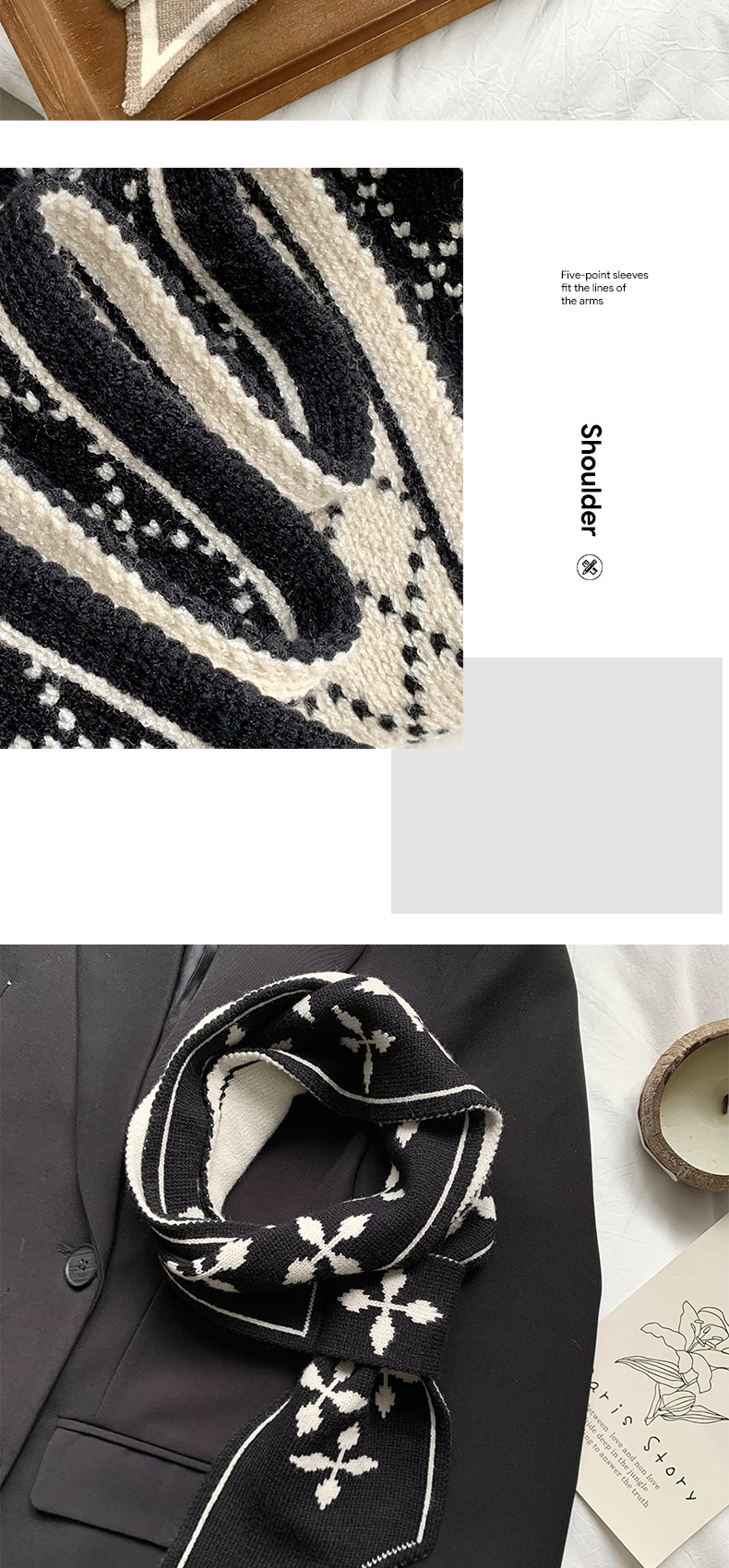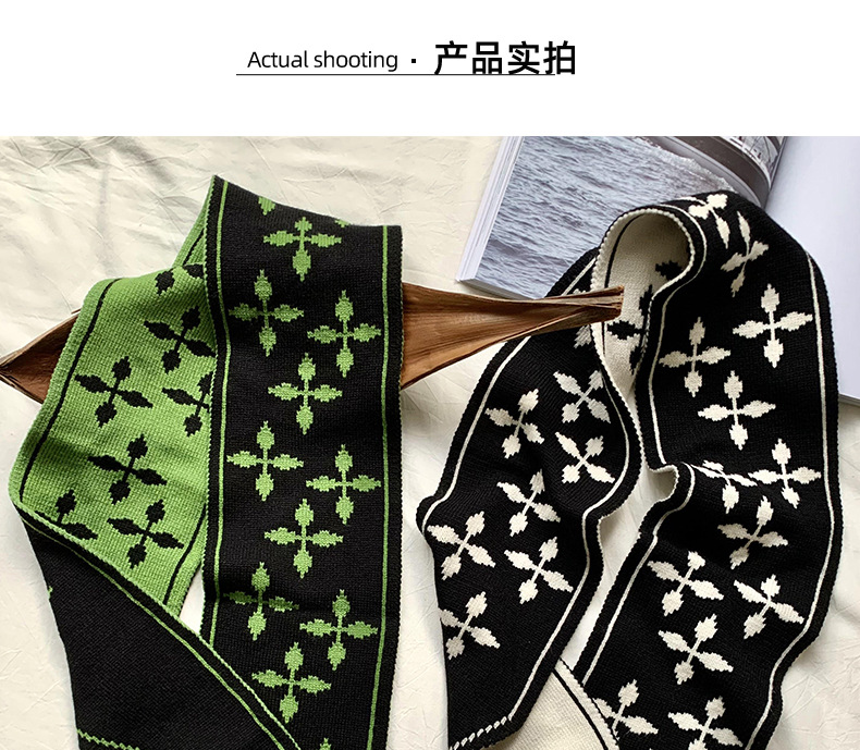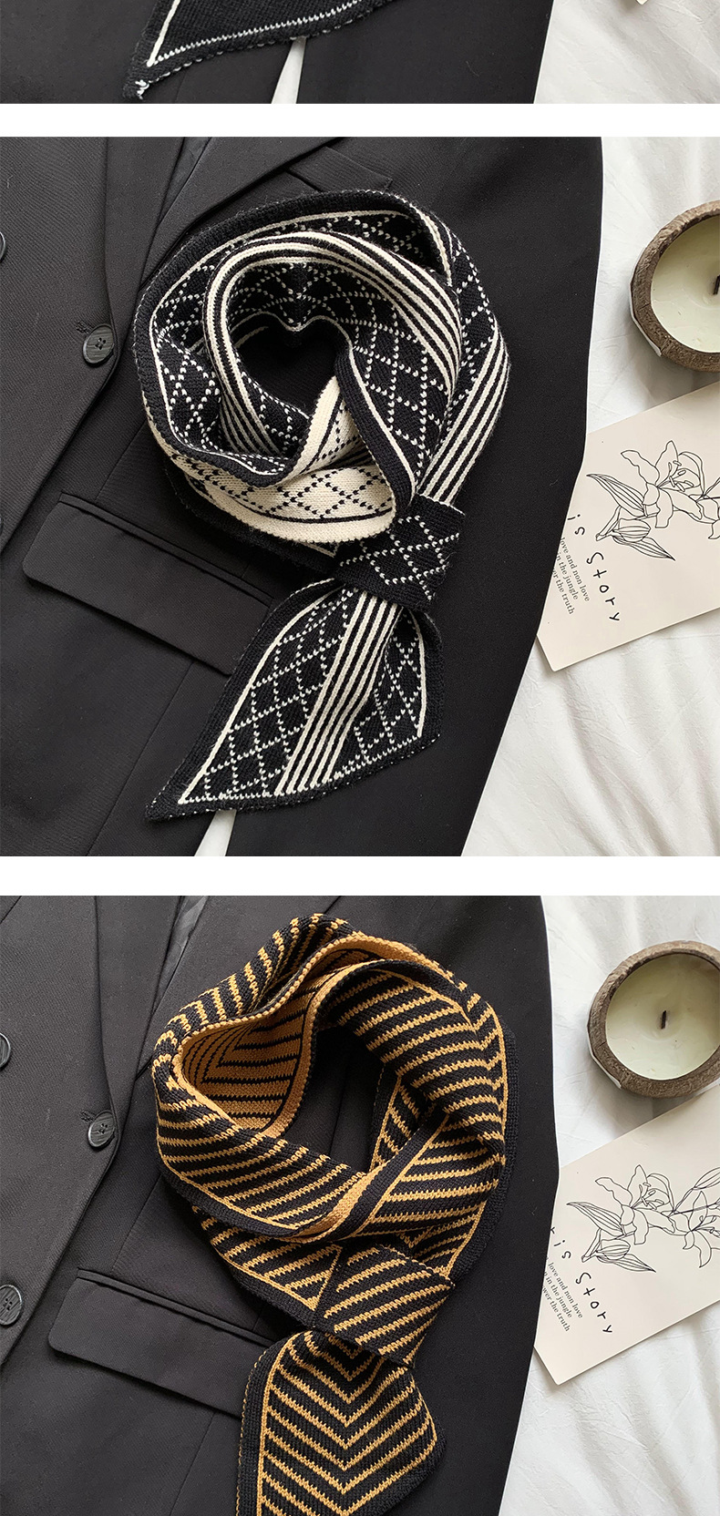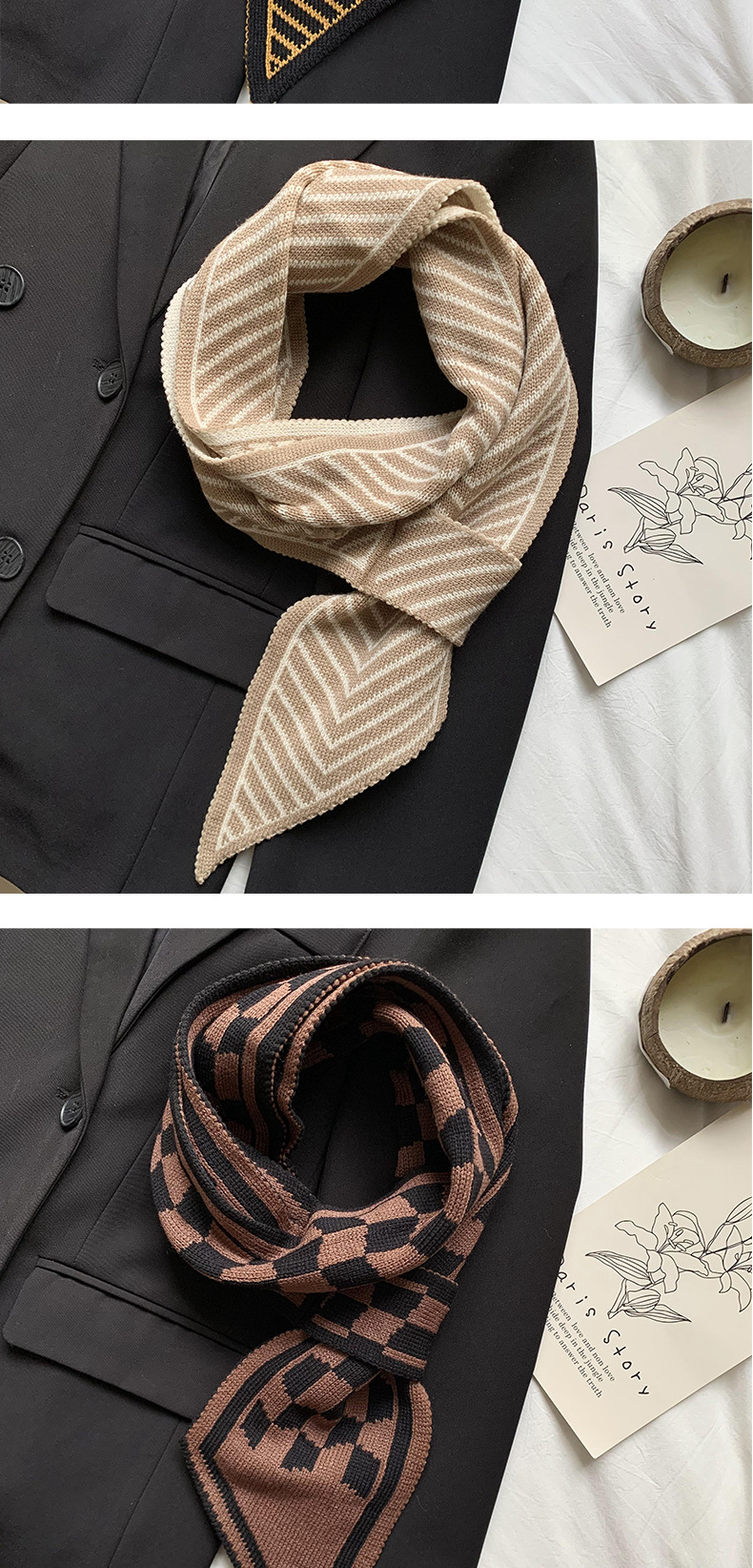 Bufandas de punto de alta sensación de nuevo estilo coreano otoño invierno versátil tablero de ajedrez perforación toallas de orejas perezosas cruzada guillera