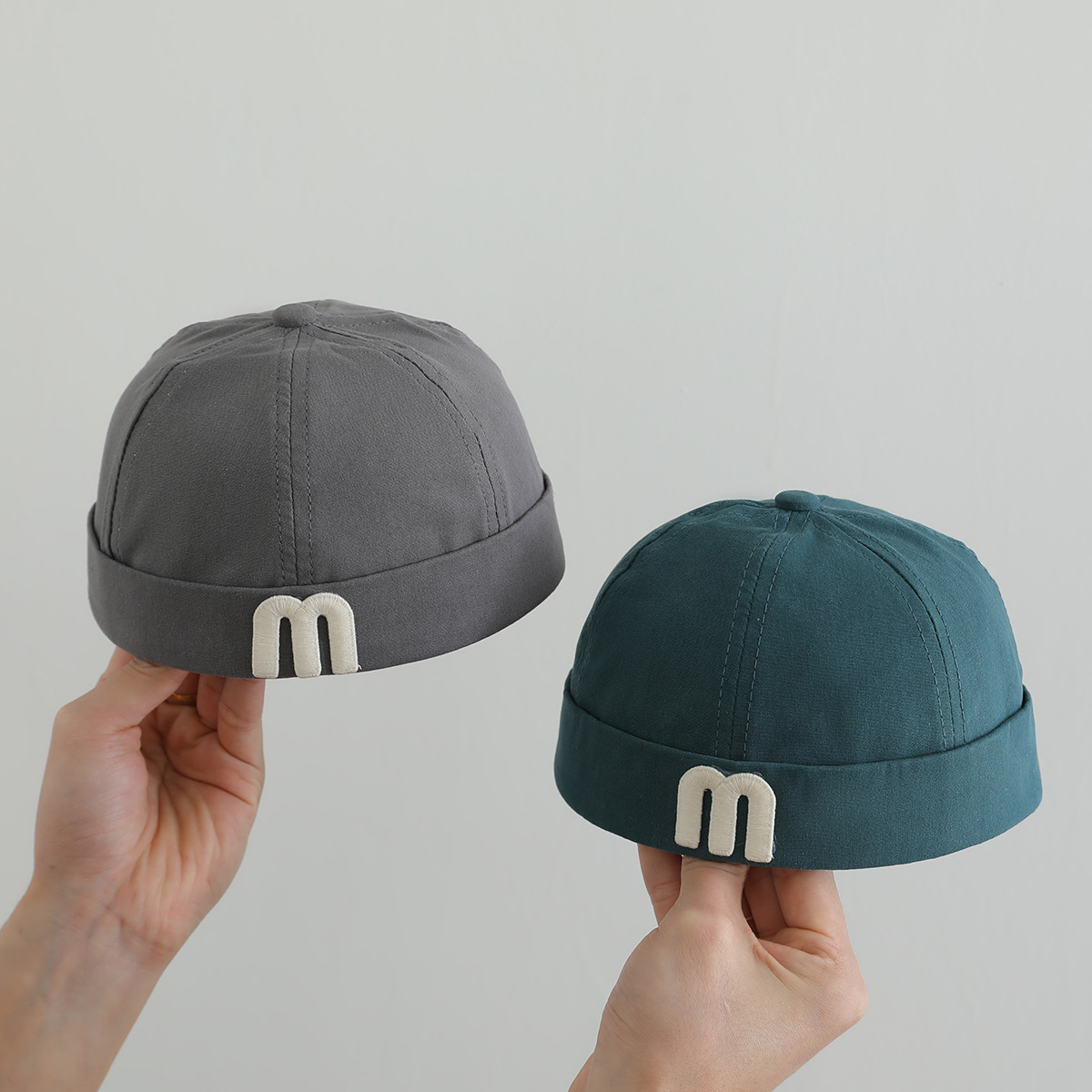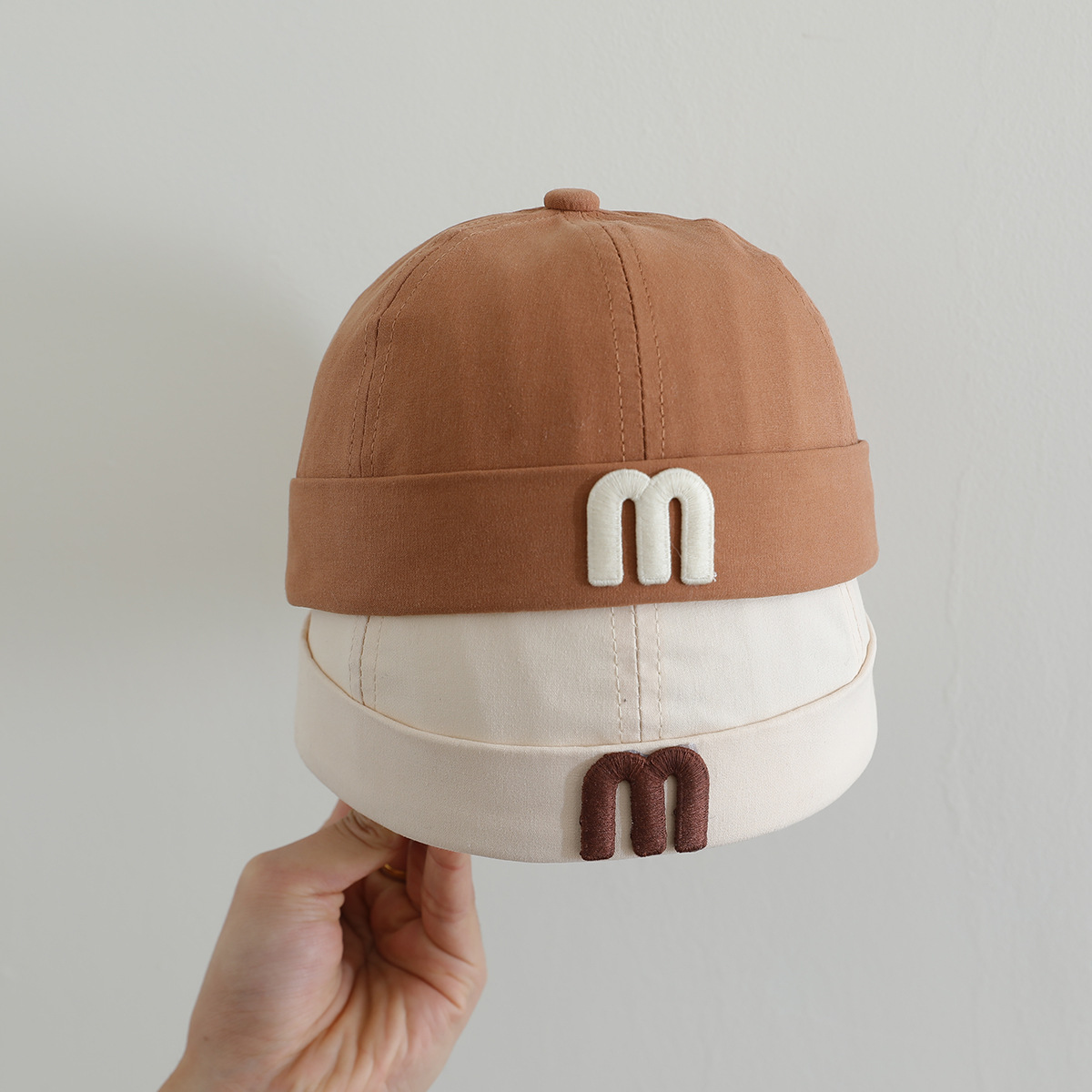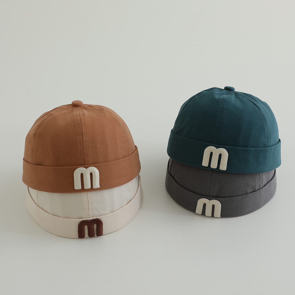 letras coreanas m niños terratenientes sombrero primavera y otoño modelado cóncavo de moda para hombres y mujeres bebés sombrero de tela de color sólido