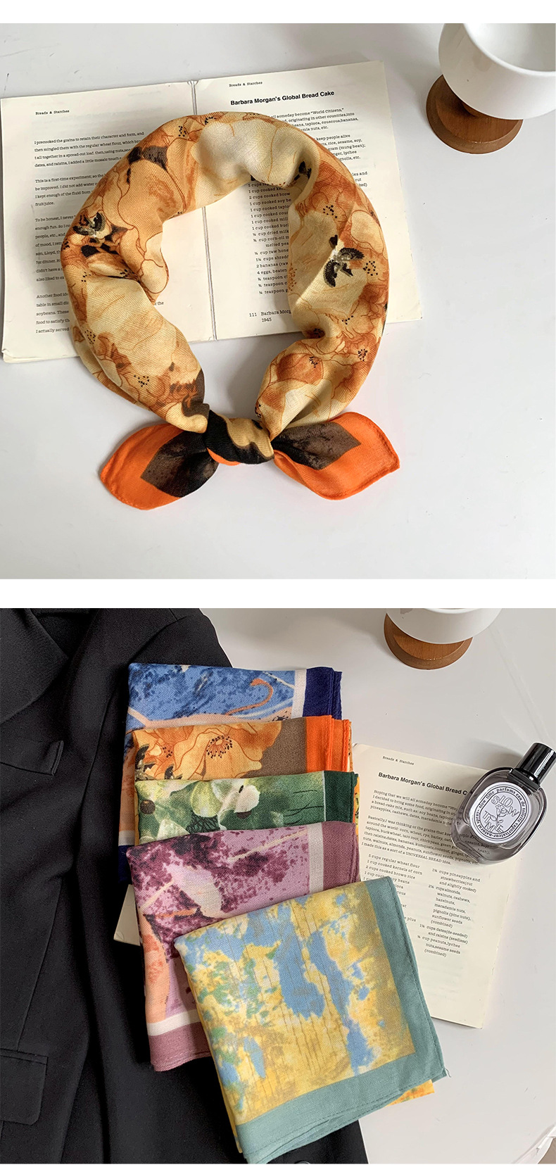 Bufandas de seda cuadrada alta sensación 2025 nueva impresión coreana de 65cm bufandas de seda cuello bufandas bufandas al por mayor