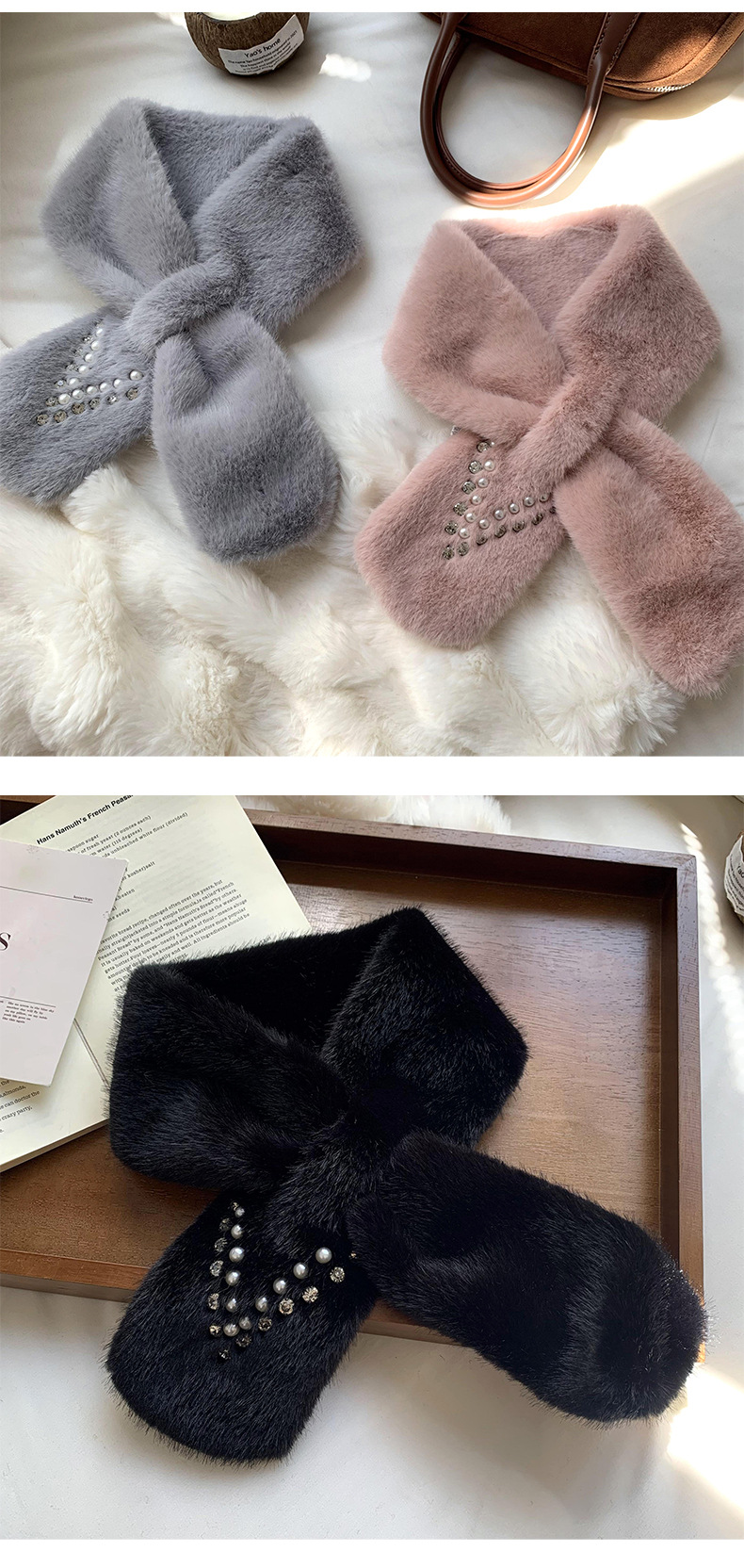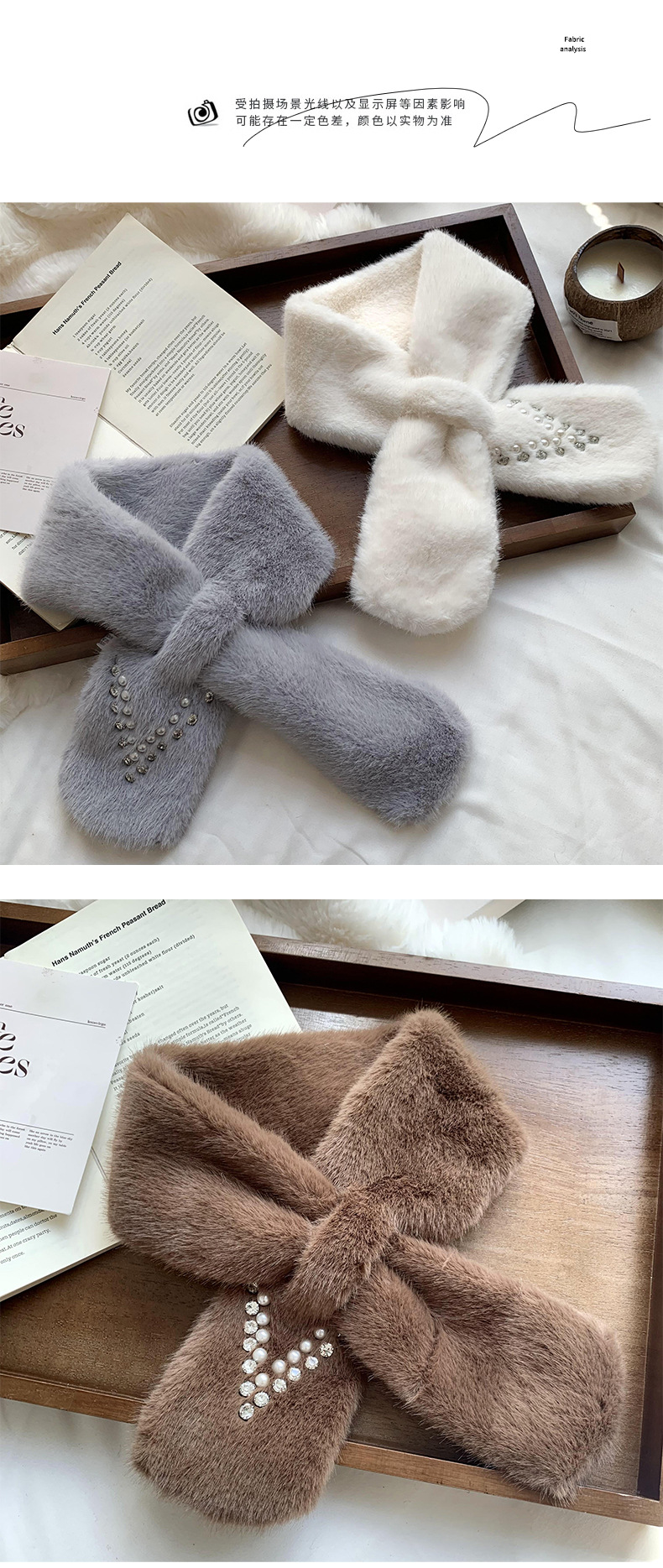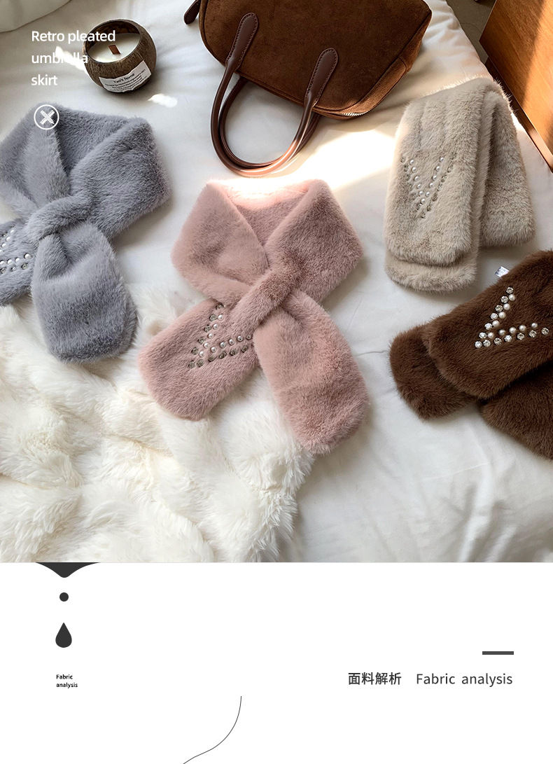 Otoño e invierno bufandas mujeres otoño e invierno 2025 peluche perlas con diamantes multifacé imitación de cabello bonito buñuelo dulce al por mayor