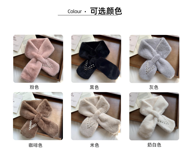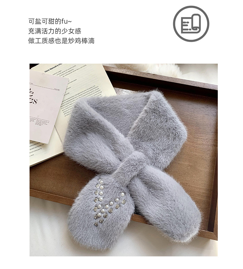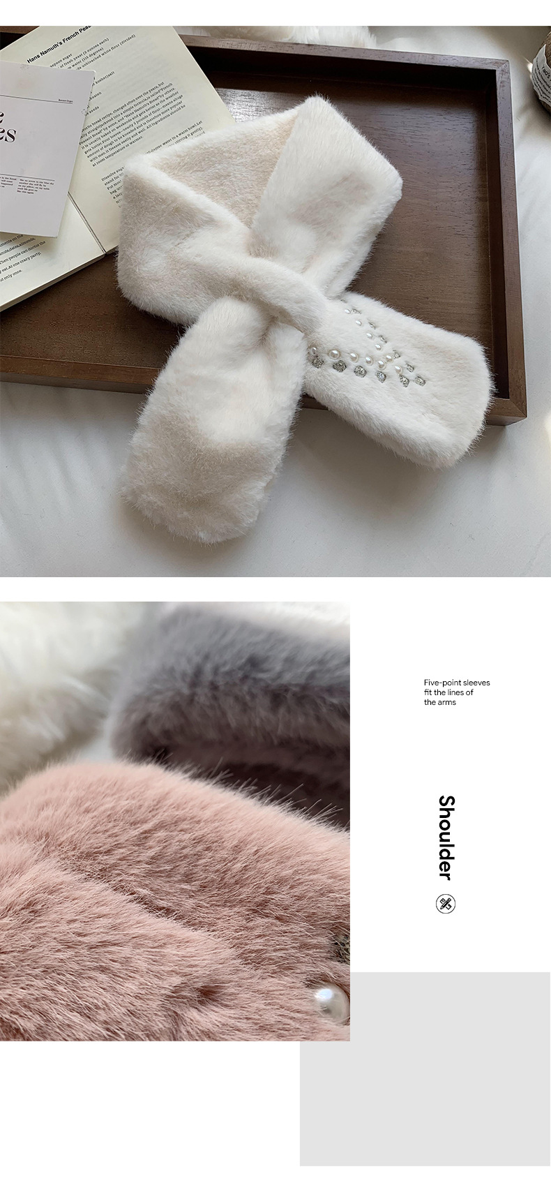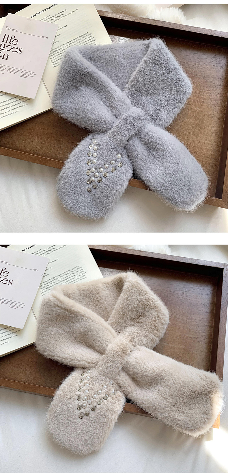 Otoño e invierno bufandas mujeres otoño e invierno 2025 peluche perlas con diamantes multifacé imitación de cabello bonito buñuelo dulce al por mayor