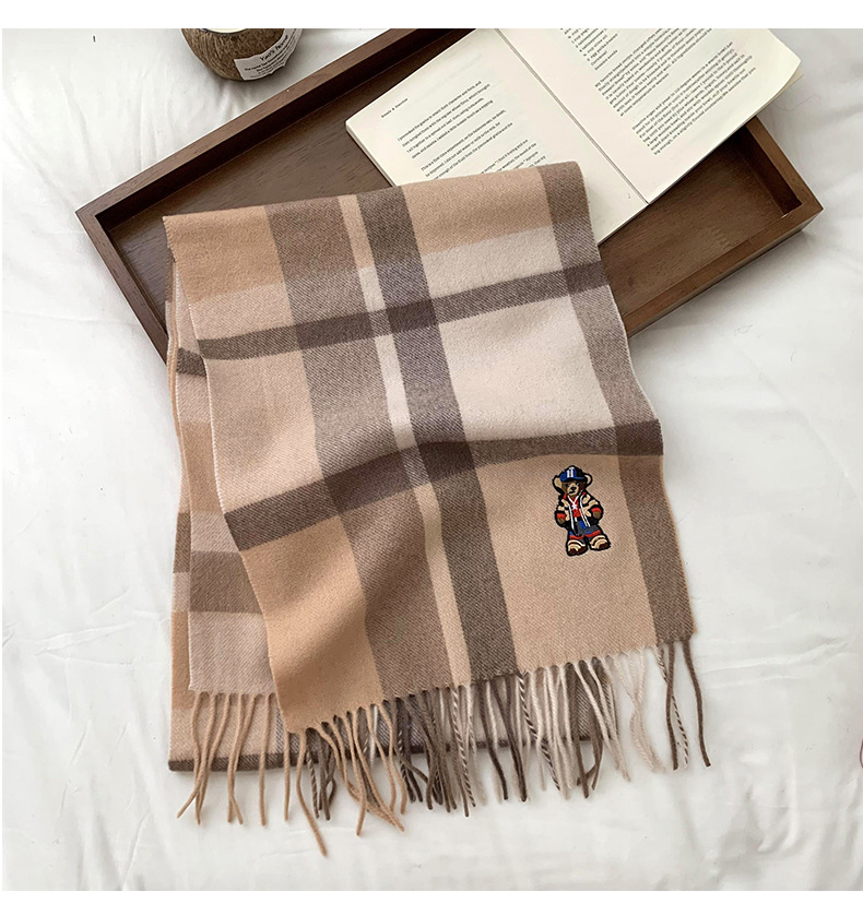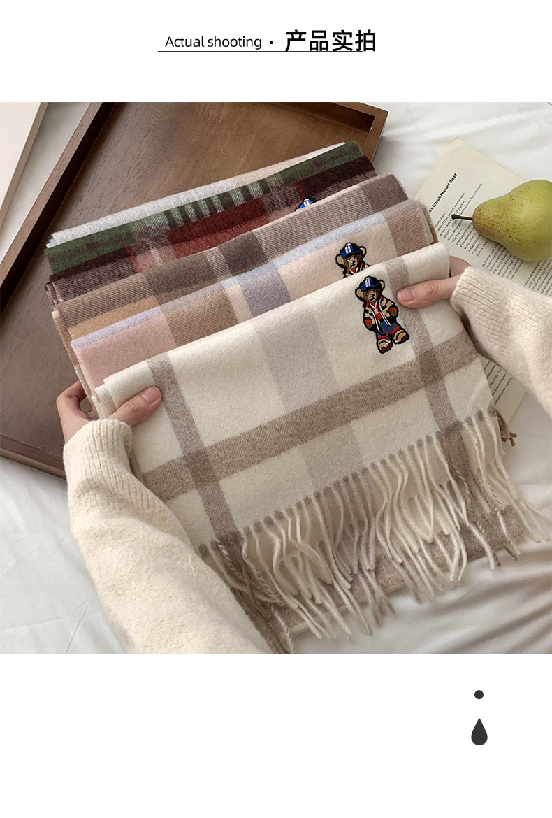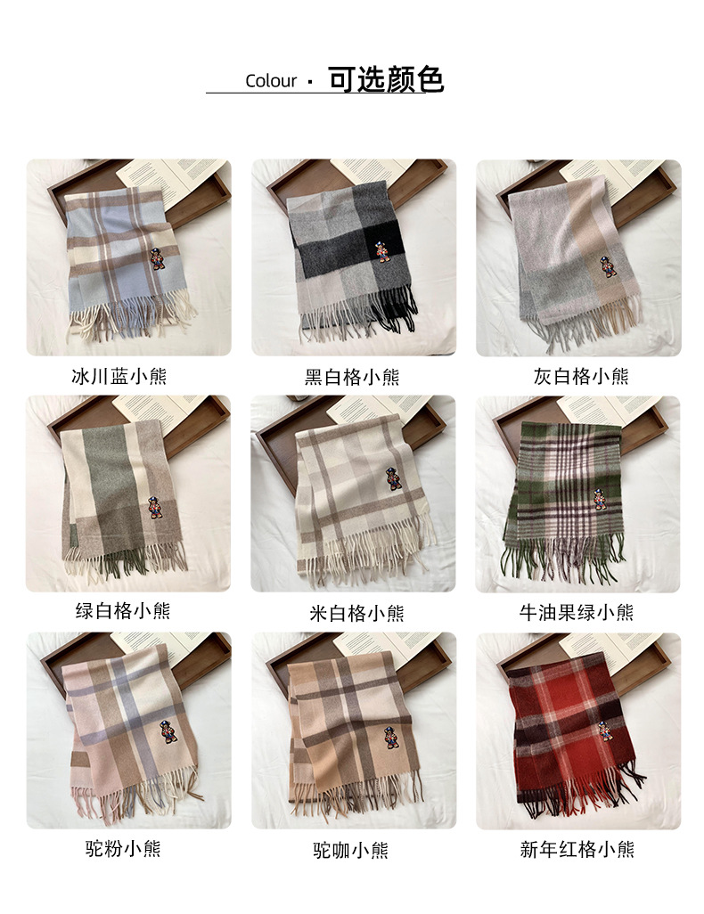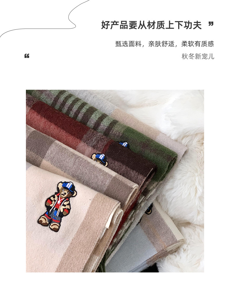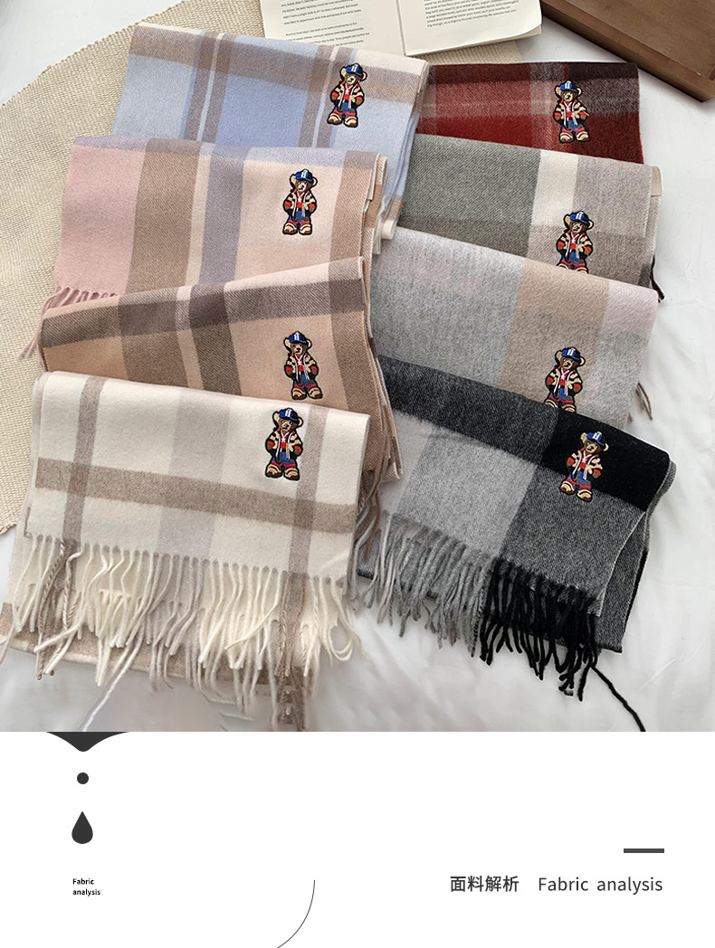 Bufandas de invierno femeninas de alto nivel sensación de nuevo oso bordado cuadrilátero universal calentamiento bufandas parejas bufandas al por mayor