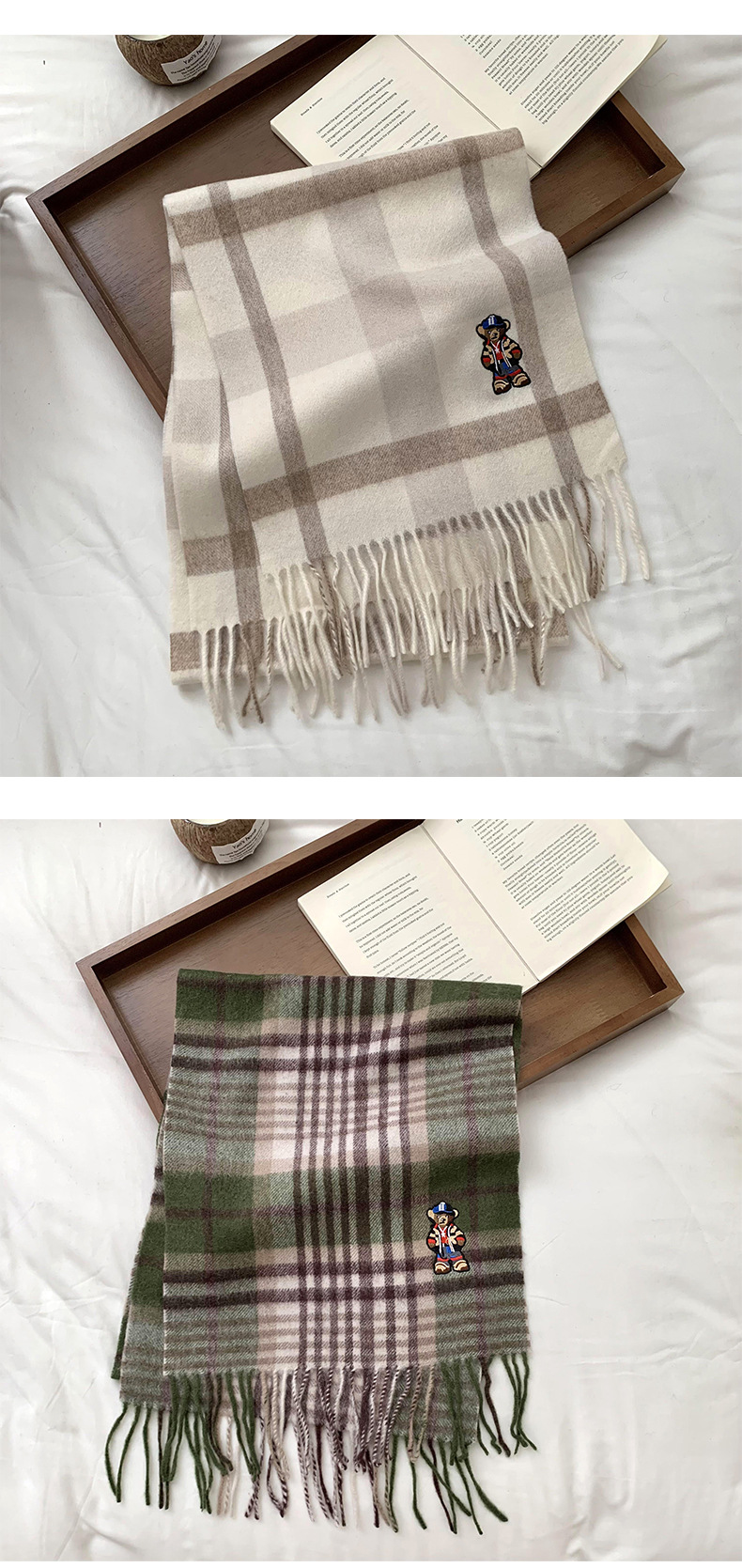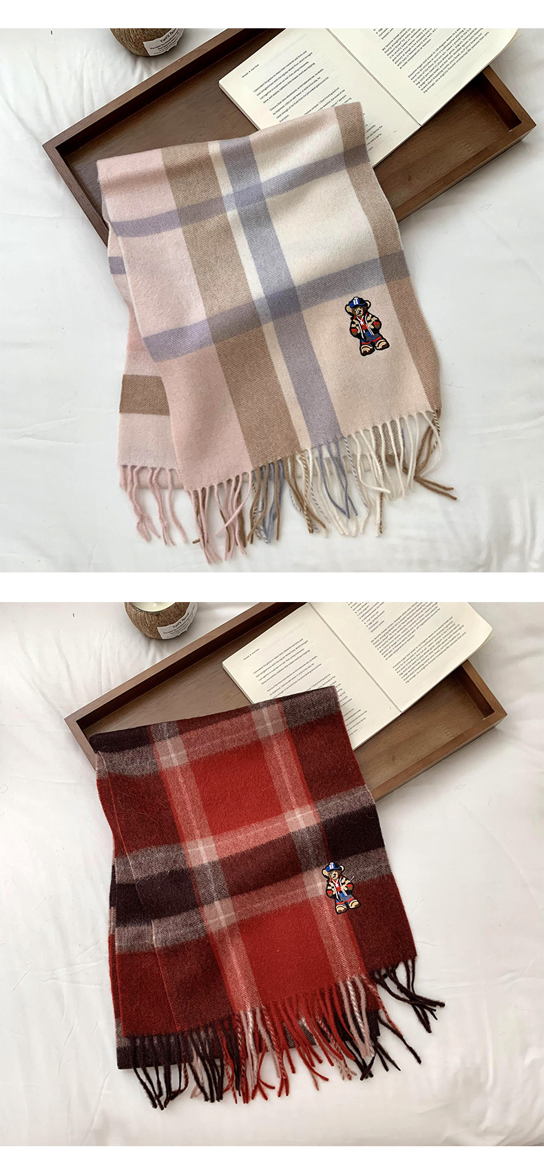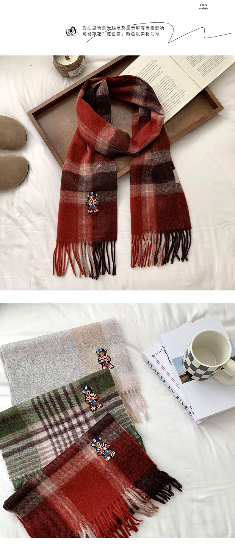 Bufandas de invierno femeninas de alto nivel sensación de nuevo oso bordado cuadrilátero universal calentamiento bufandas parejas bufandas al por mayor