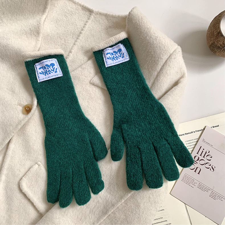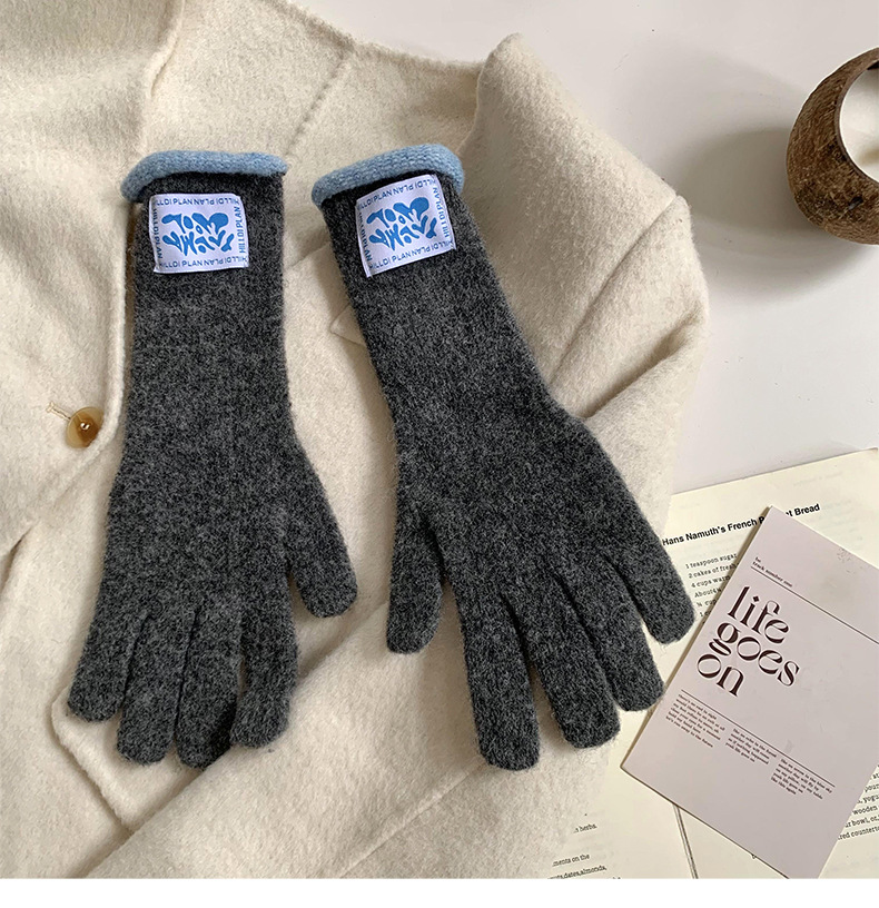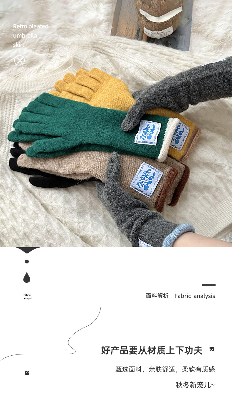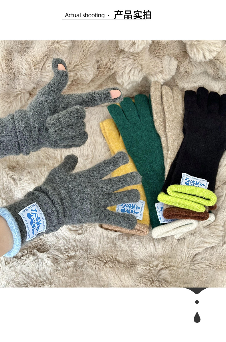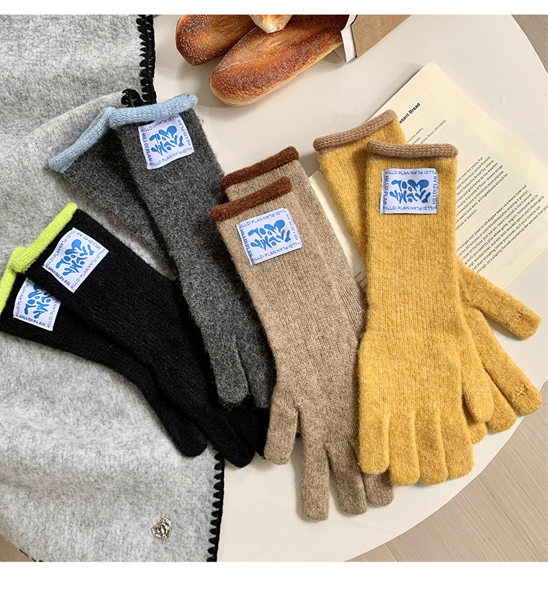 Granny Chen coreano ins blogger mismo guante de lana de punto de cinco dedos otoño y invierno versátil pantalla táctil para montar caliente