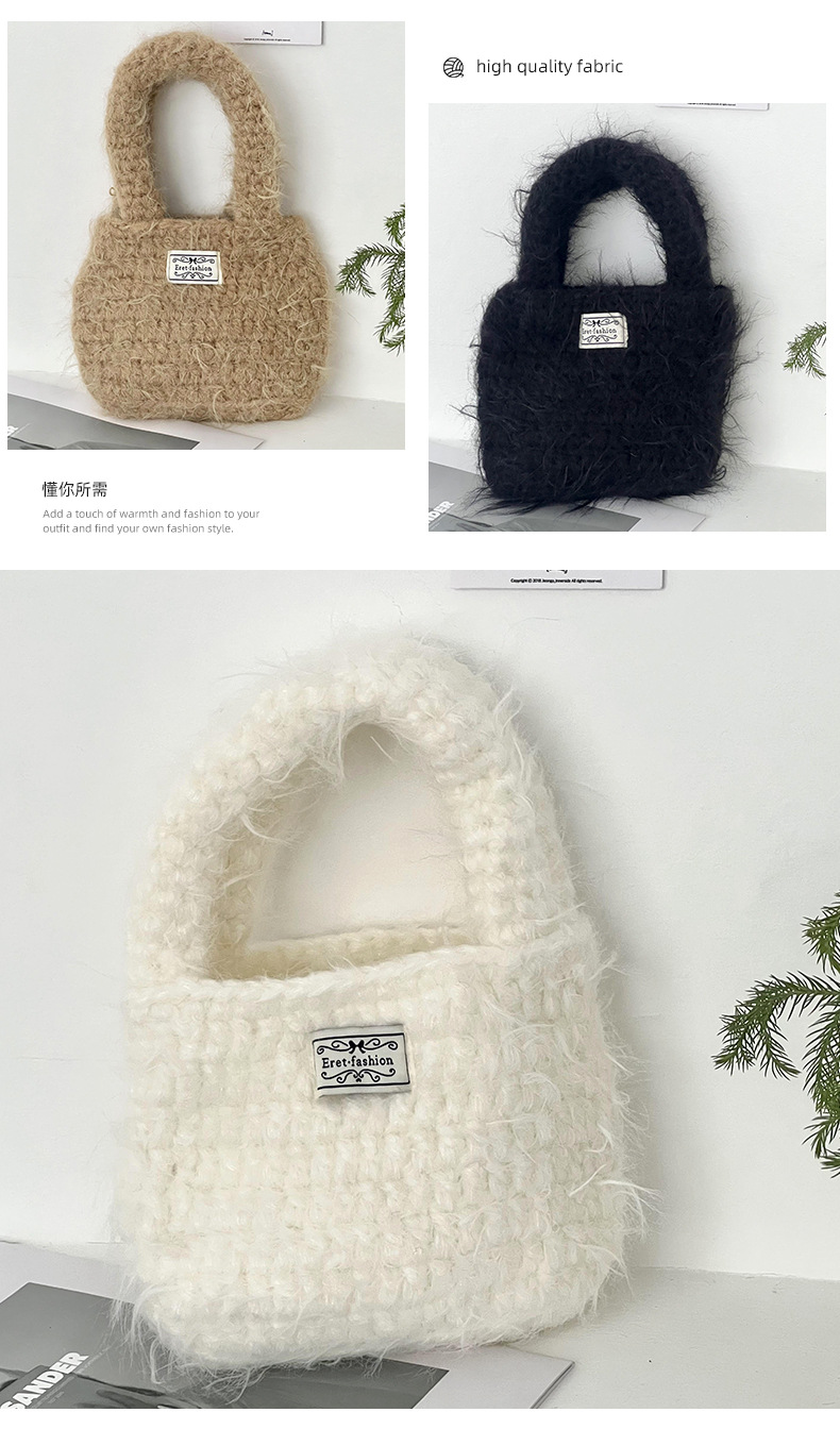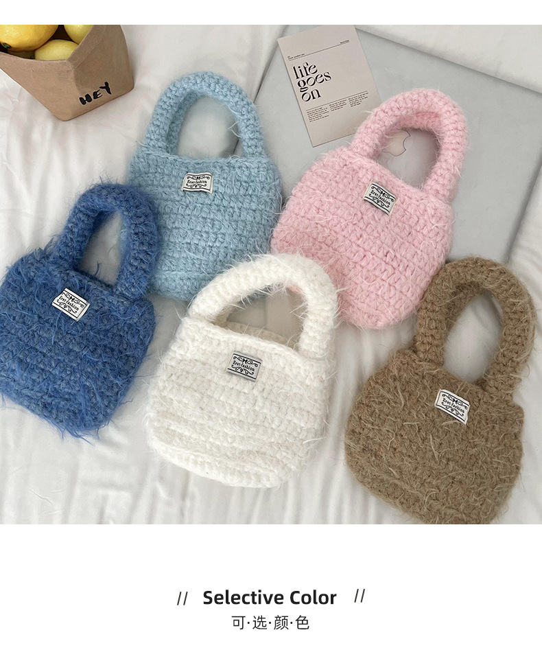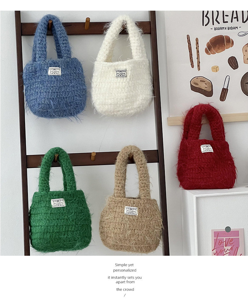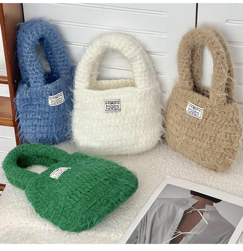 Bolsa de mano de damas otoño-invierno versátil retro suave lana hecha a mano tejida bolsa de muñeca bolsa de hombro
