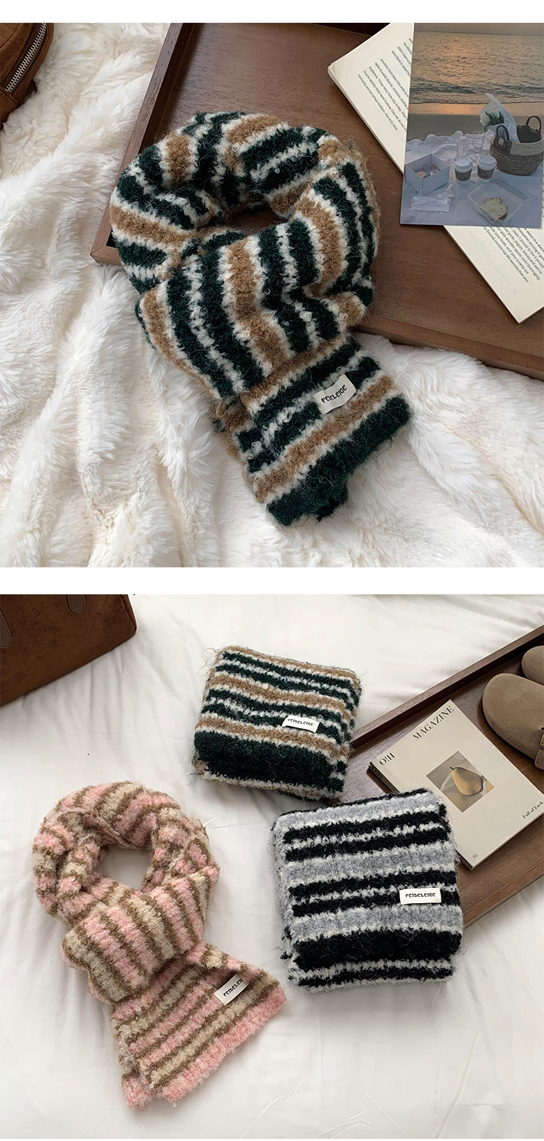 Bufandas de invierno femeninas de alta calidad 2025 nuevos inros de color contrastante rayas gruesas calentamiento de punto calentamiento del collar