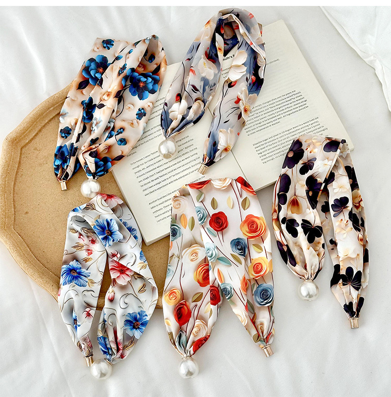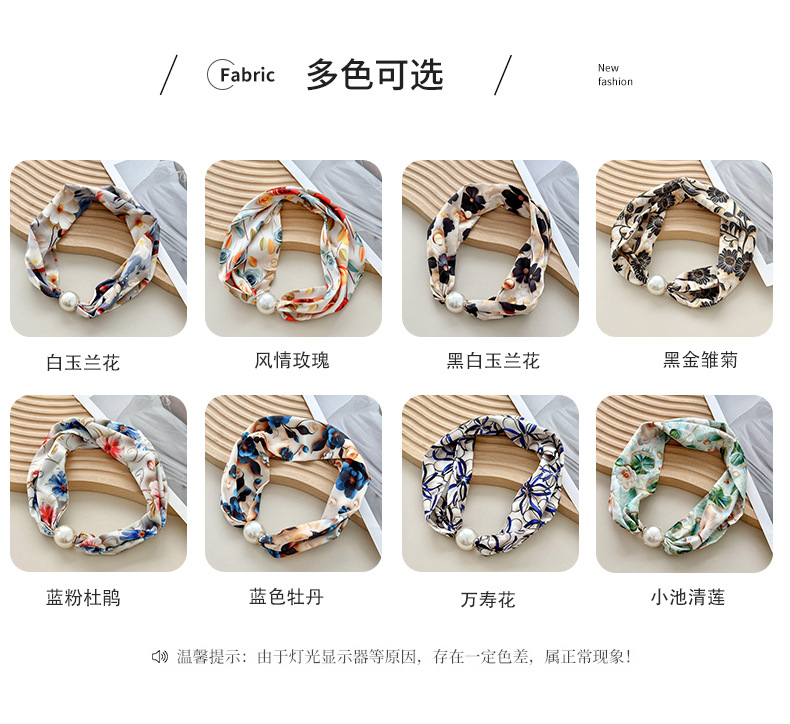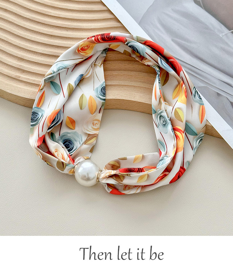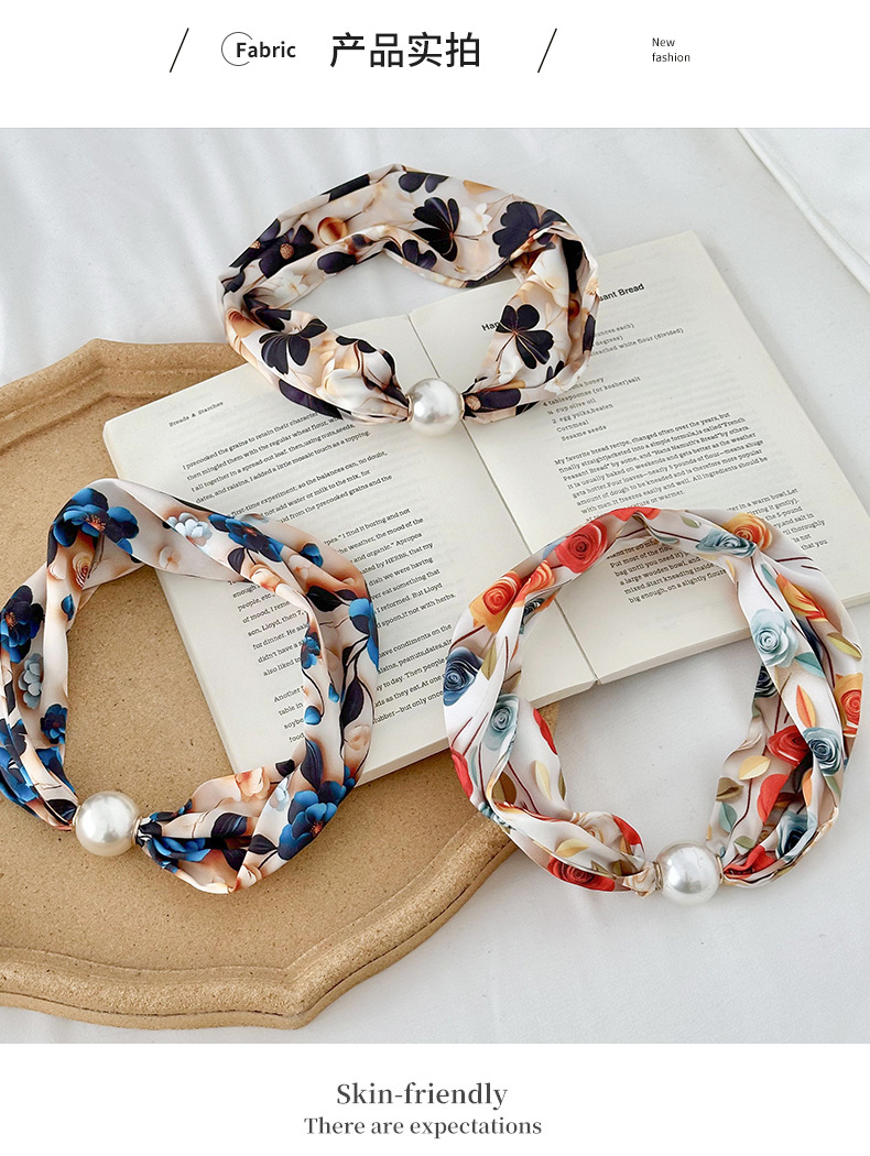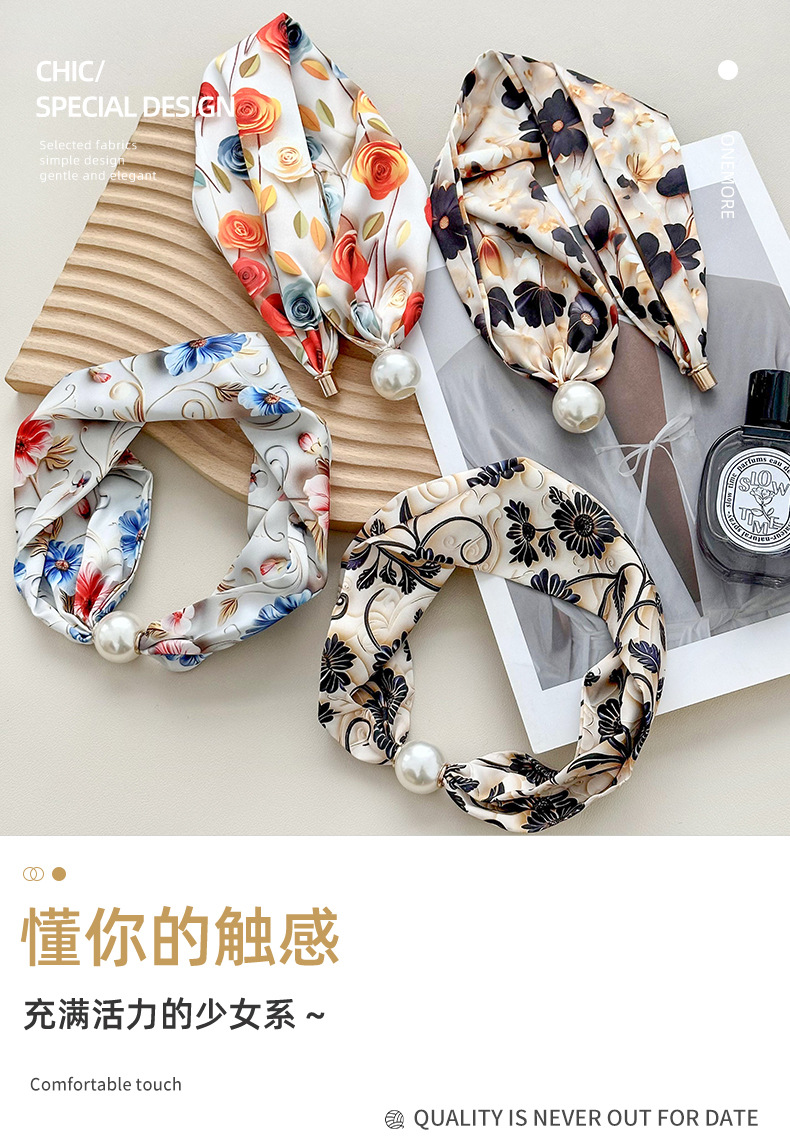 Bufandas de seda para mujeres 2025 nueva alta sensación de decoración bufandas de cuello collar de perlas cadena clavícula bufandas de seda de absorción al por mayor