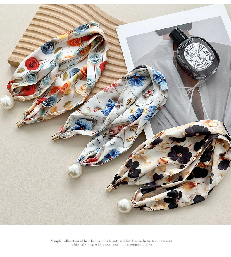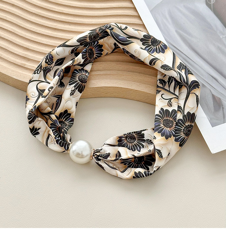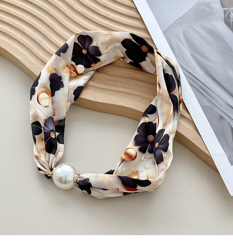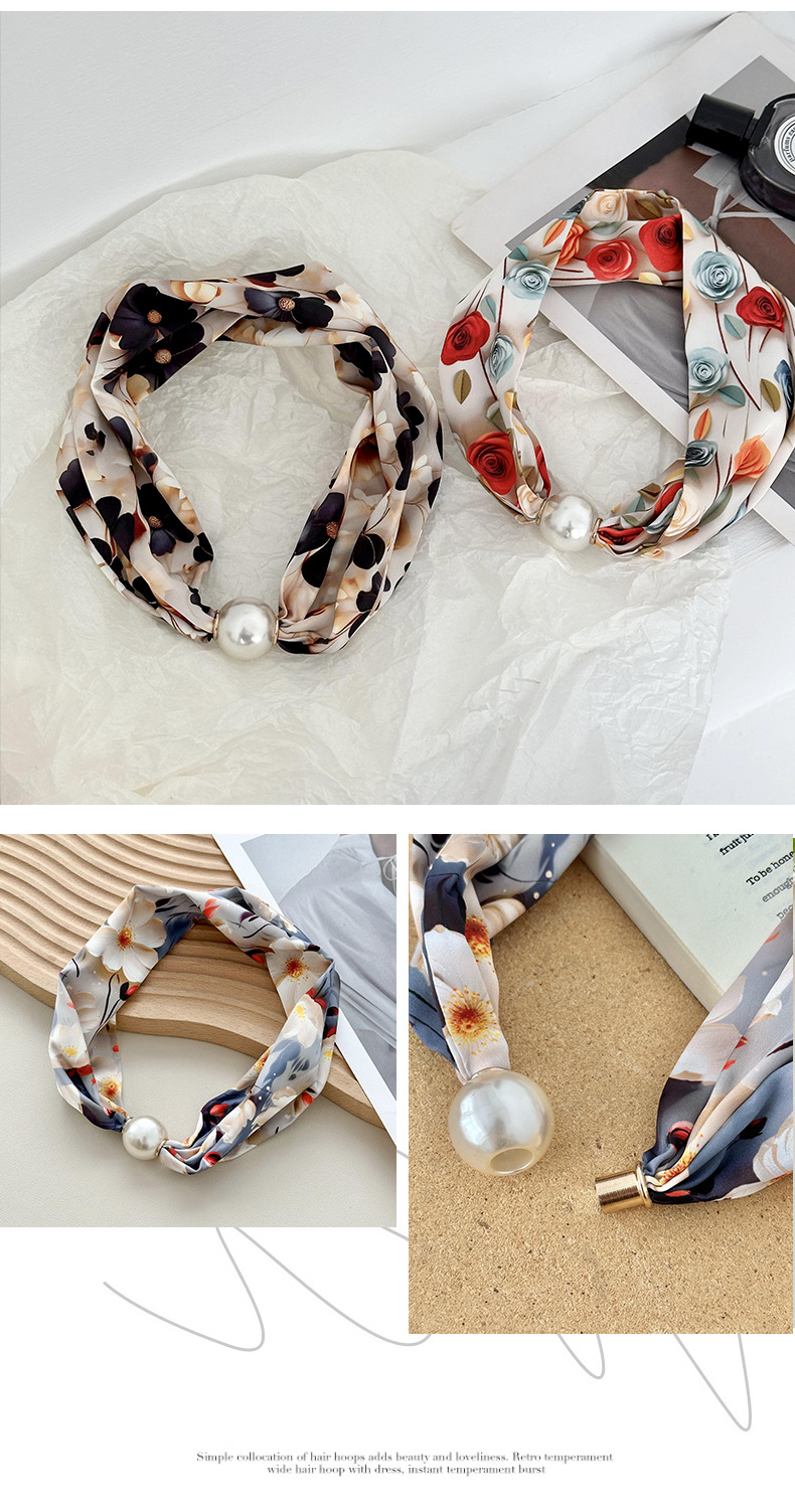 Bufandas de seda para mujeres 2025 nueva alta sensación de decoración bufandas de cuello collar de perlas cadena clavícula bufandas de seda de absorción al por mayor