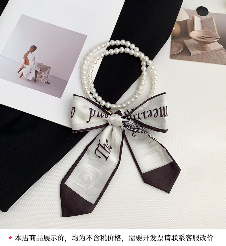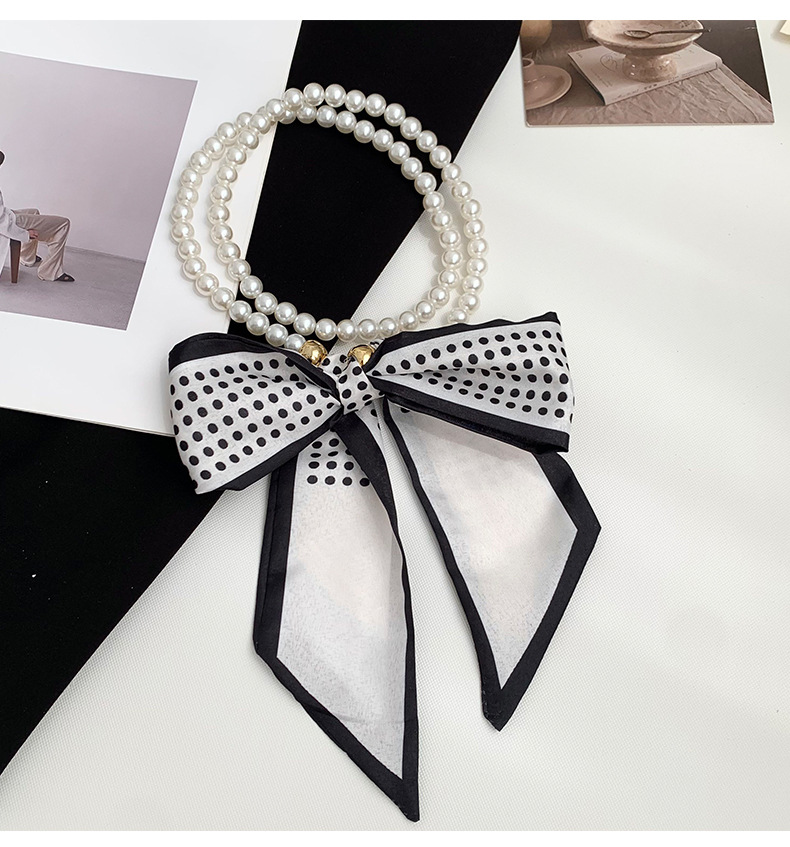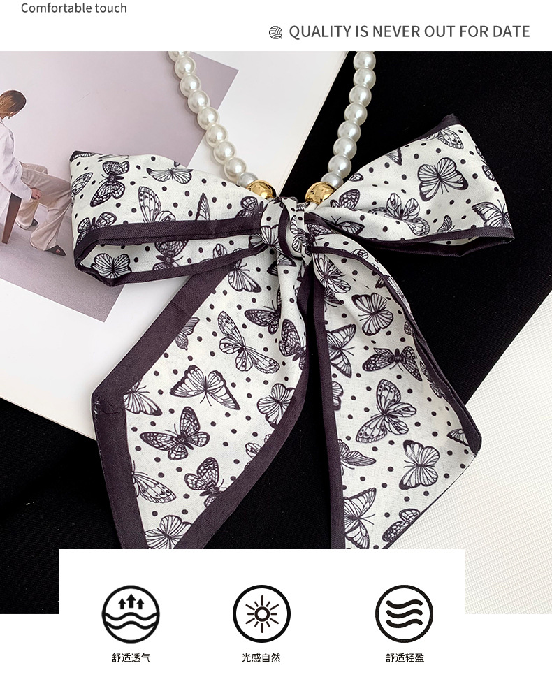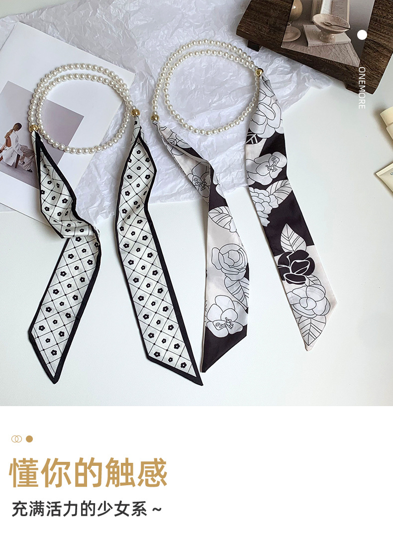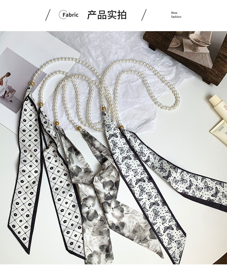 Pequeña bufandas para mujeres de verano 2025 collar de perlas retrógrado francés con bufandas de seda collar decoración clavícula variable correa