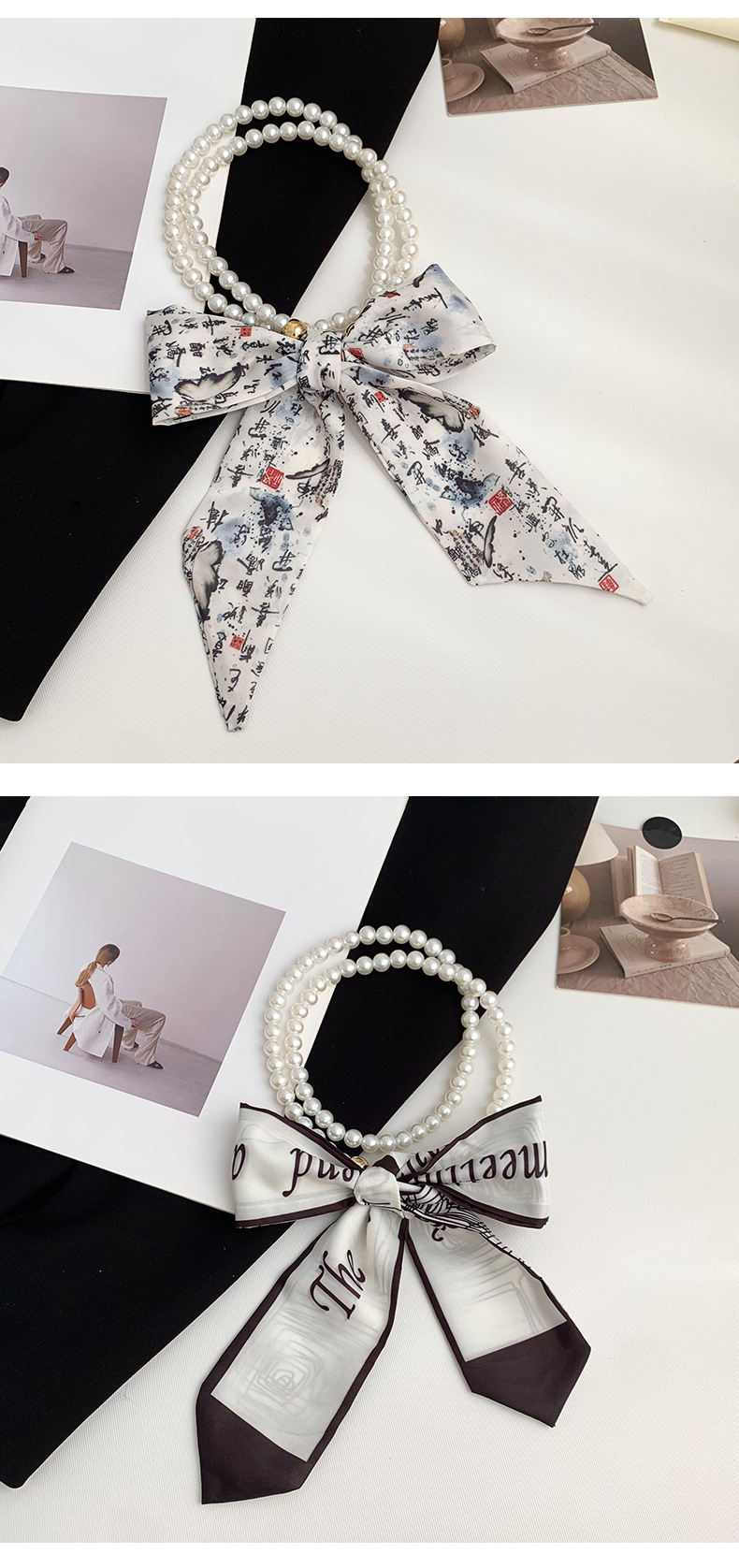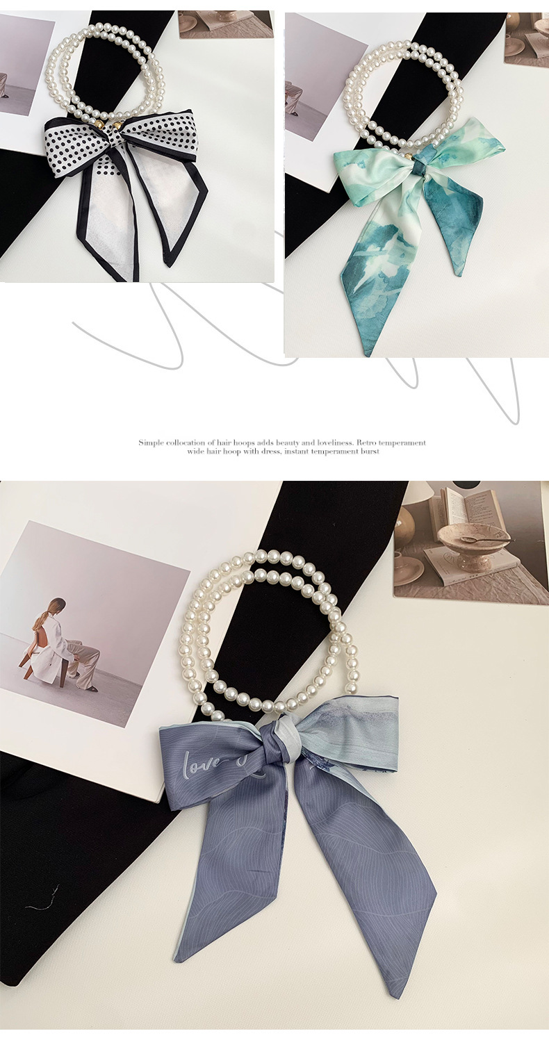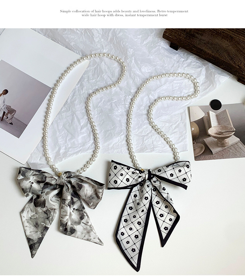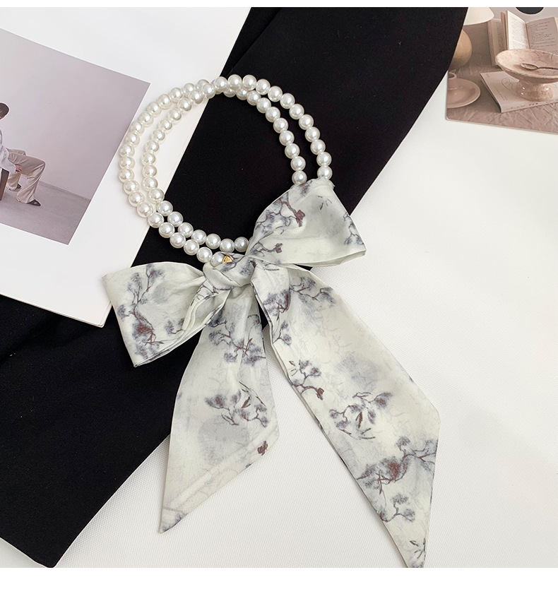 Pequeña bufandas para mujeres de verano 2025 collar de perlas retrógrado francés con bufandas de seda collar decoración clavícula variable correa