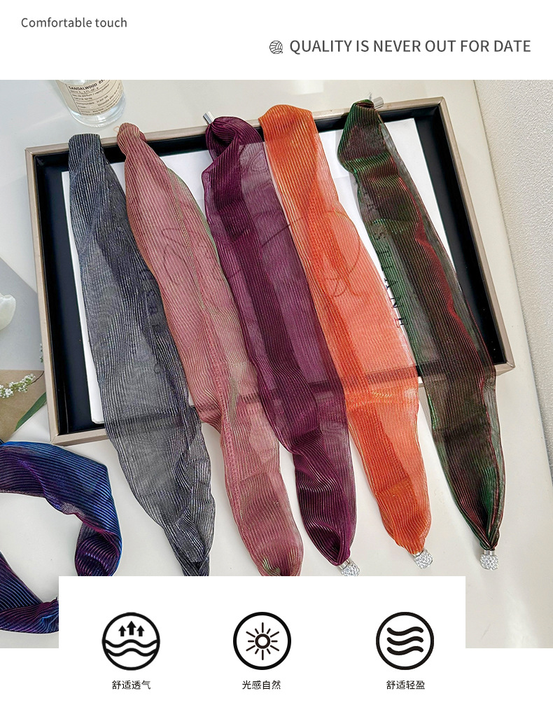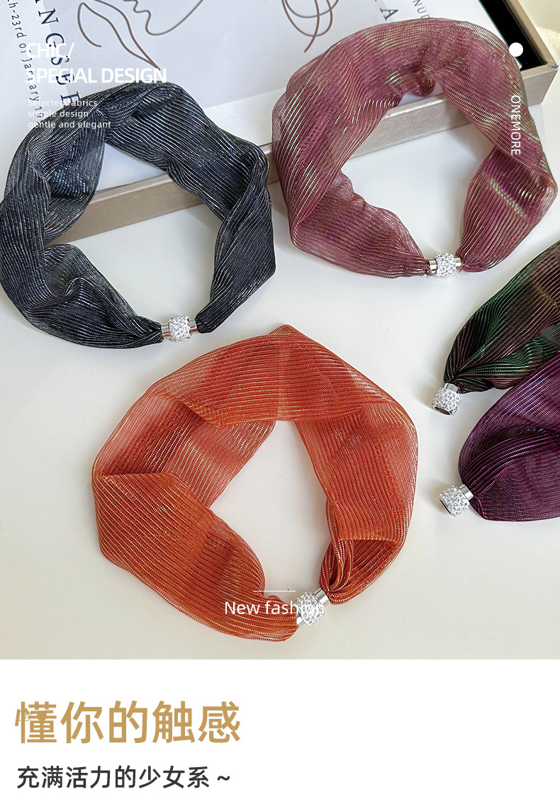 Moda de verano colorido bufandas de seda de absorción de cuello ocio de mujer ocio temperamento red bufandas cortas