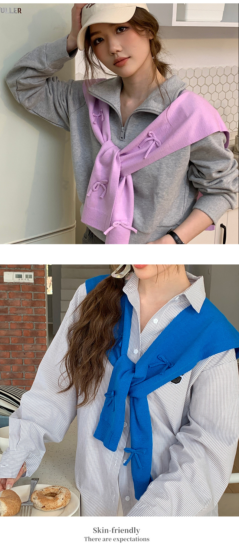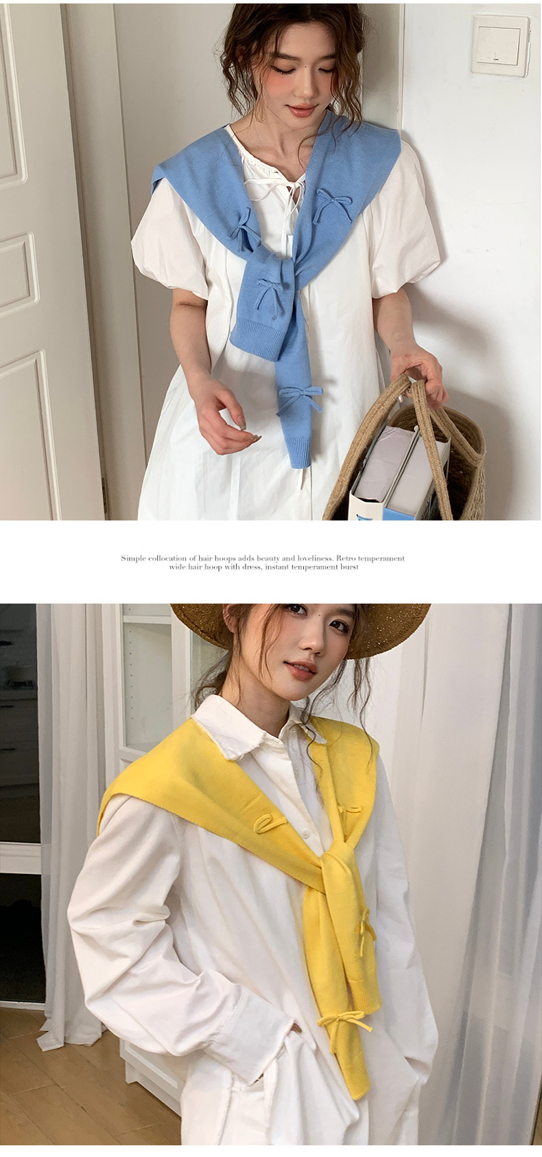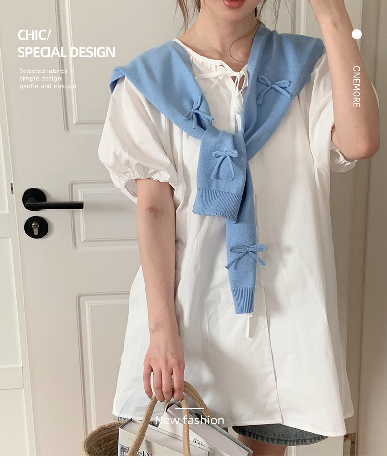 Sopa de punto para mujeres otoño y invierno nuevo arco tridimensional con falda camisa de nudos de cuello pequeño hombro de hombro