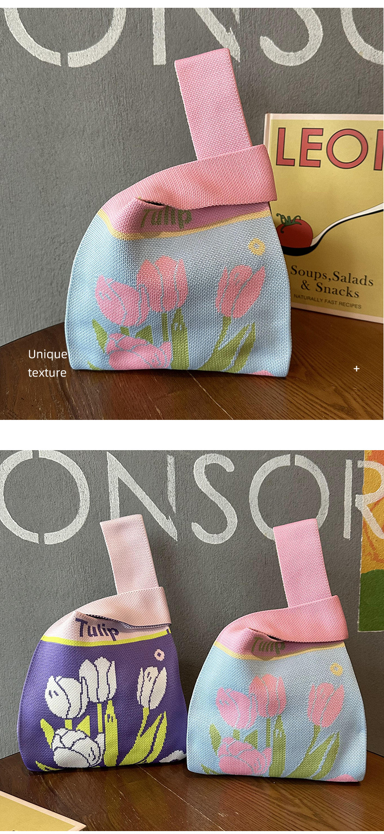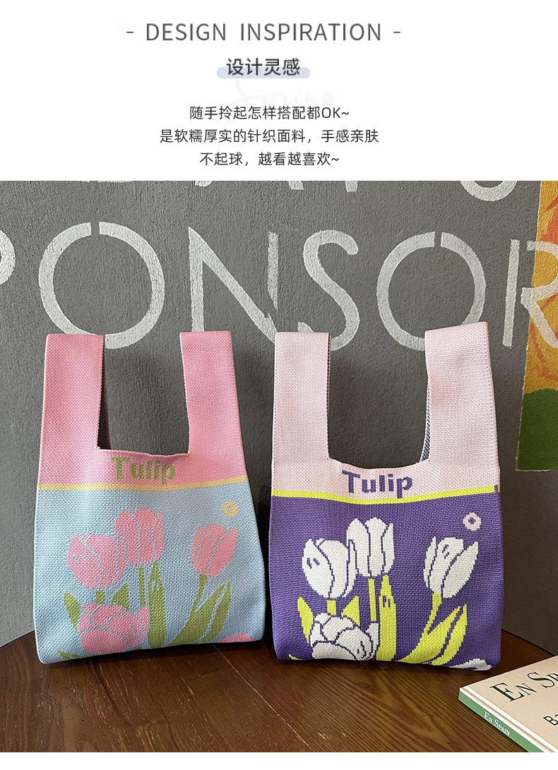 Bolsas de nicho de diseño flor Tulipan bolsas de tejido bolsas de tejido dopamina chaleco bolsas de mano