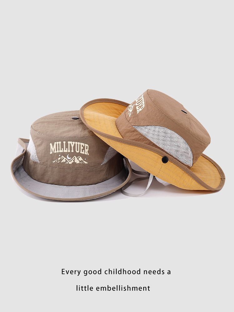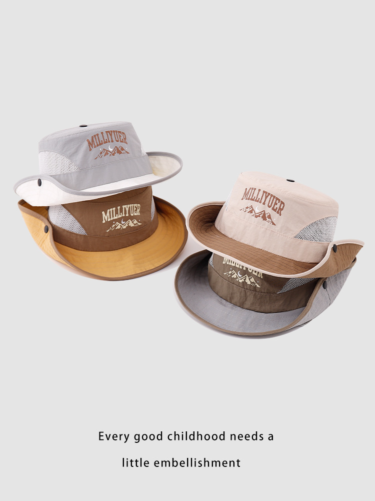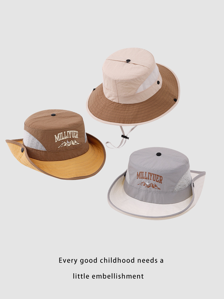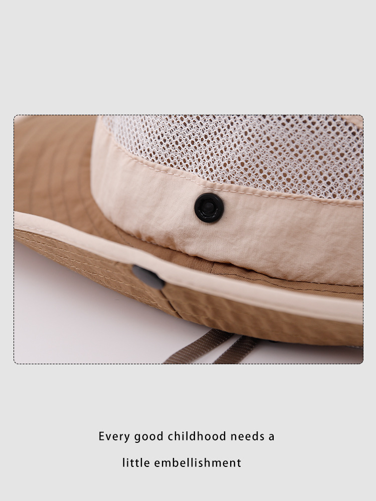 Sombrero de pescador para niños y niñas, sombrero de montaña de verano de alto albor, sombrero de montaña de protección solar, amplio, ventilado, cinturón de cabeza, sombrero solar