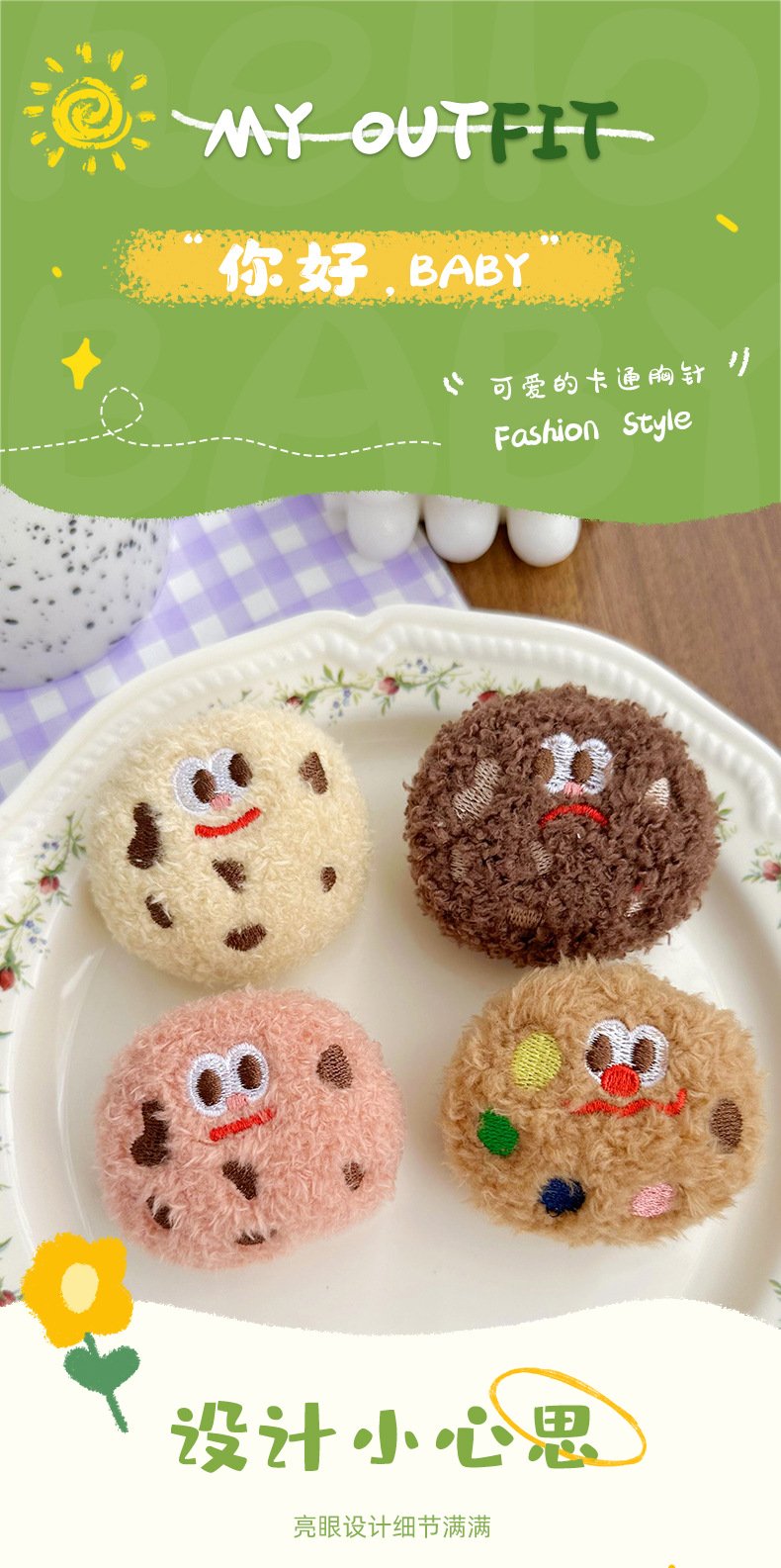 Broche de peluche lindo dibujo animado animal de moda galletas creativas nuevos accesorios de broche de peluche