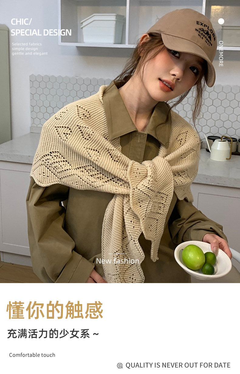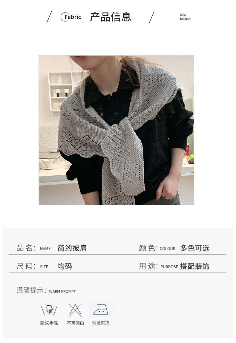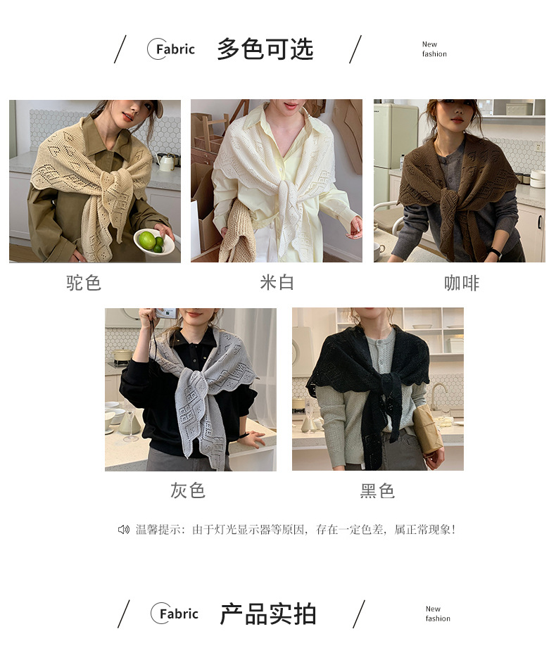 Bufanda de punto hueca para mujer, estilo coreano, capa fina, estilo occidental, bufanda triangular, chaleco, aire acondicionado, chal cálido