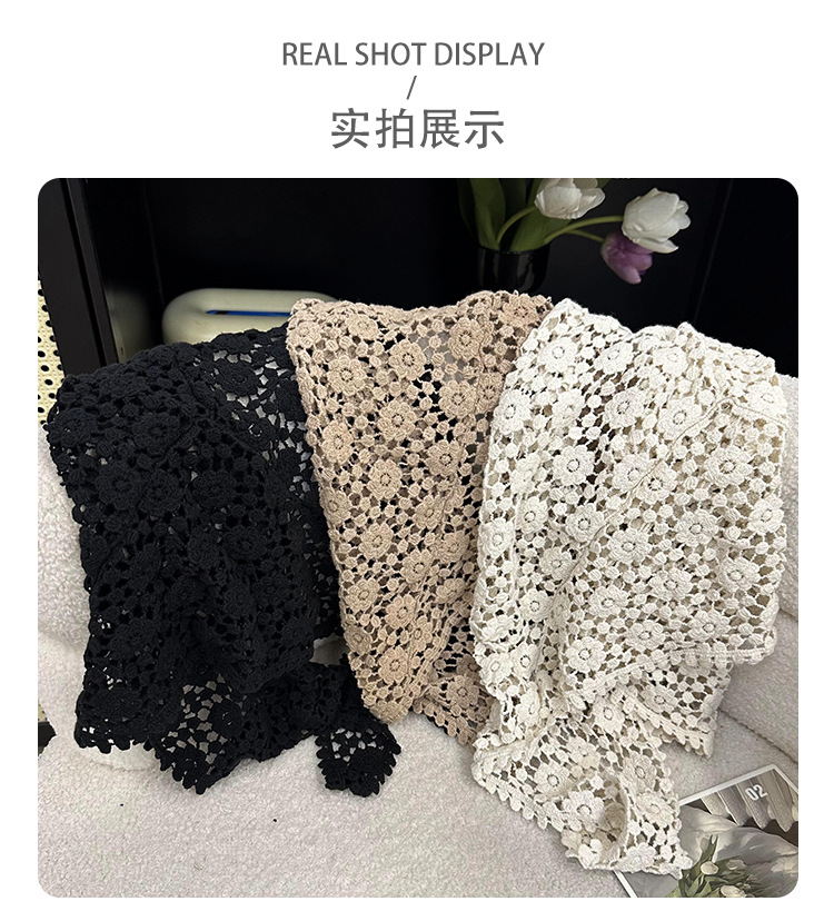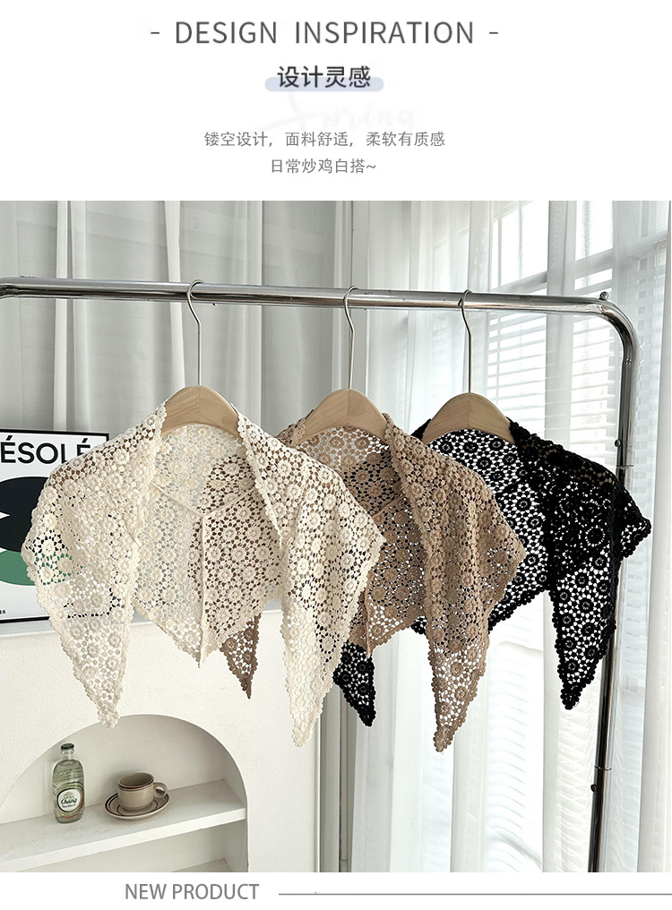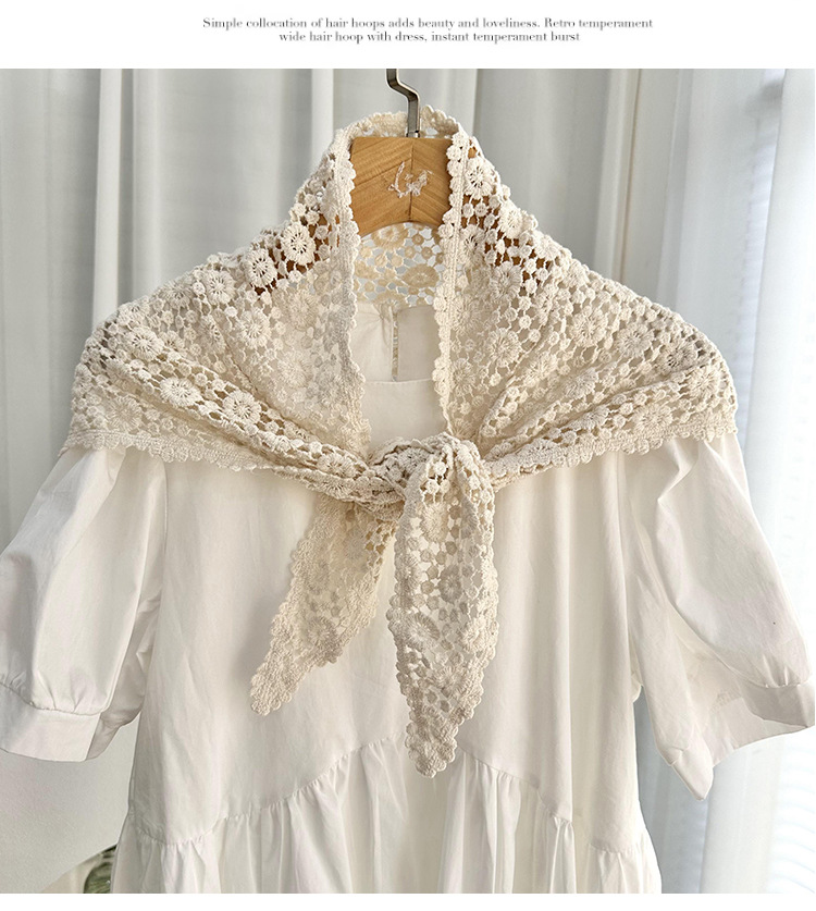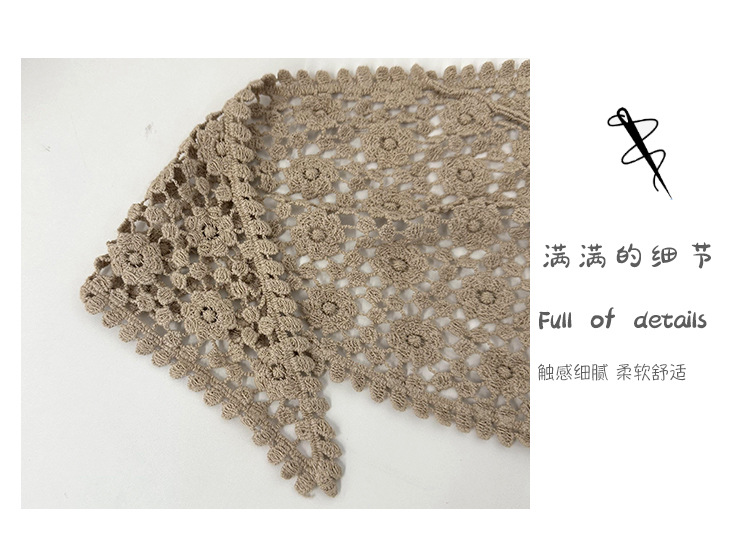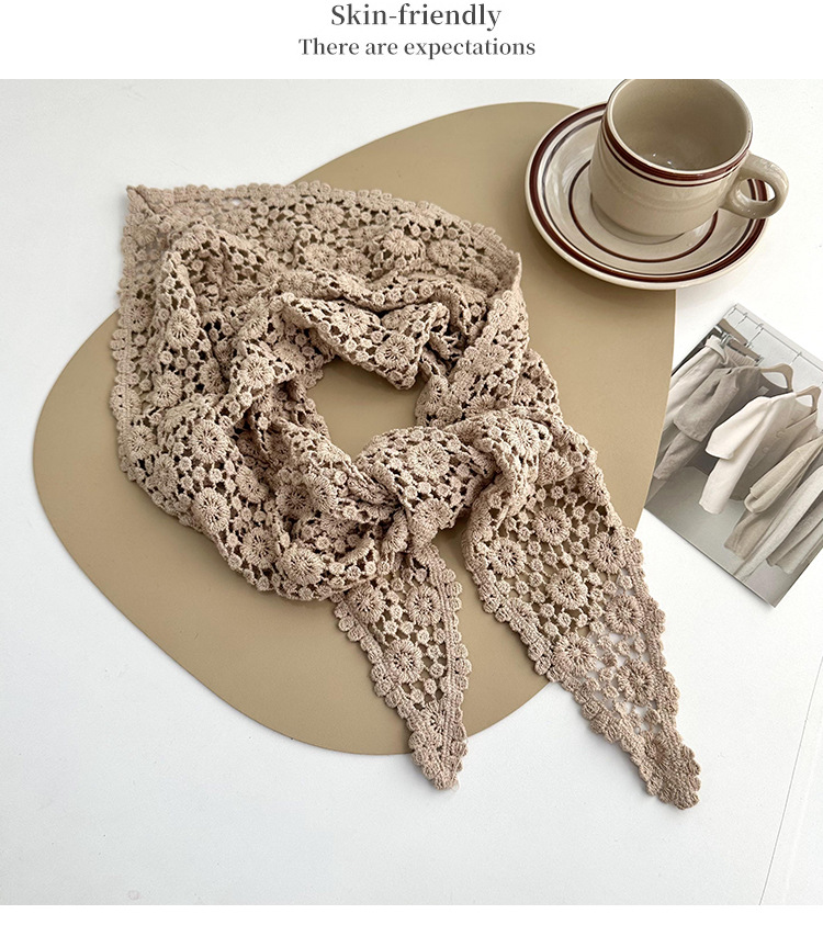 Pañuelo triangular de color sólido hueco de estilo coreano para mujer, turbante de ganchillo hecho a mano francés, bufanda decorativa de viaje para primavera y verano