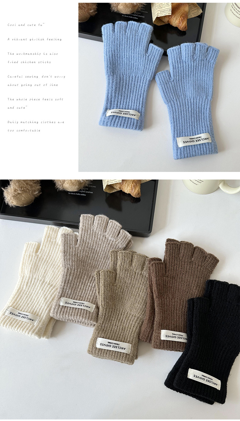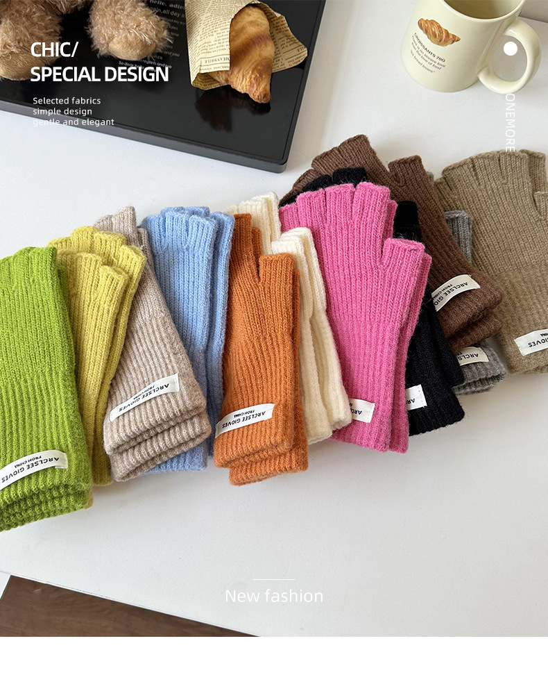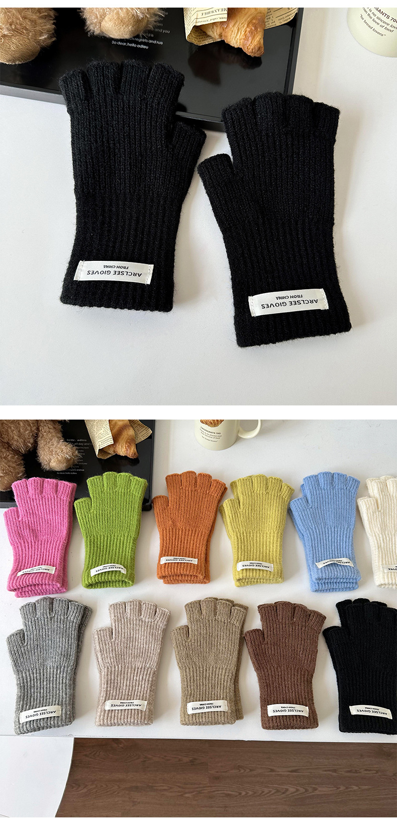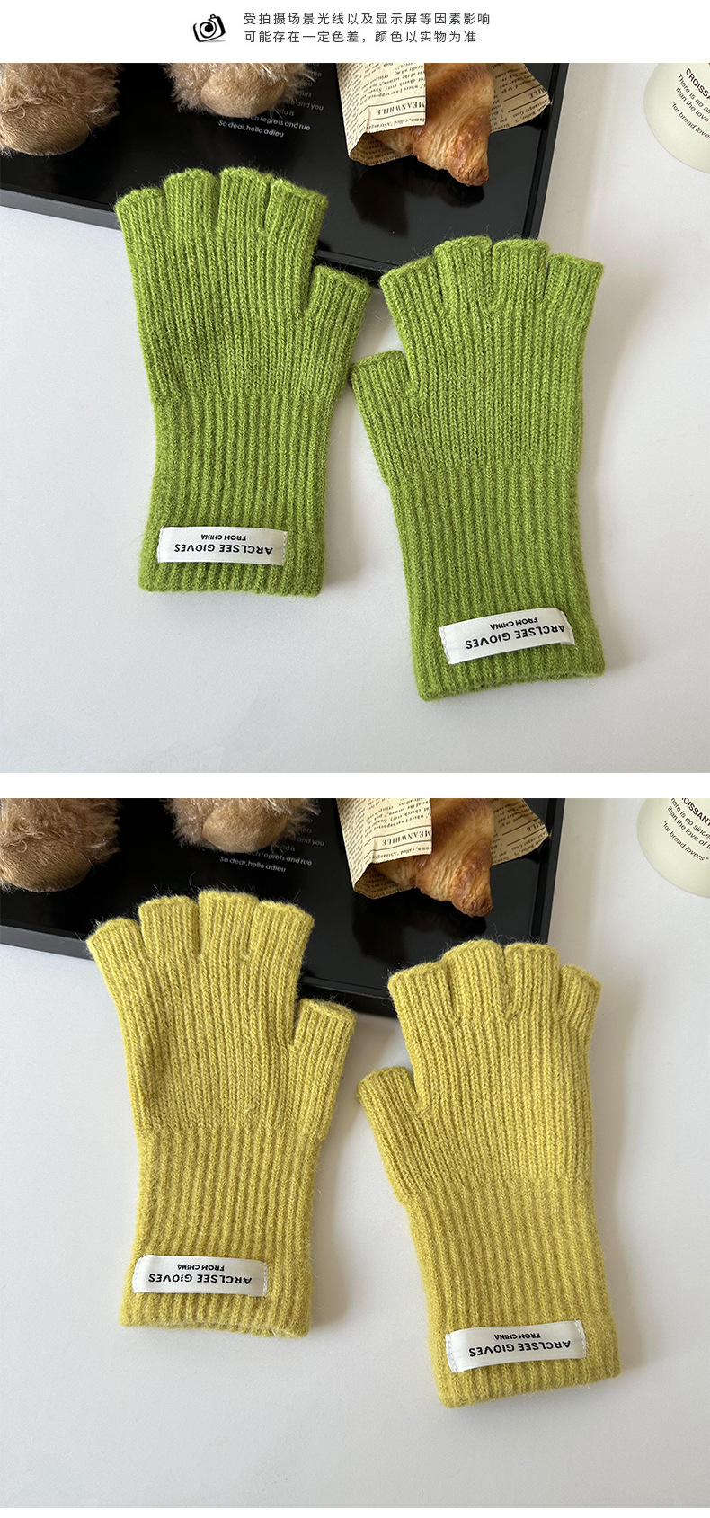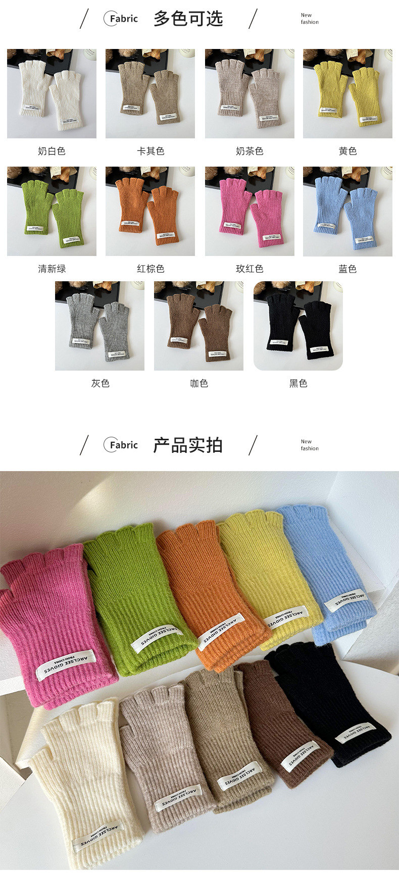 Lana de punto dedo abierto estilo coreano pantalla táctil de las mujeres color sólido Otoño e Invierno equitación al aire libre caliente a prueba de frío engrosado dedo guantes