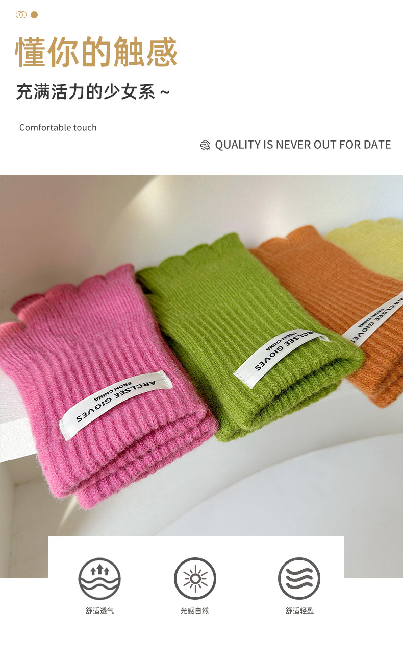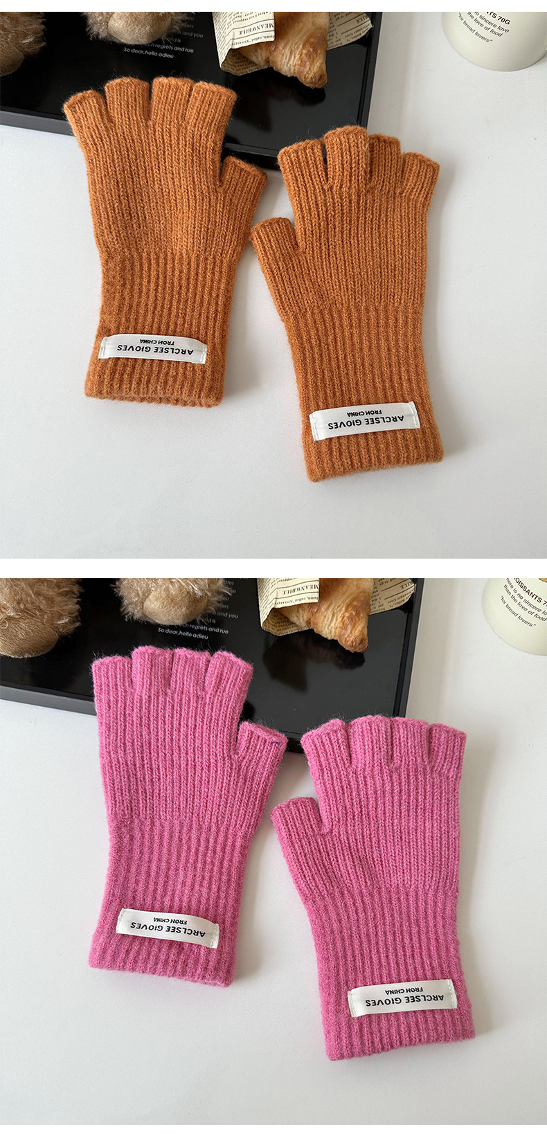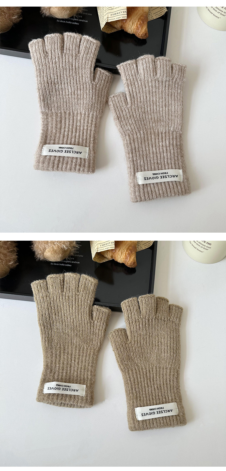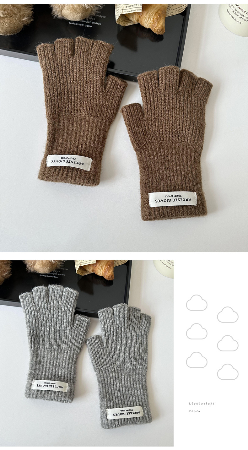 Lana de punto dedo abierto estilo coreano pantalla táctil de las mujeres color sólido Otoño e Invierno equitación al aire libre caliente a prueba de frío engrosado dedo guantes