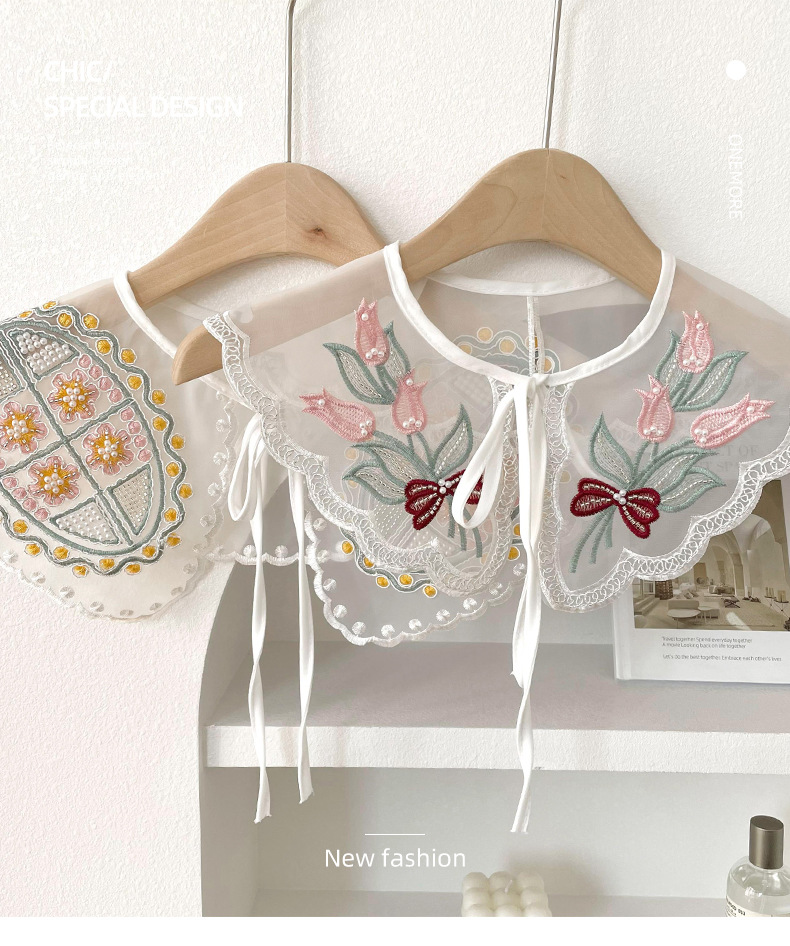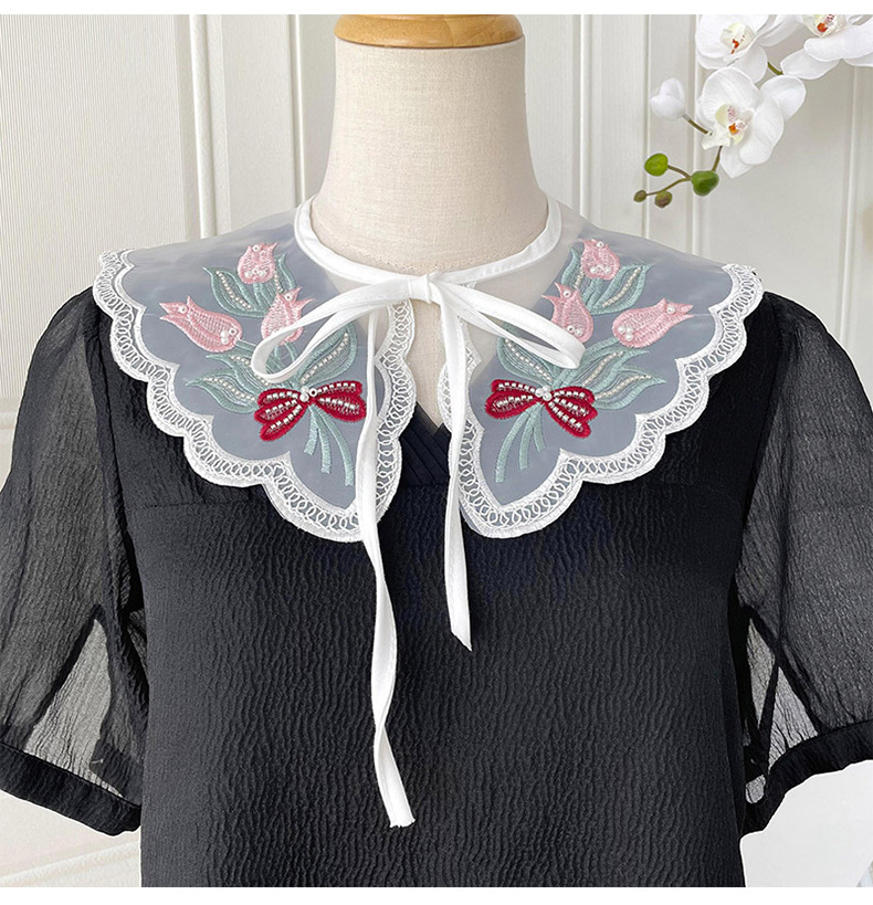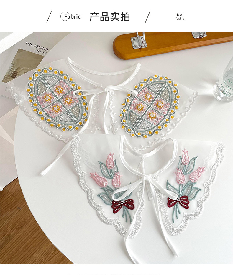 Organza con cordones pequeño chal collar falso estilo coreano de las mujeres decoración exterior con falda camisa cuello protección pequeña bufanda chaleco